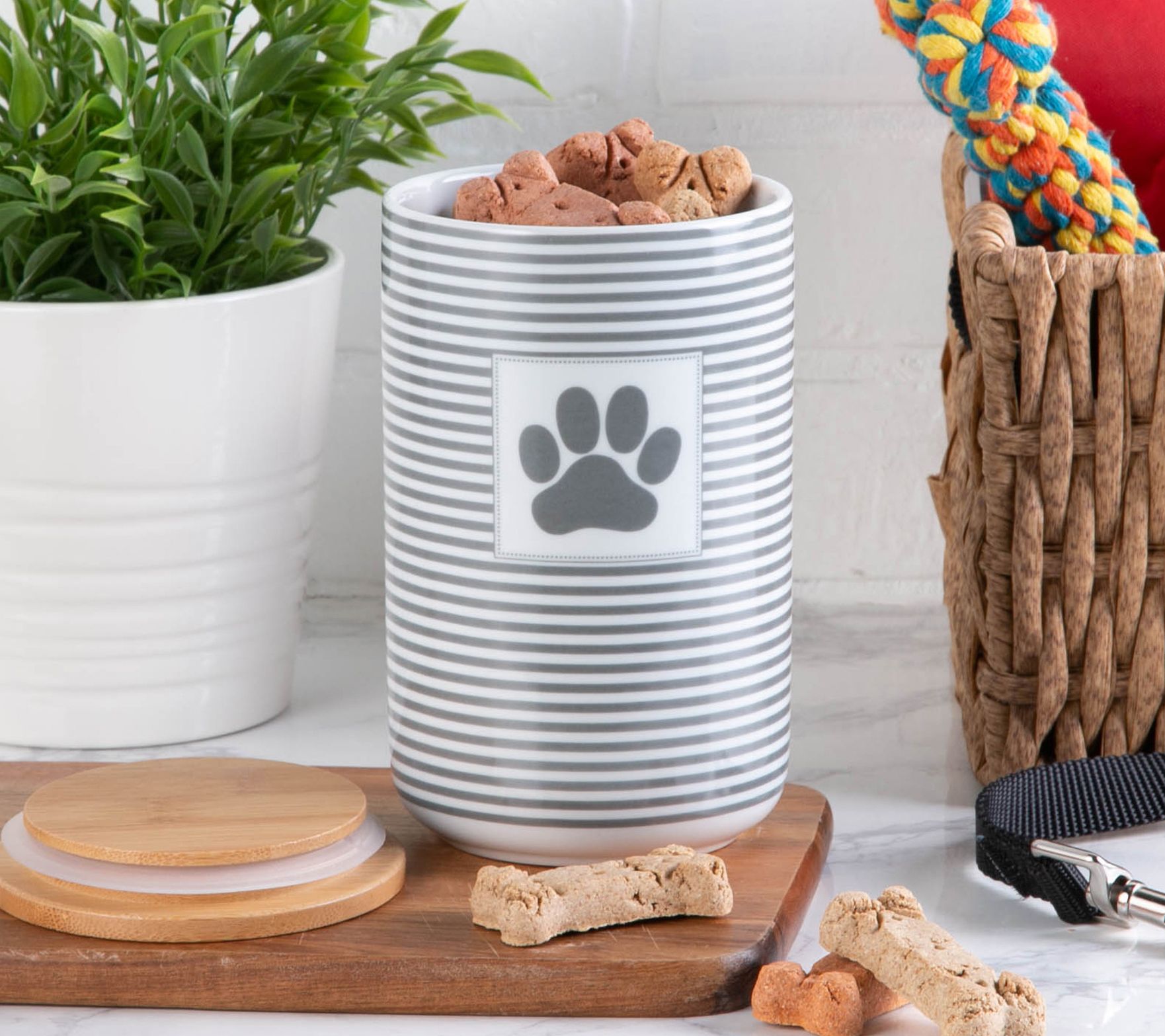 Design Imports Paw Patch and Stripes Treat Canister