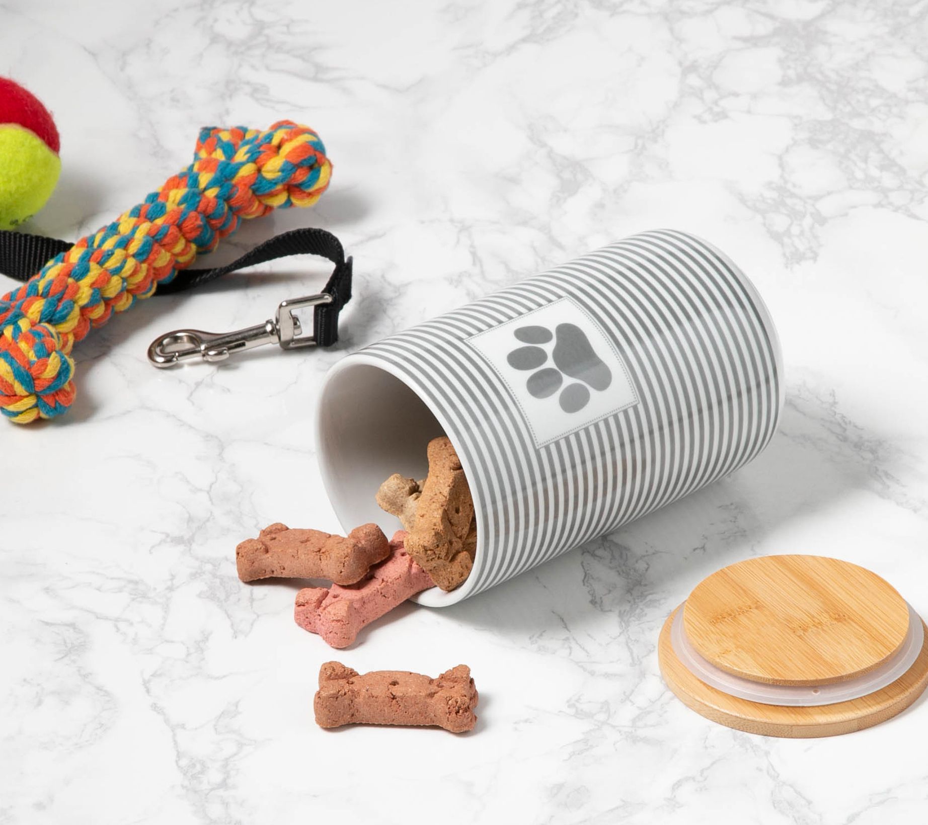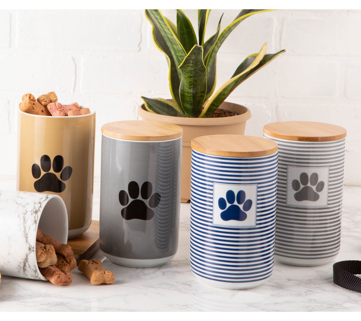 Paw-fectly marked for your pet, this cute canister keeps treats or food fresh and at the ready for your furry friend. From Design Imports.