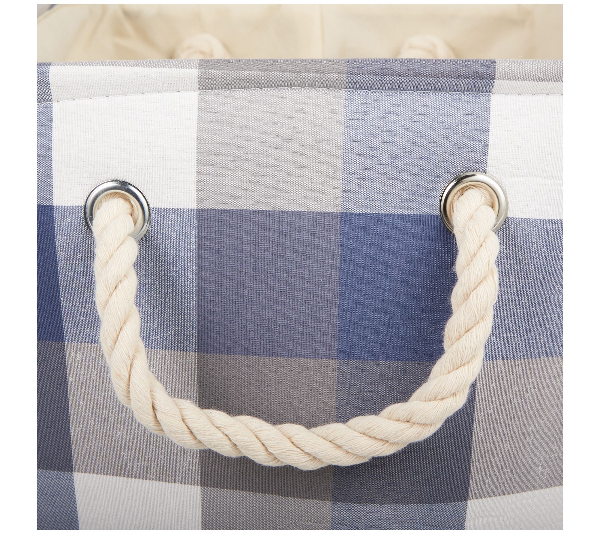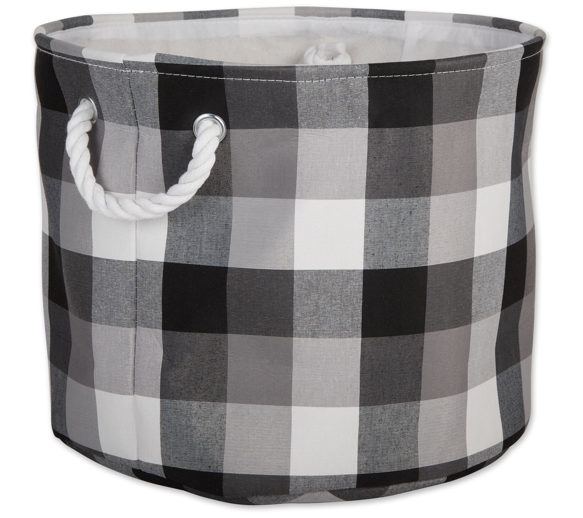 This large round bin features a farmhouse plaid design and holds everything from craft supplies to toys. From Design Imports.