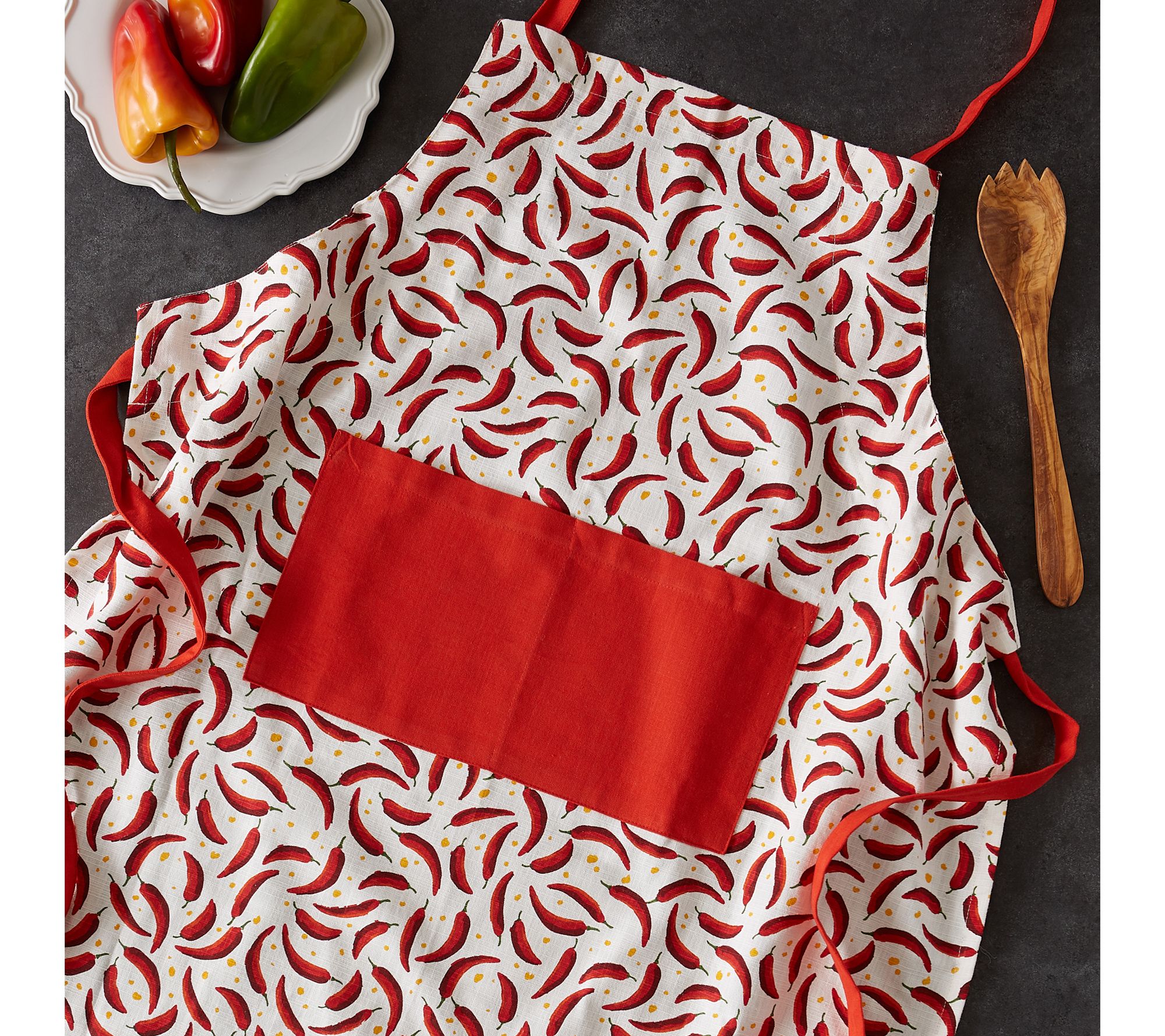Spice up your kitchen attire with the Design Imports Printed Chilis chef apron. This apron not only offers full coverage to protect your clothes from splatters but also features two handy pockets to keep your essentials within reach. From Design Imports.