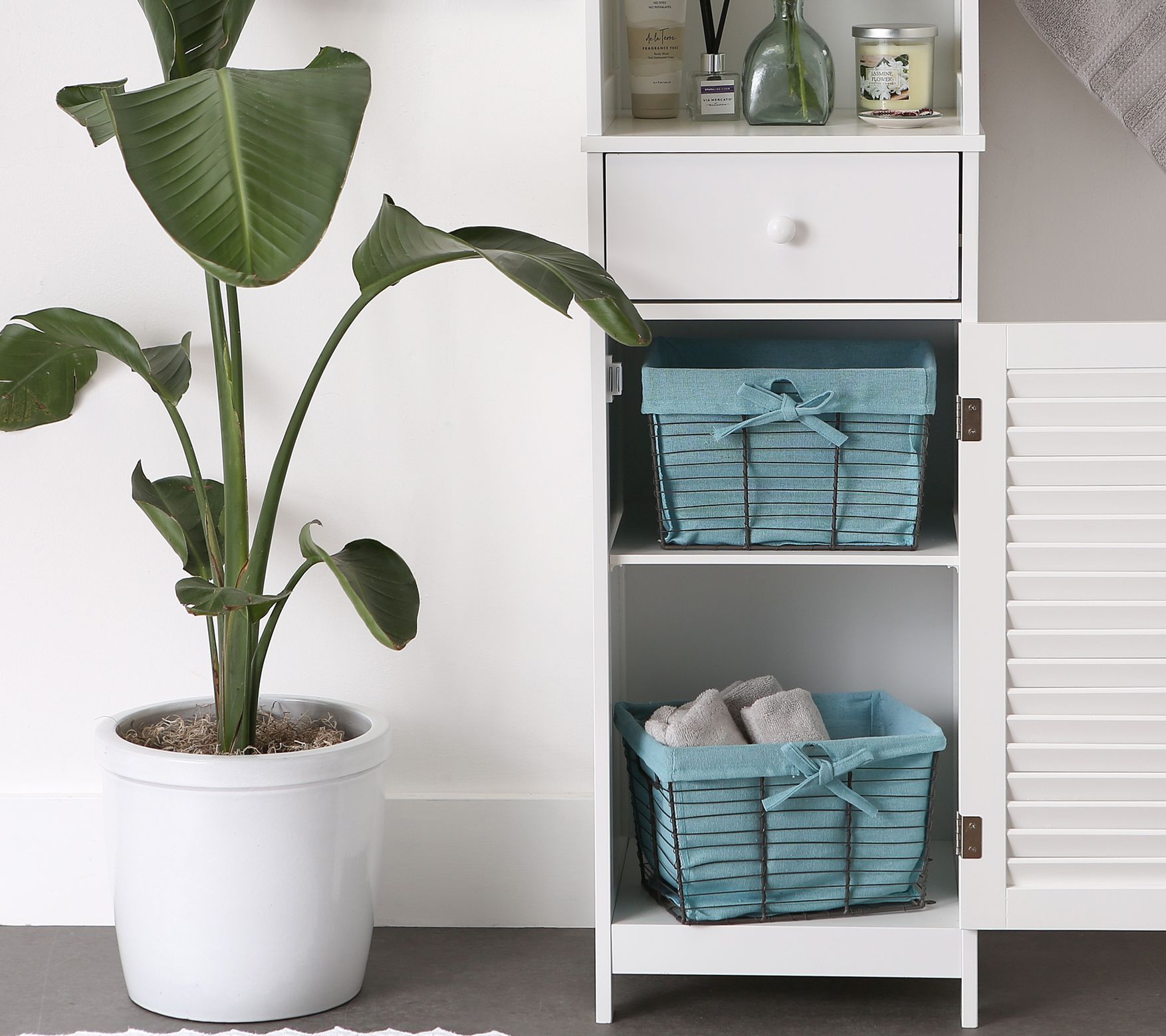 Ready to clear the clutter in any room? From utensils in the kitchen to accessories in the closet to hand towels in the bath, these vintage-style lined wire baskets are a stylish way to store your stuff. From Design Imports.