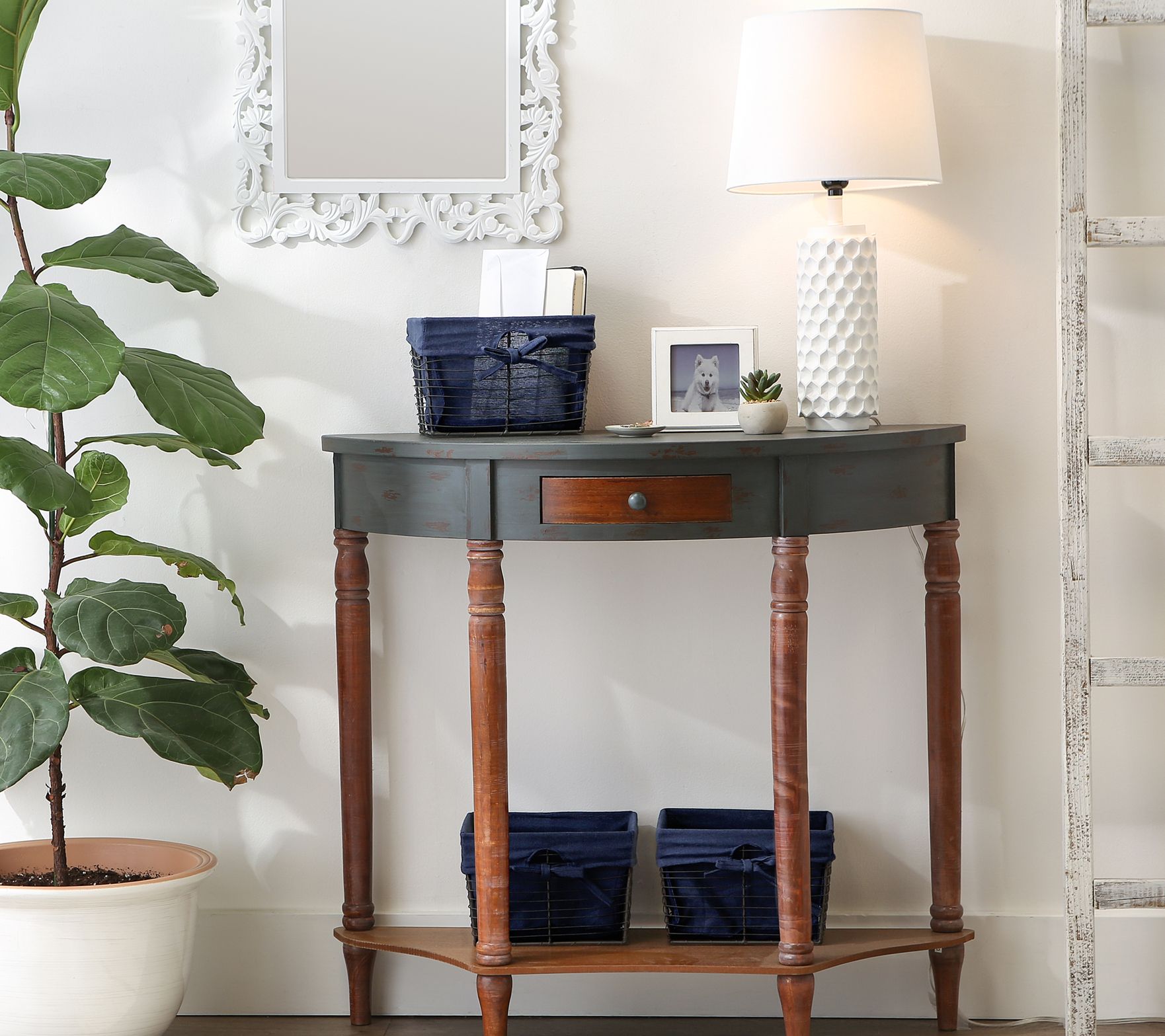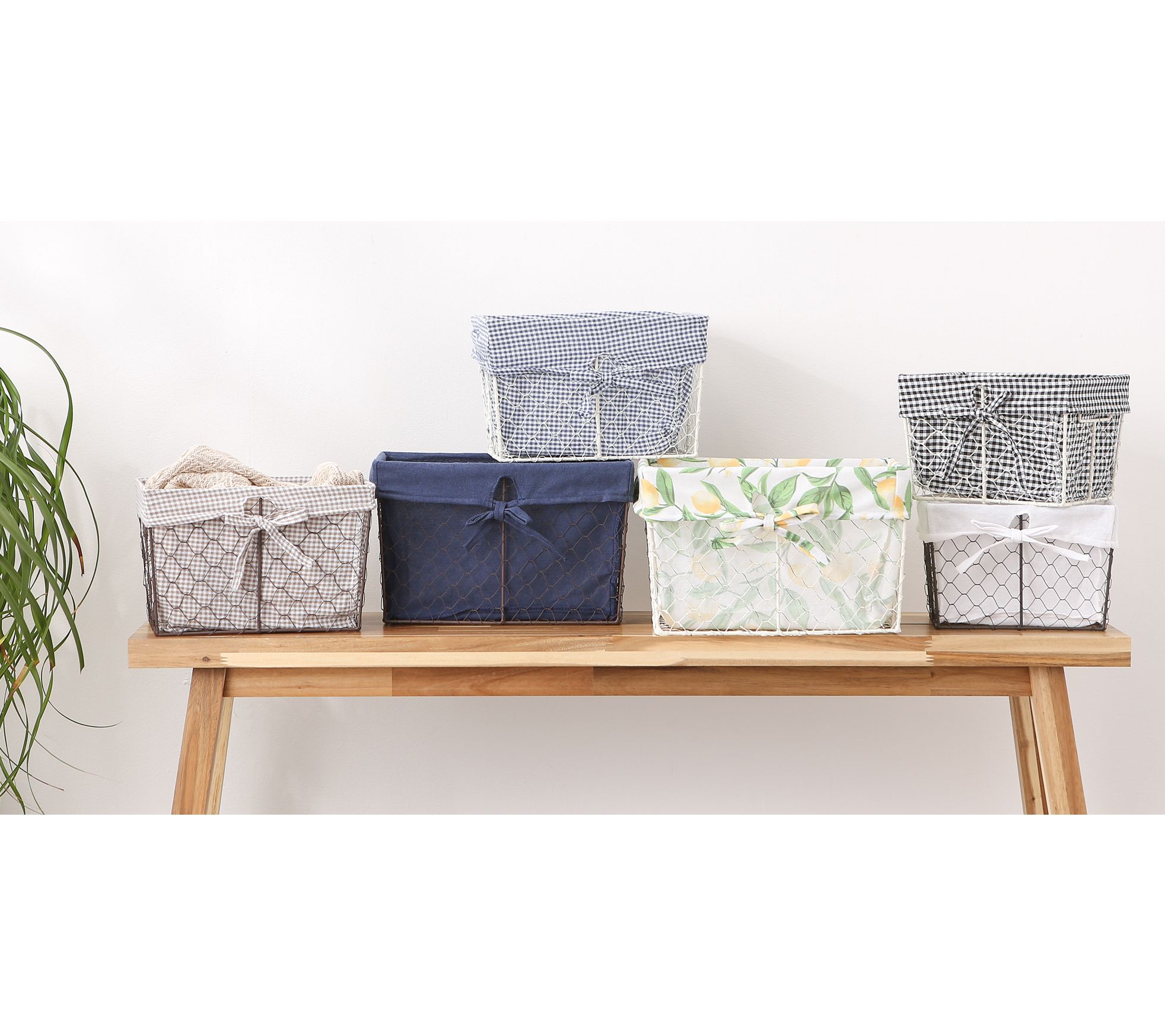 • Includes three wire baskets with removable fabric liners
