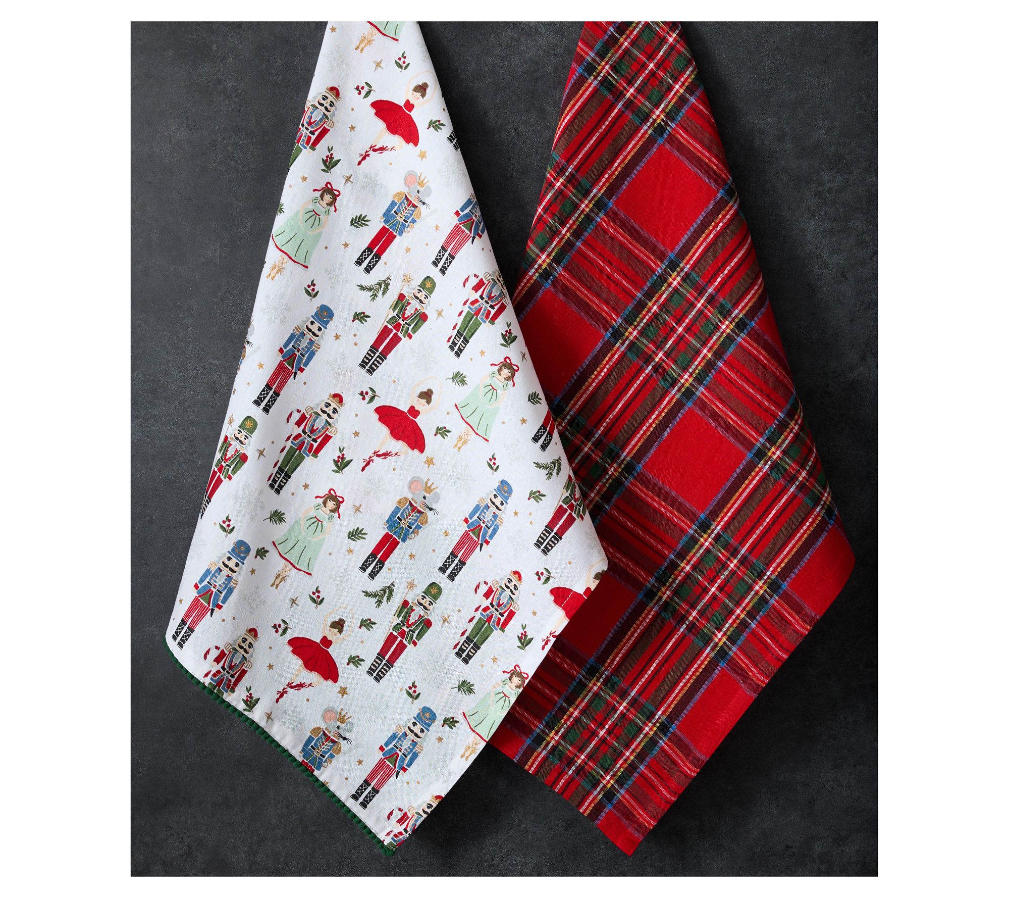 Getting ready for a holiday brunch or baking session feels even more festive with this cheerful set of cotton kitchen towels. One features a playful Christmas Dance motif, while the other sports classic seasonal plaid -- so there's always a bright accent nearby for drying dishes or wiping up spills. Hang them on your oven handle for a dash of holiday spirit any day. From Design Imports.