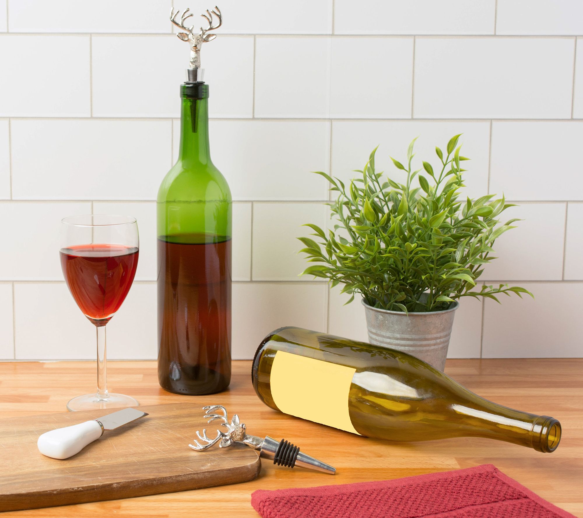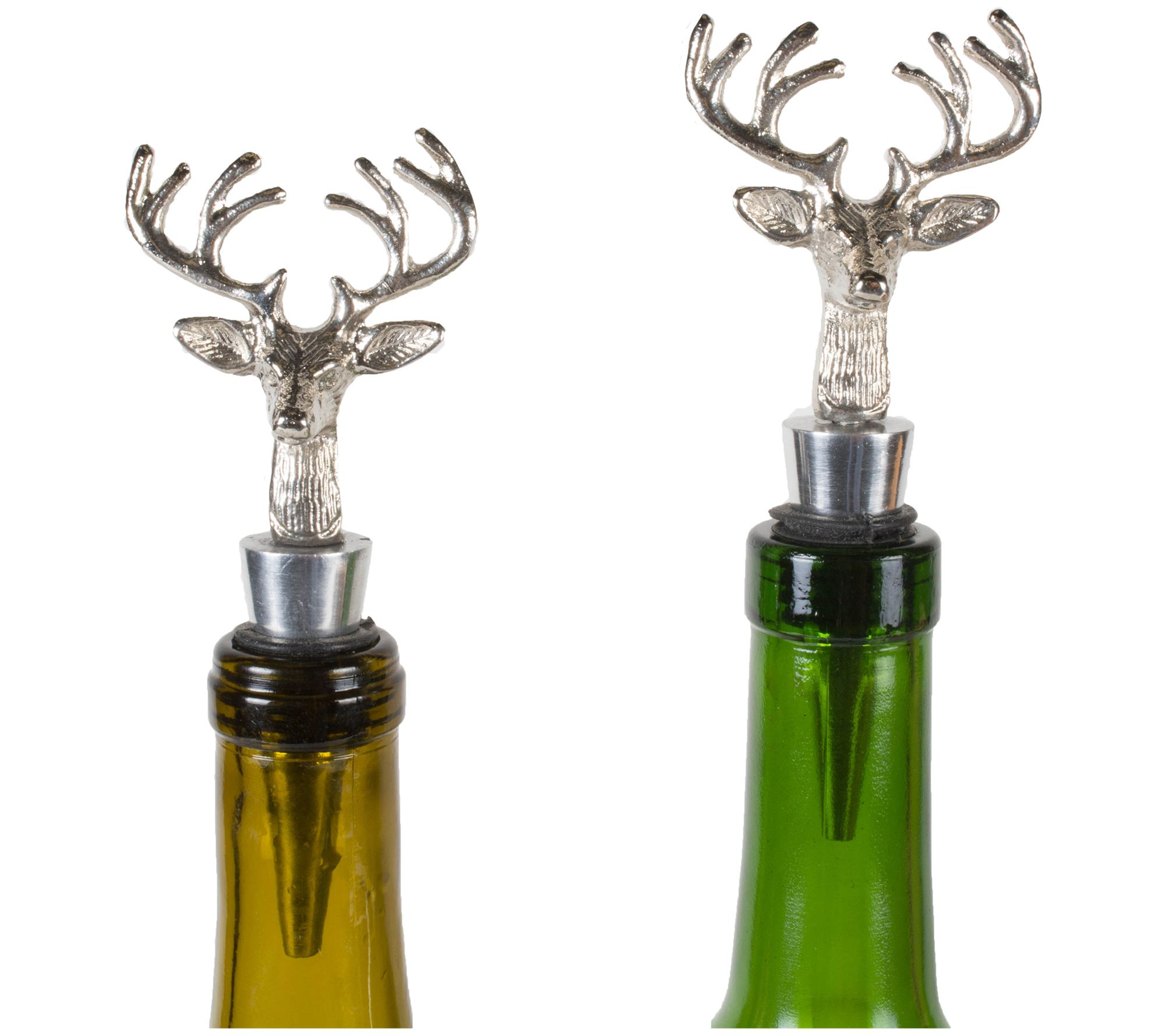 Keep your wine and champagne fresh with these silver stag beverage stoppers that provide an air tight seal and a chic design. From Design Imports.