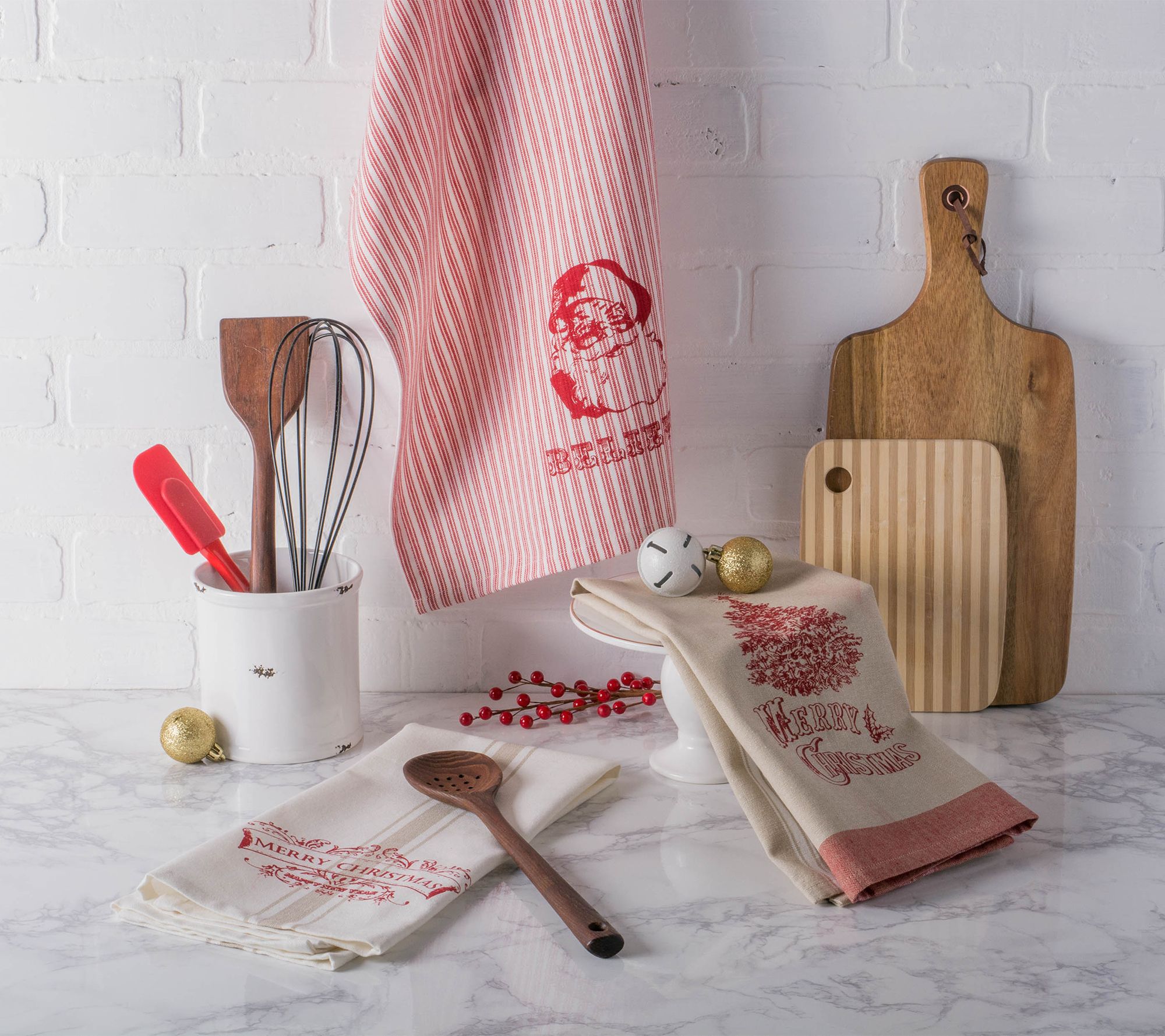 Design Imports Set of 3 Vintage Christmas Kitchen Towels