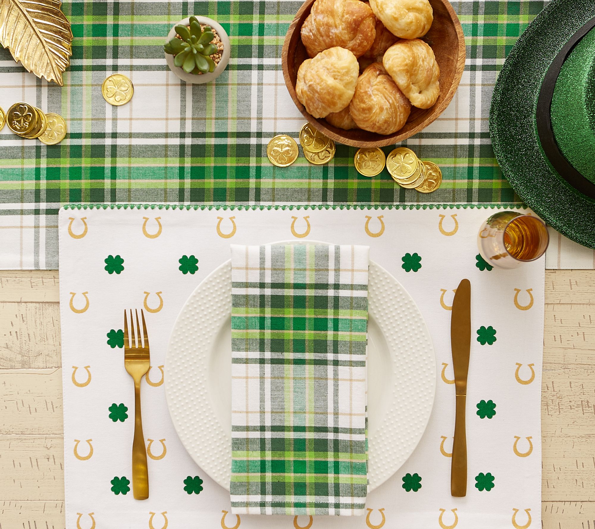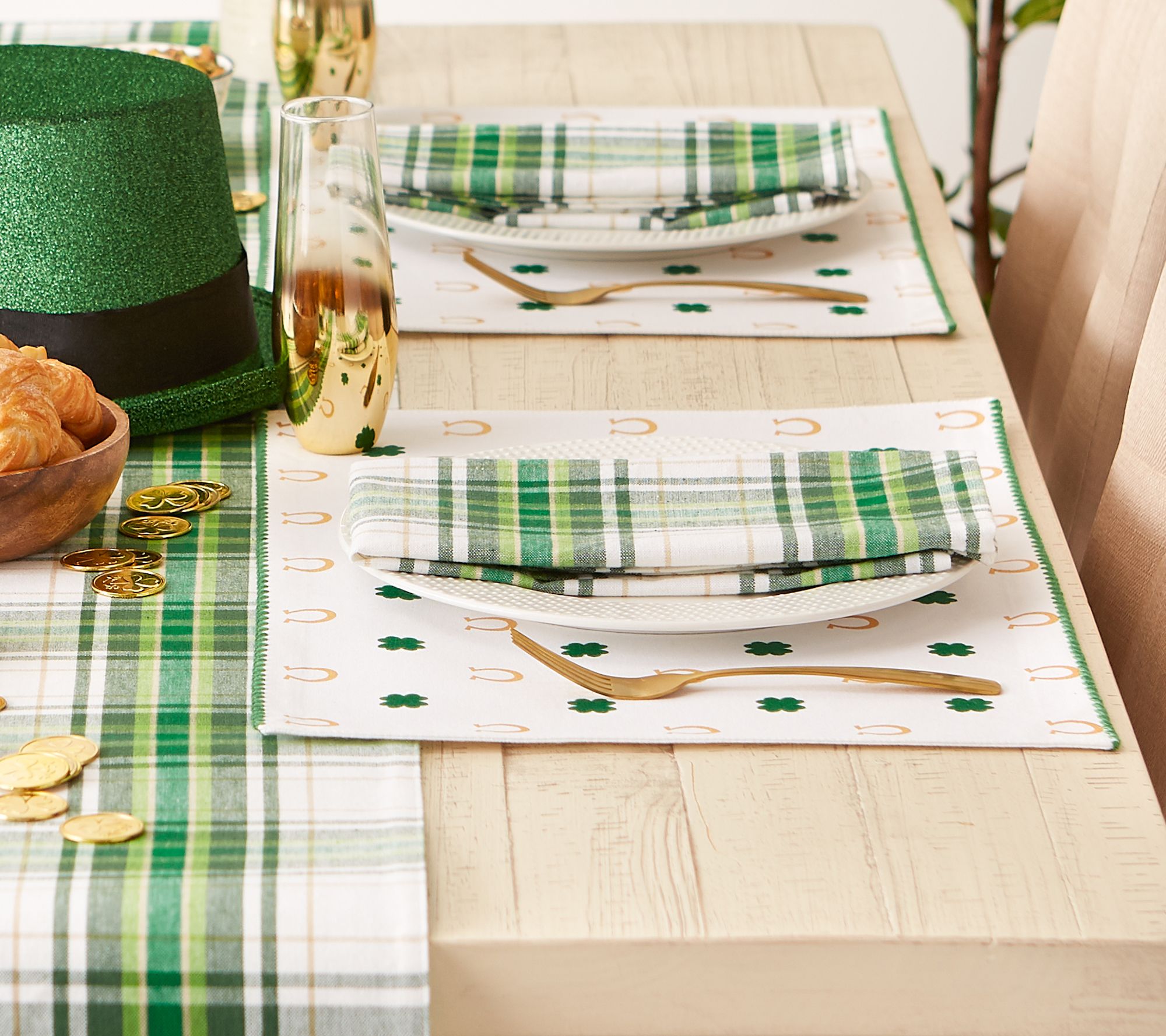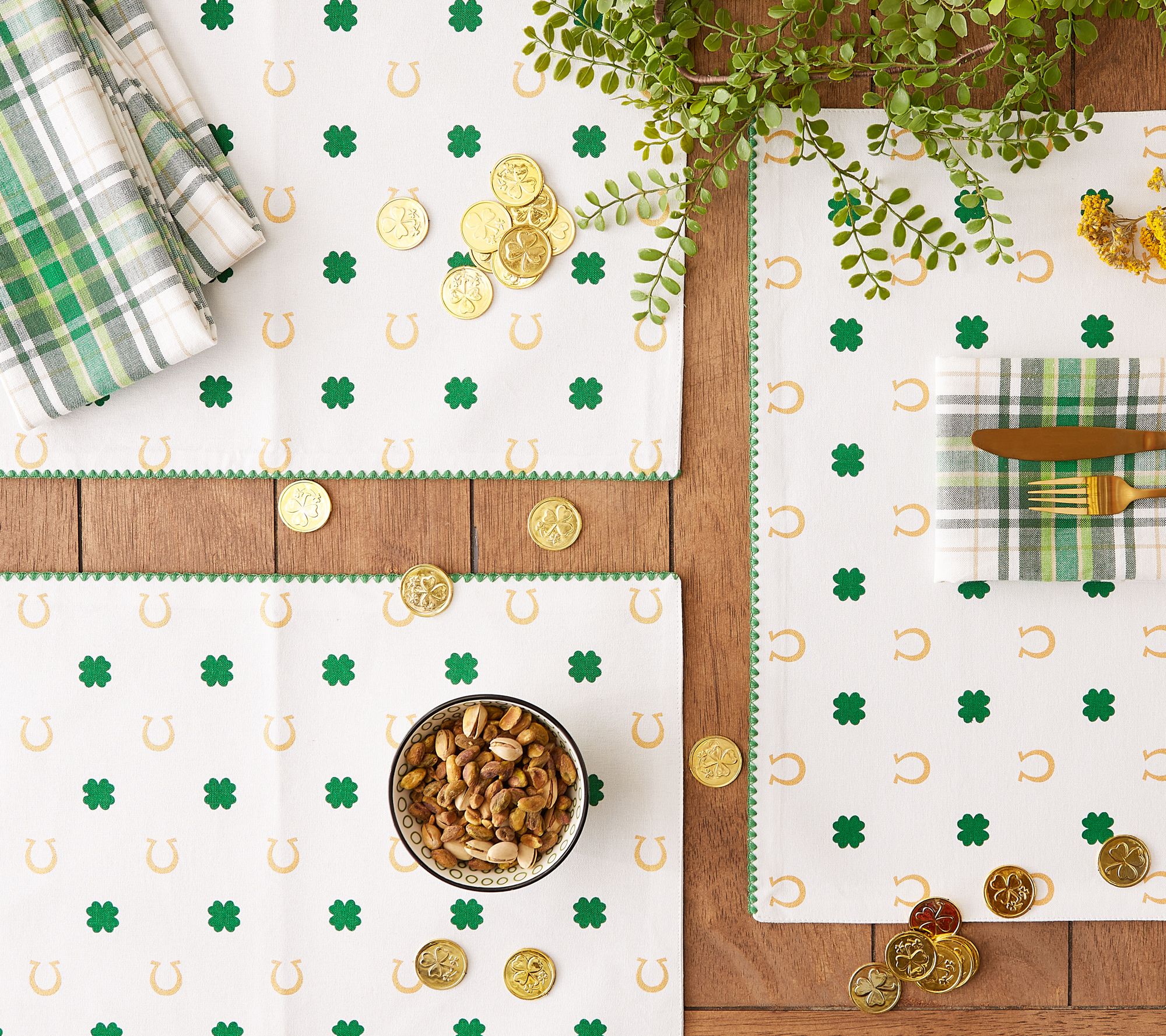 Love to celebrate St. Patrick's Day? Dress your table with these shamrock and horseshoe placemats and invite a bit of Irish luck into your home. From Design Imports.