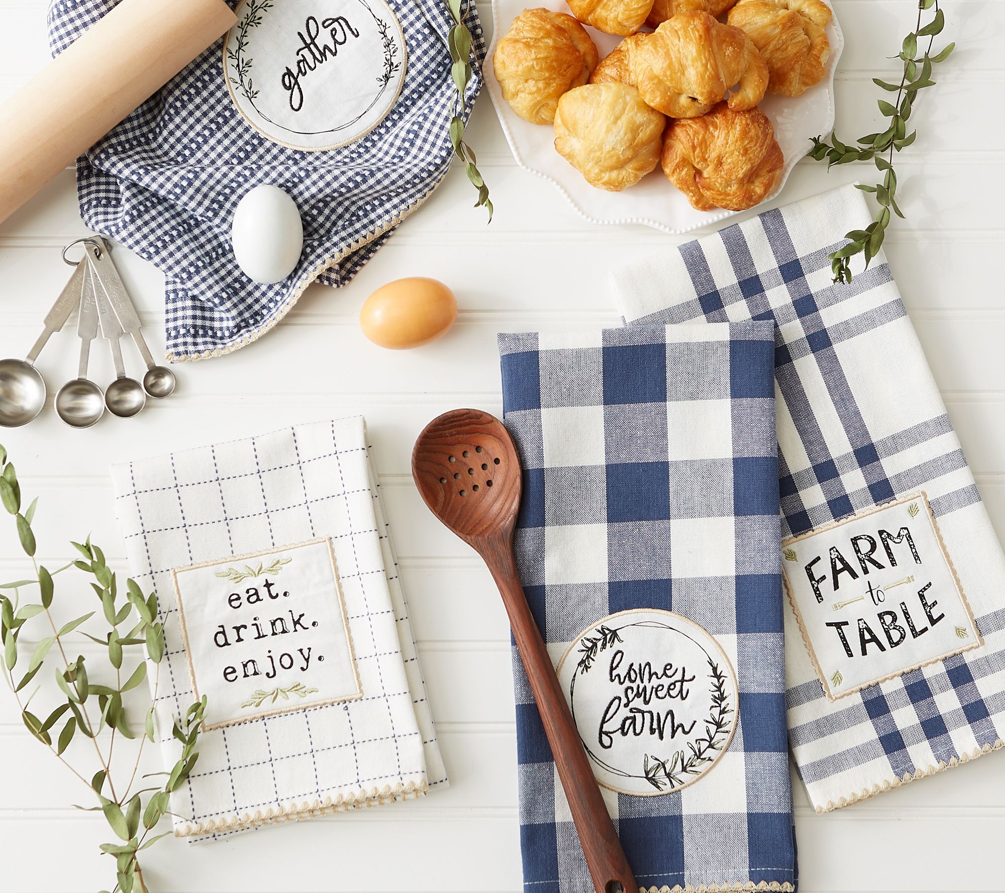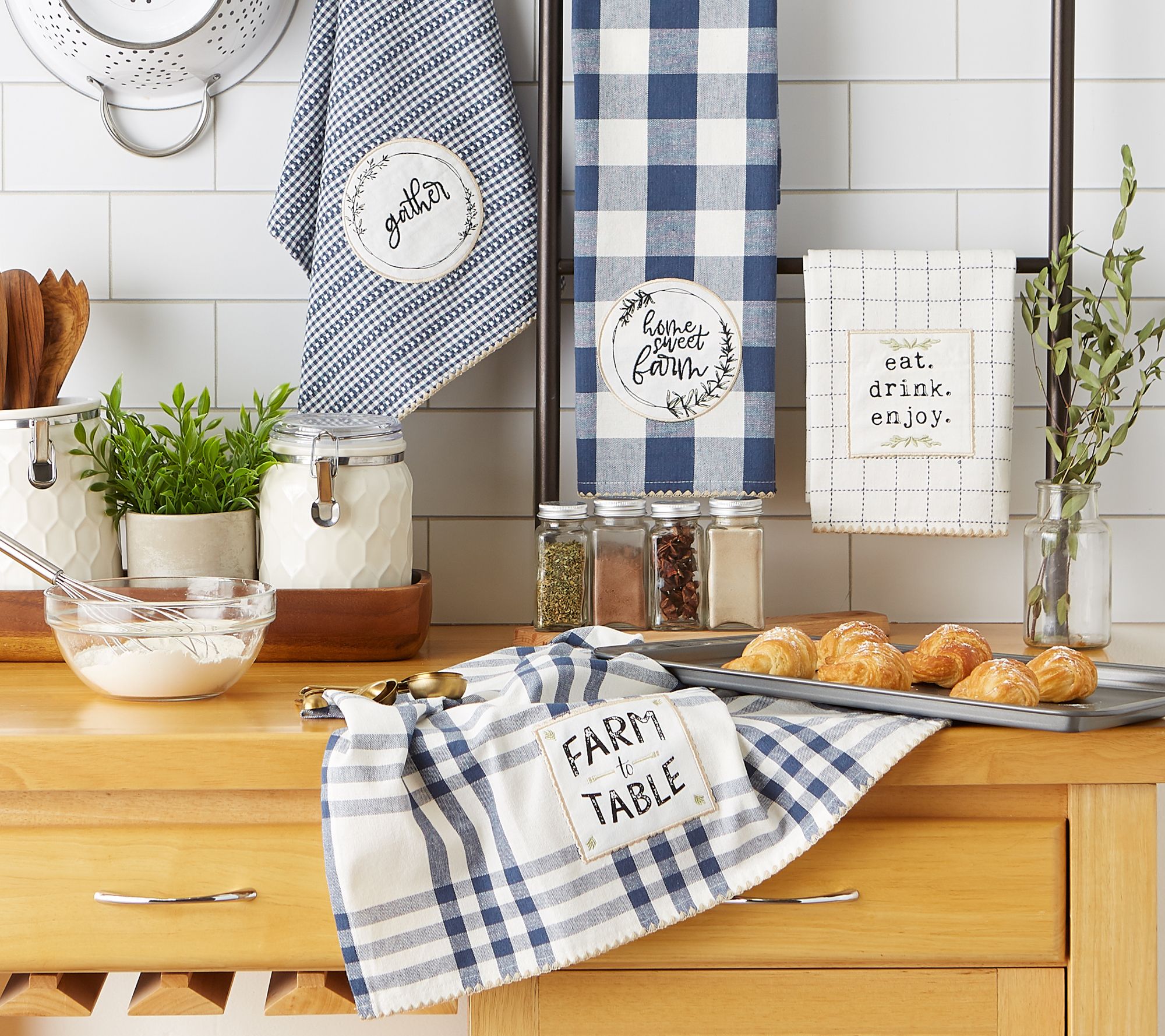 These kitchen towels exude farmhouse-chic while being ultra-absorbent and handy for mopping up messes in the kitchen or anywhere else a spill may occur. These fast-drying towels produce minimal lint and are great for drying dishes and glasses, as well as for general kitchen duty. From Design Imports.
