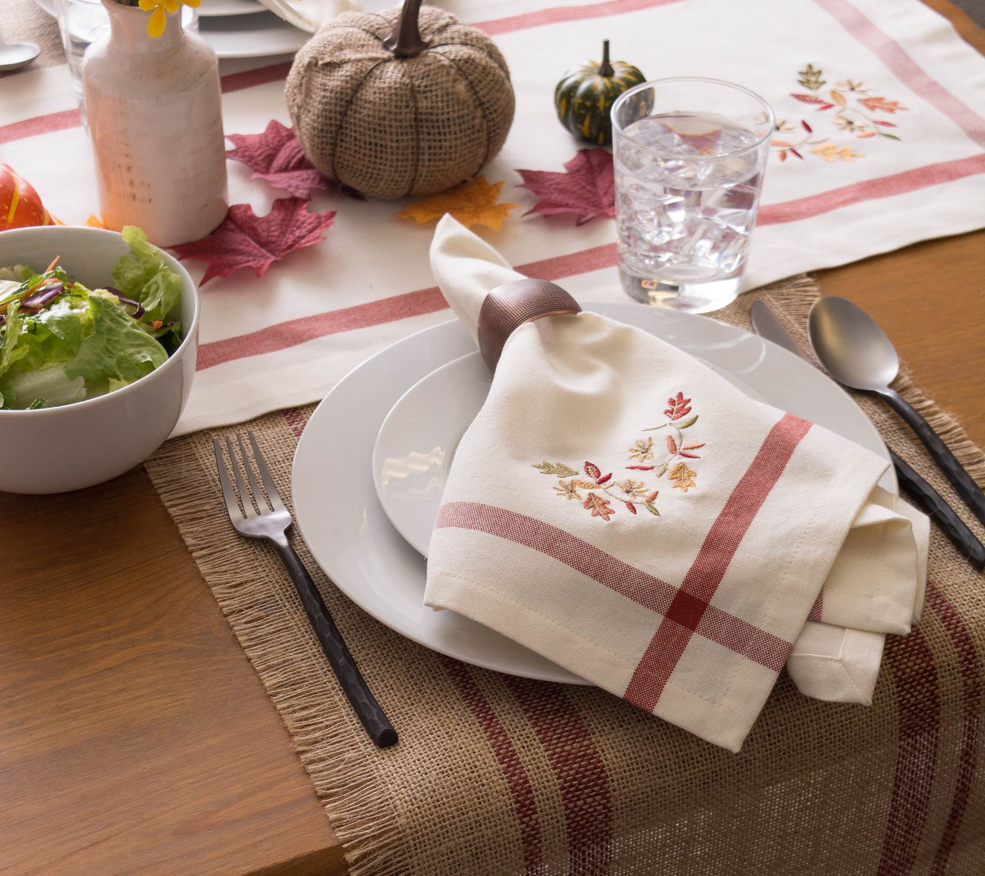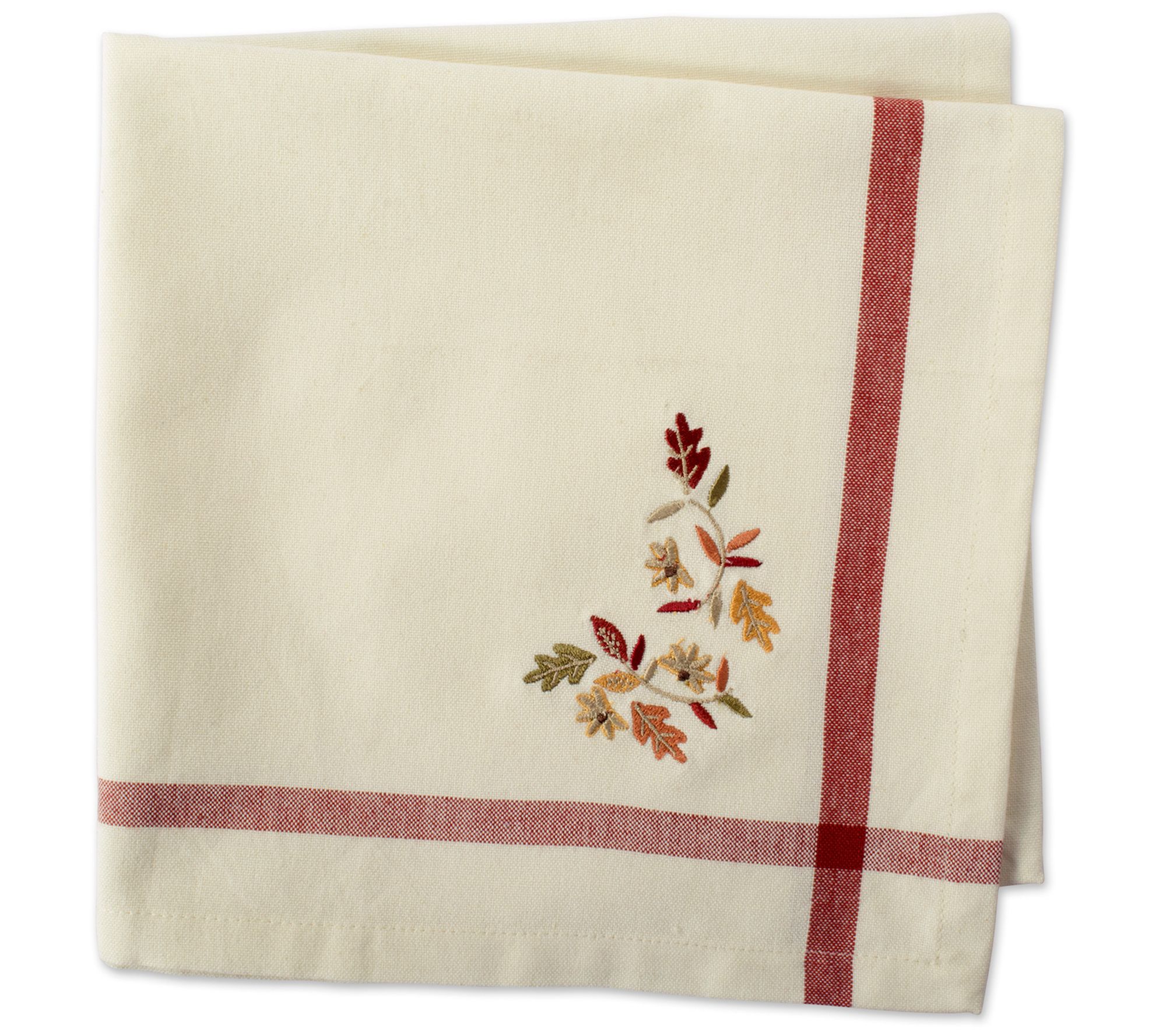 Give your table setting a subtle and sophisticated touch--for fall occasions--with these lovely embroidered napkins. From Design Imports.