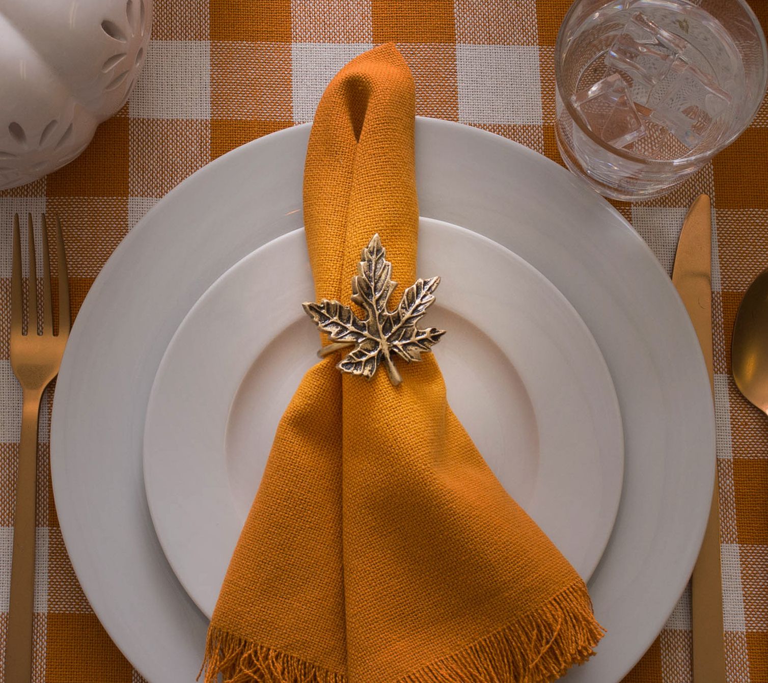 The final touch to your Thanksgiving table? These rustic brass napkin rings that are easy to incorporate for mega aesthetic payoff. From Design Imports.