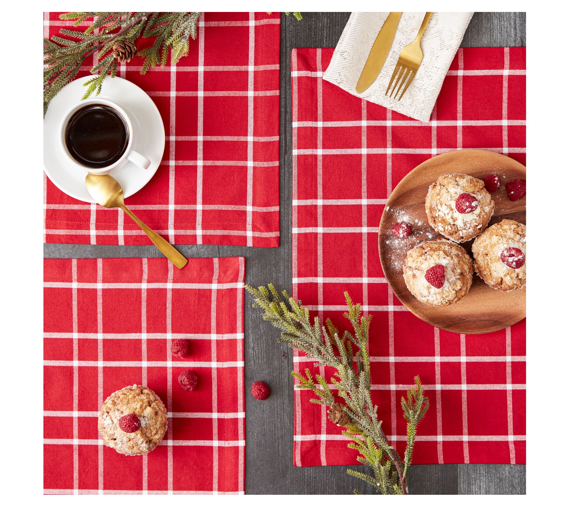These classic plaid placemats will bring festive warmth to your holiday table. From Design Imports.