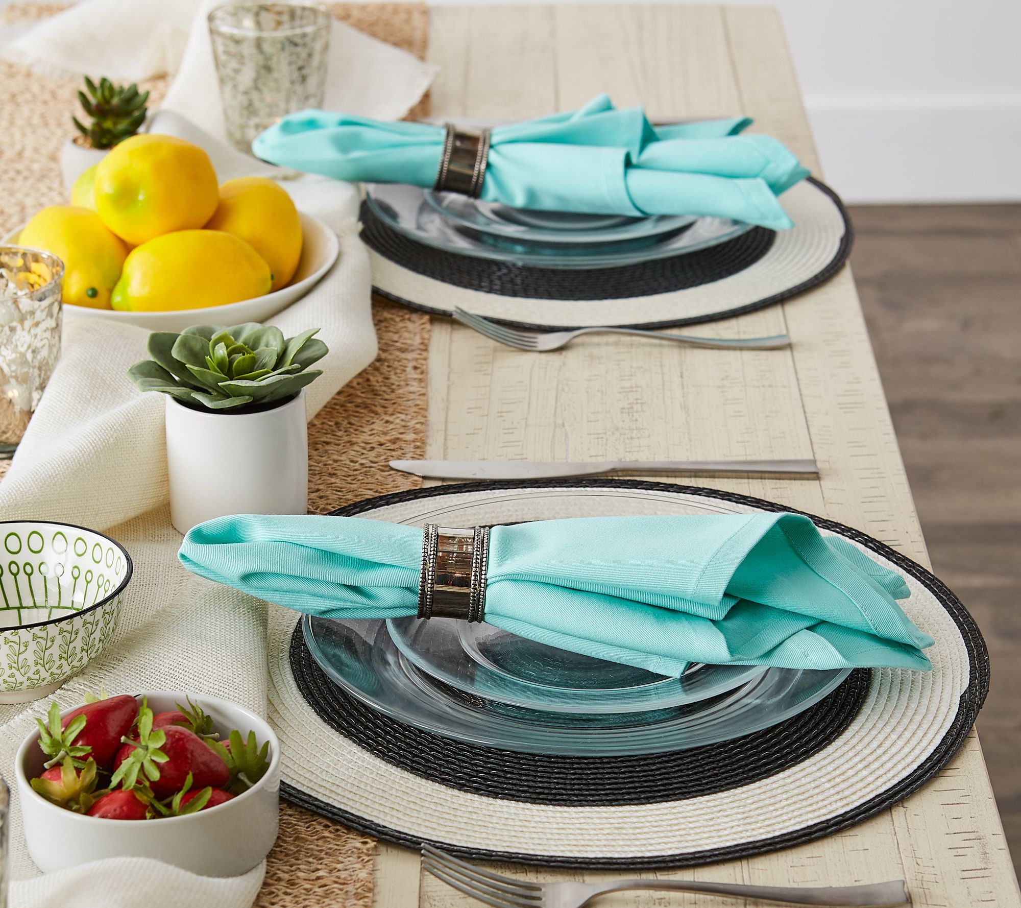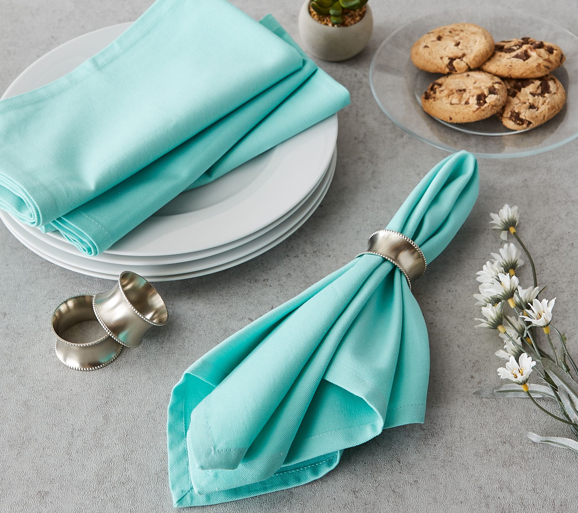 Make any meal just a little more elegant when you set the table with these versatile cotton napkins. Fold and lay flat for everyday use or add a napkin ring for a more formal look. From Design Imports.