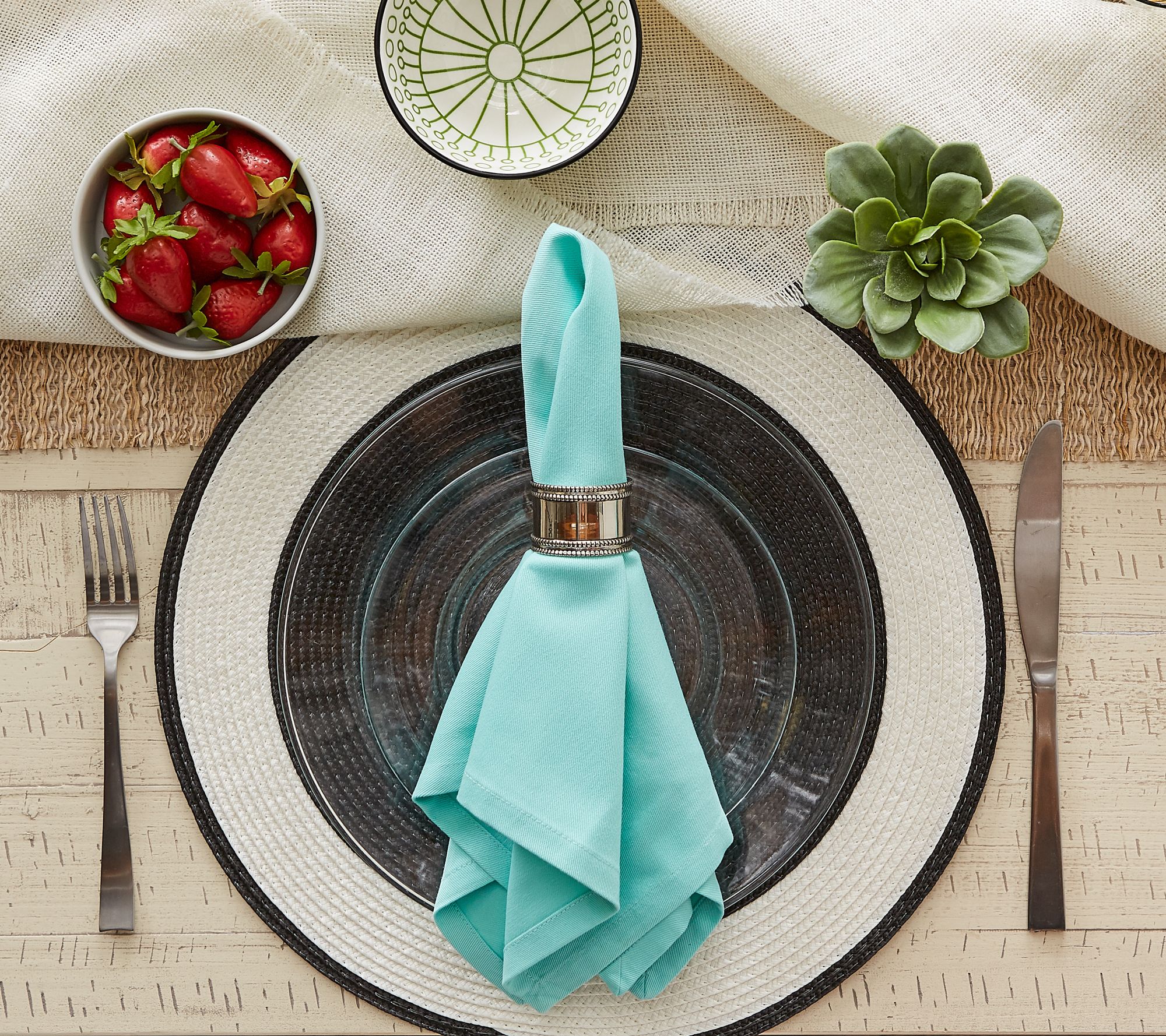 • Includes six solid-color napkins