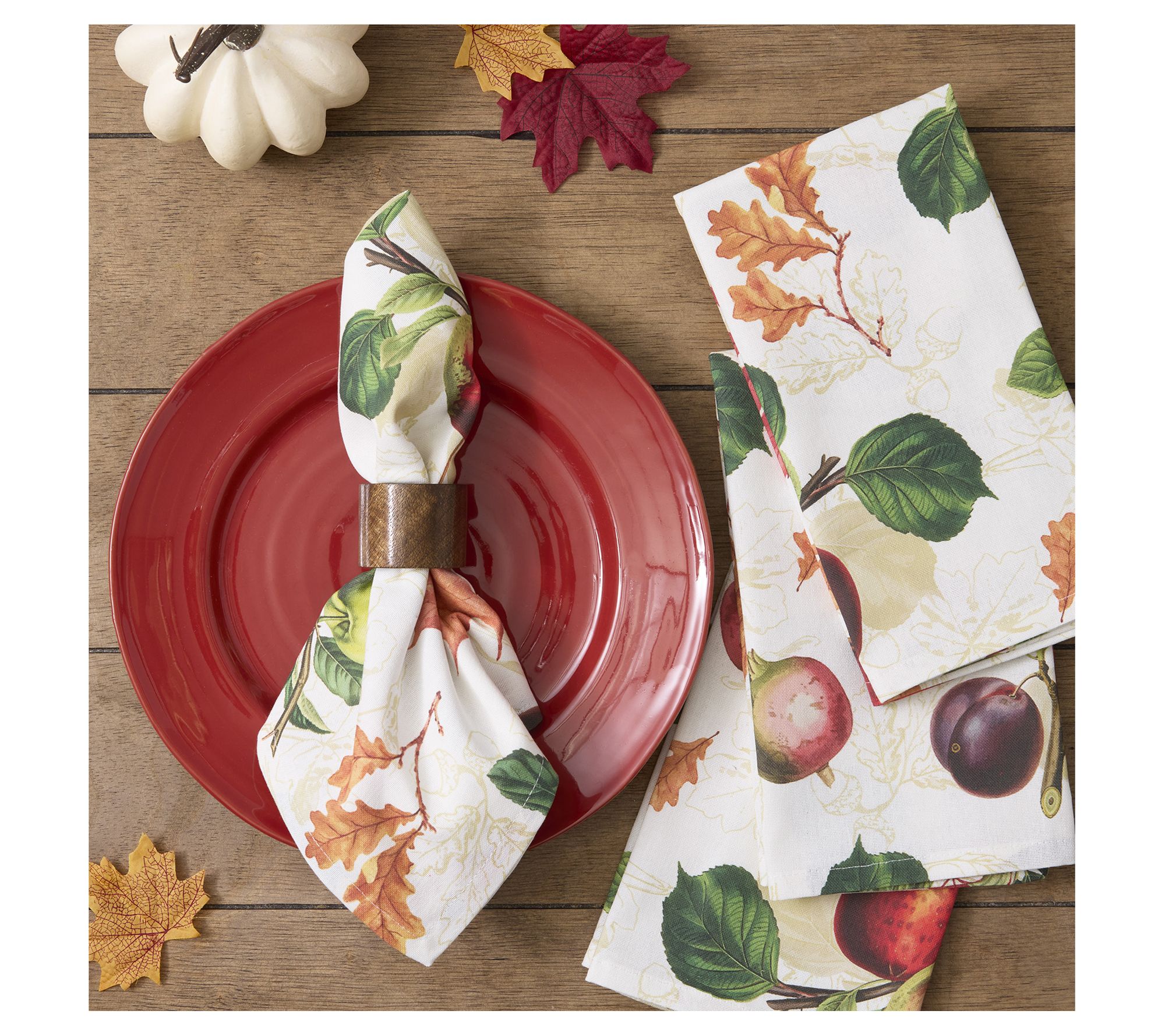 Add a festive touch to your gatherings from harvest season through Thanksgiving with this set of four Orchard Botanical printed napkins. Soft cotton material showcases seasonal prints that brighten up any meal, whether you're hosting family dinners or casual lunches. From Design Imports.