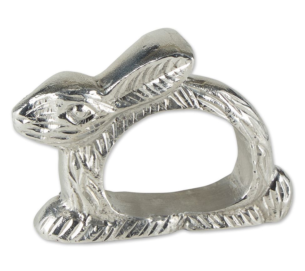 Add a touch of charm to your Easter table with these delightful silver rabbit napkin rings. Perfectly crafted to bring a festive feel to your dining setup, this set of four rings ensures that your table setting will have a polished and sophisticated finish. From Design Imports.
