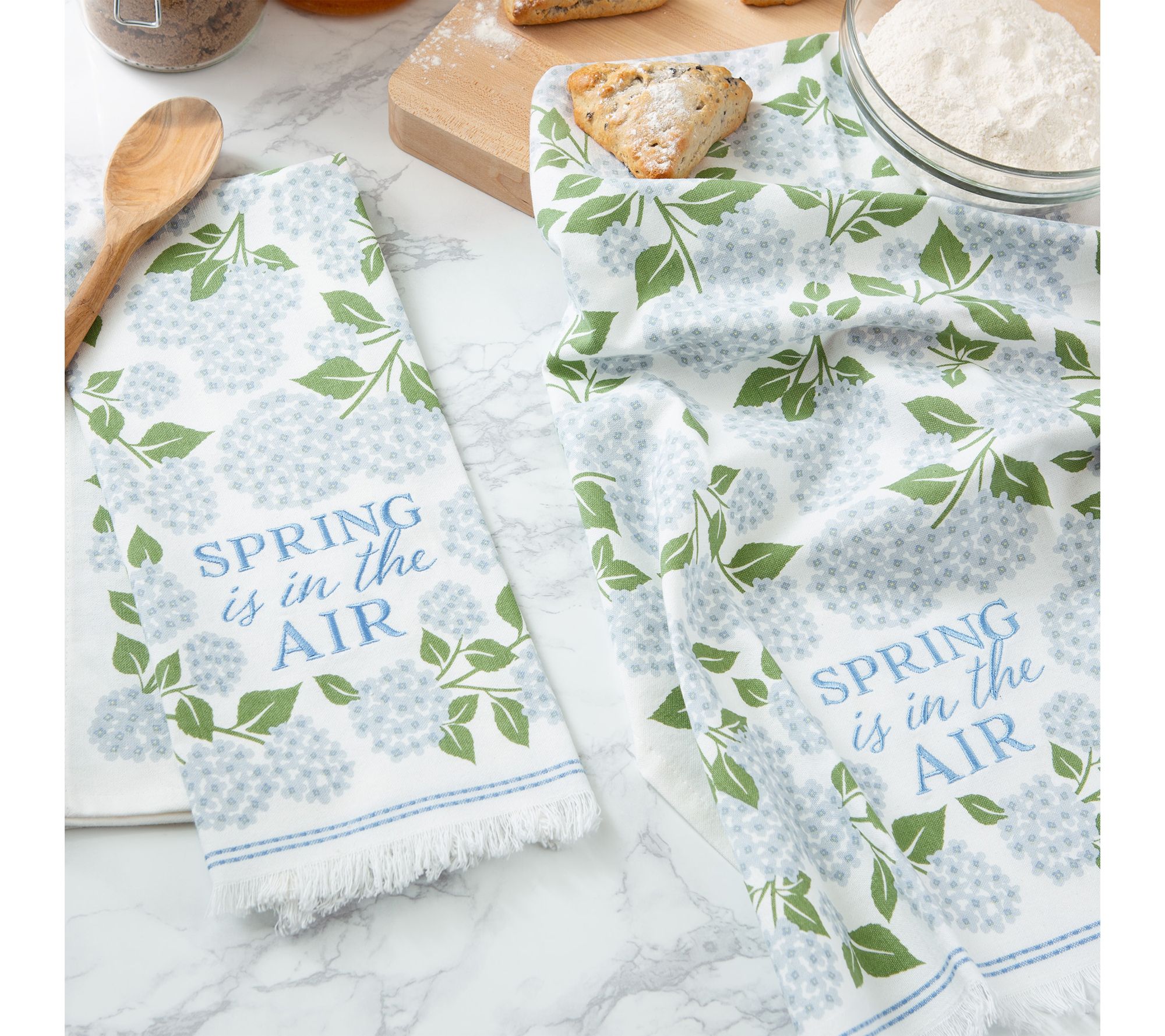 Brighten up your kitchen routine with the Spring Air Embellished Kitchen Towel Set. Featuring cheerful, seasonal motifs and delicate textured details, these stylish cotton towels make drying hands or tidying up a joyful daily moment, while their generous size easily handles spills or light chores. From Design Imports.