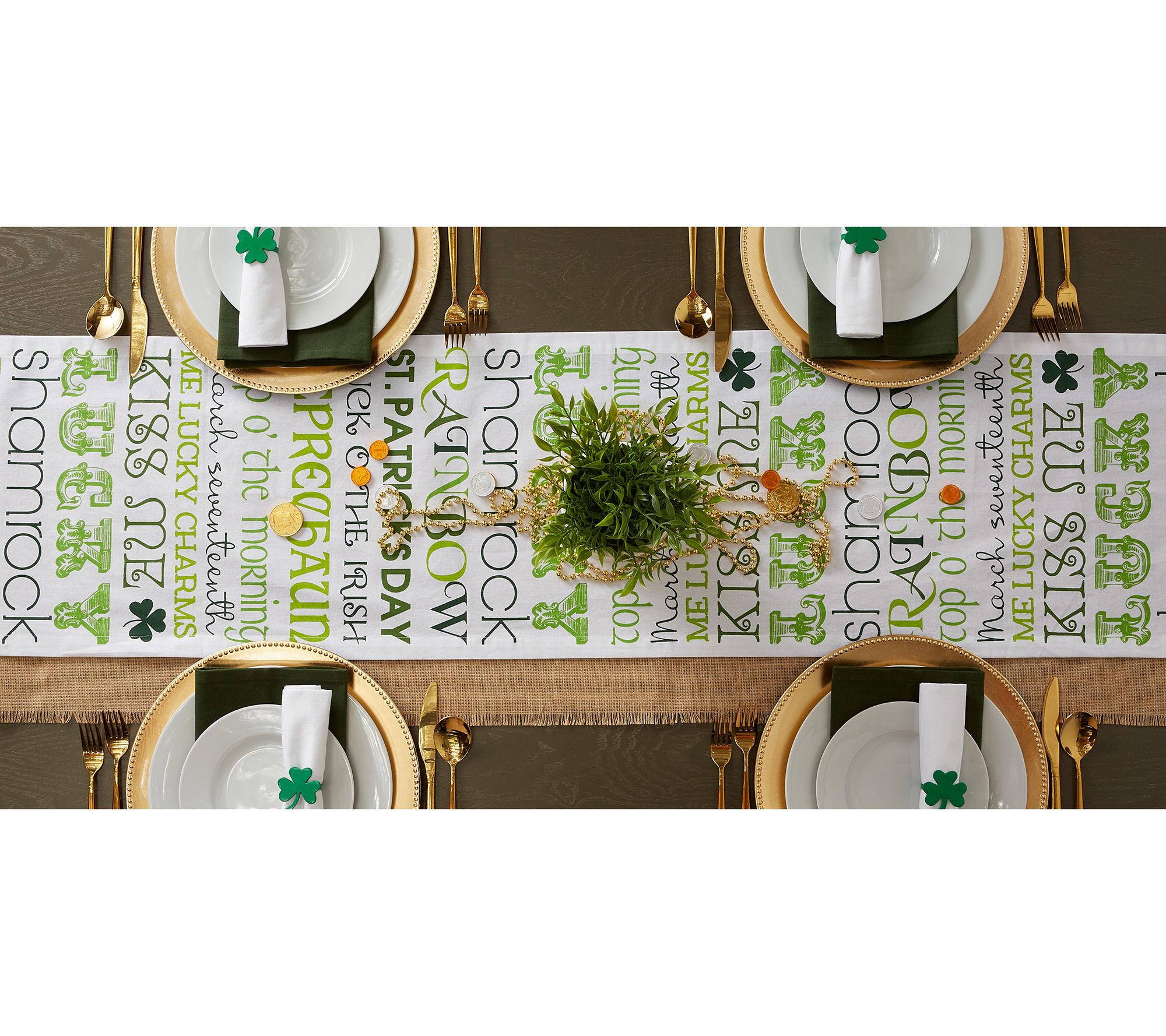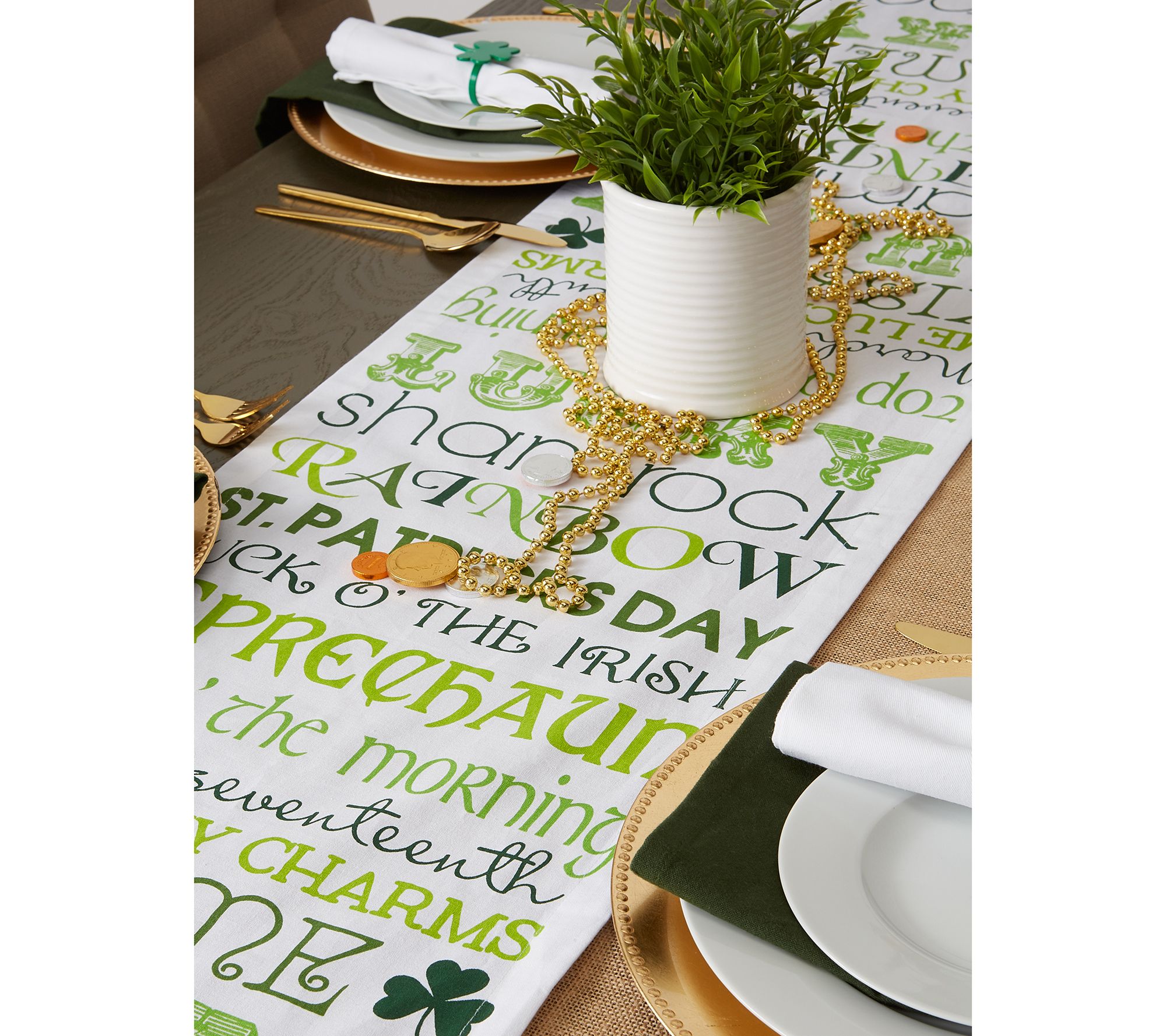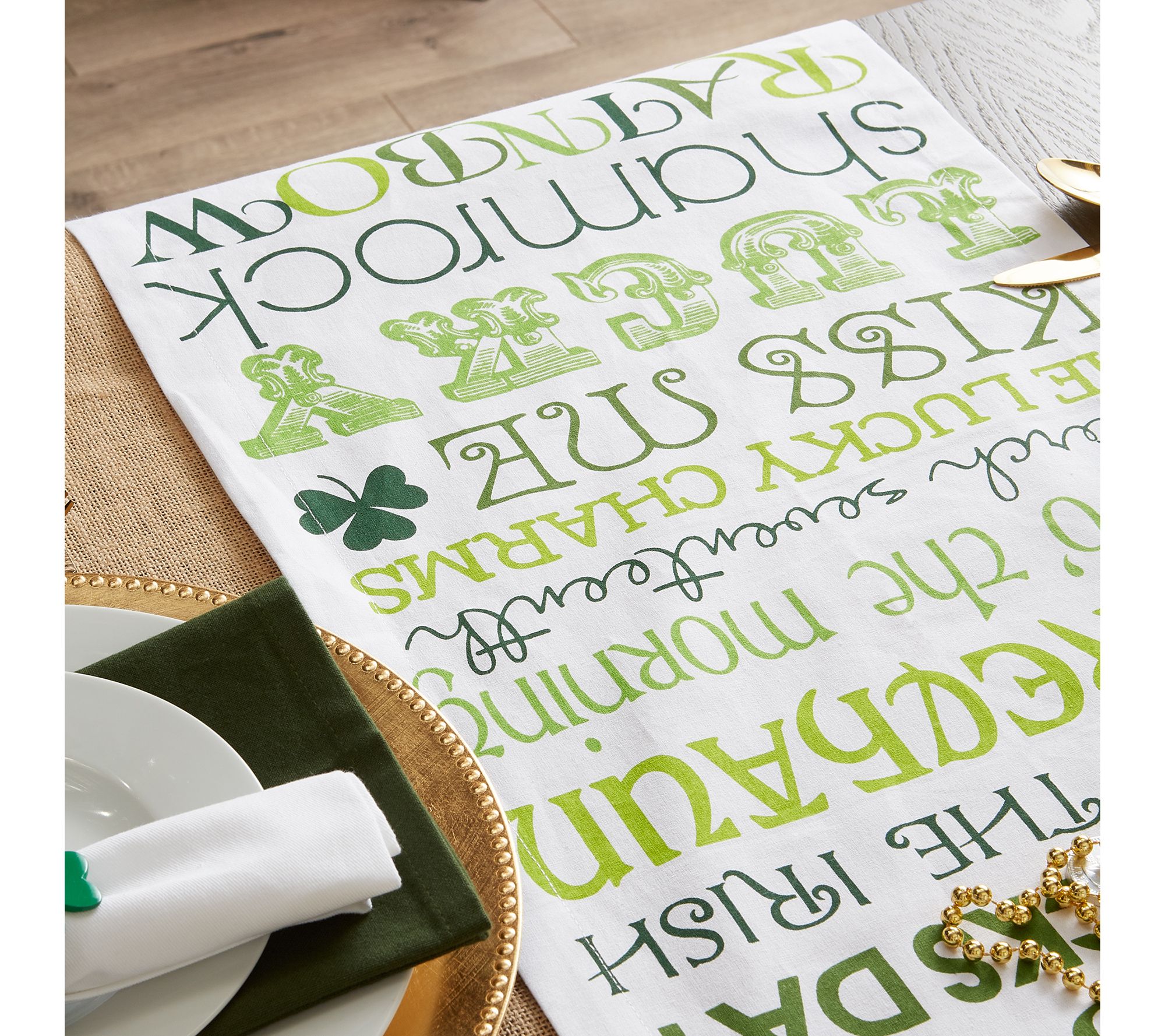 Add a touch of Irish cheer to your dining space with this charming table runner, ideal for St. Patrick's Day celebrations or any day you wish to bring a bit of luck to your meals. From Design Imports.