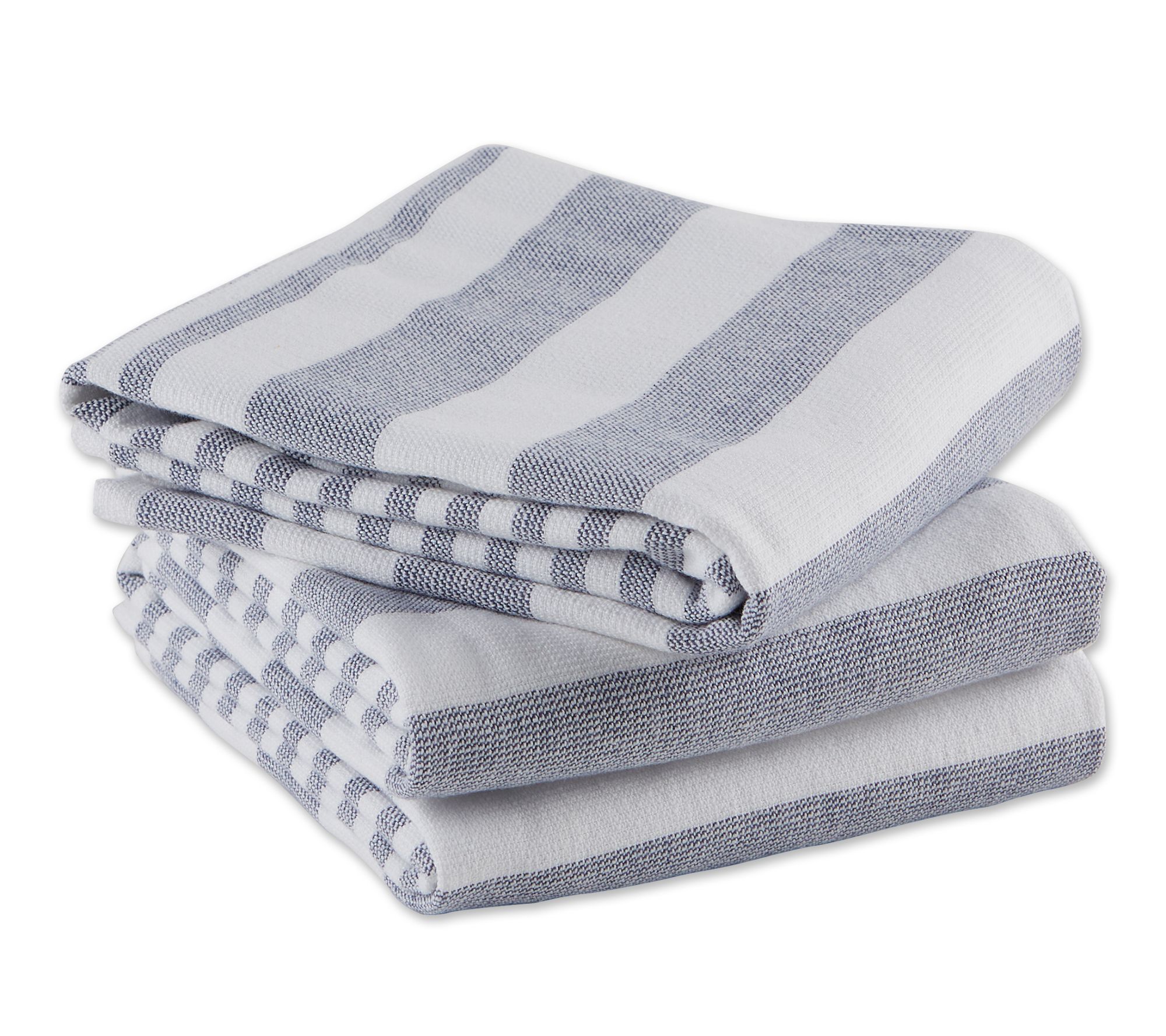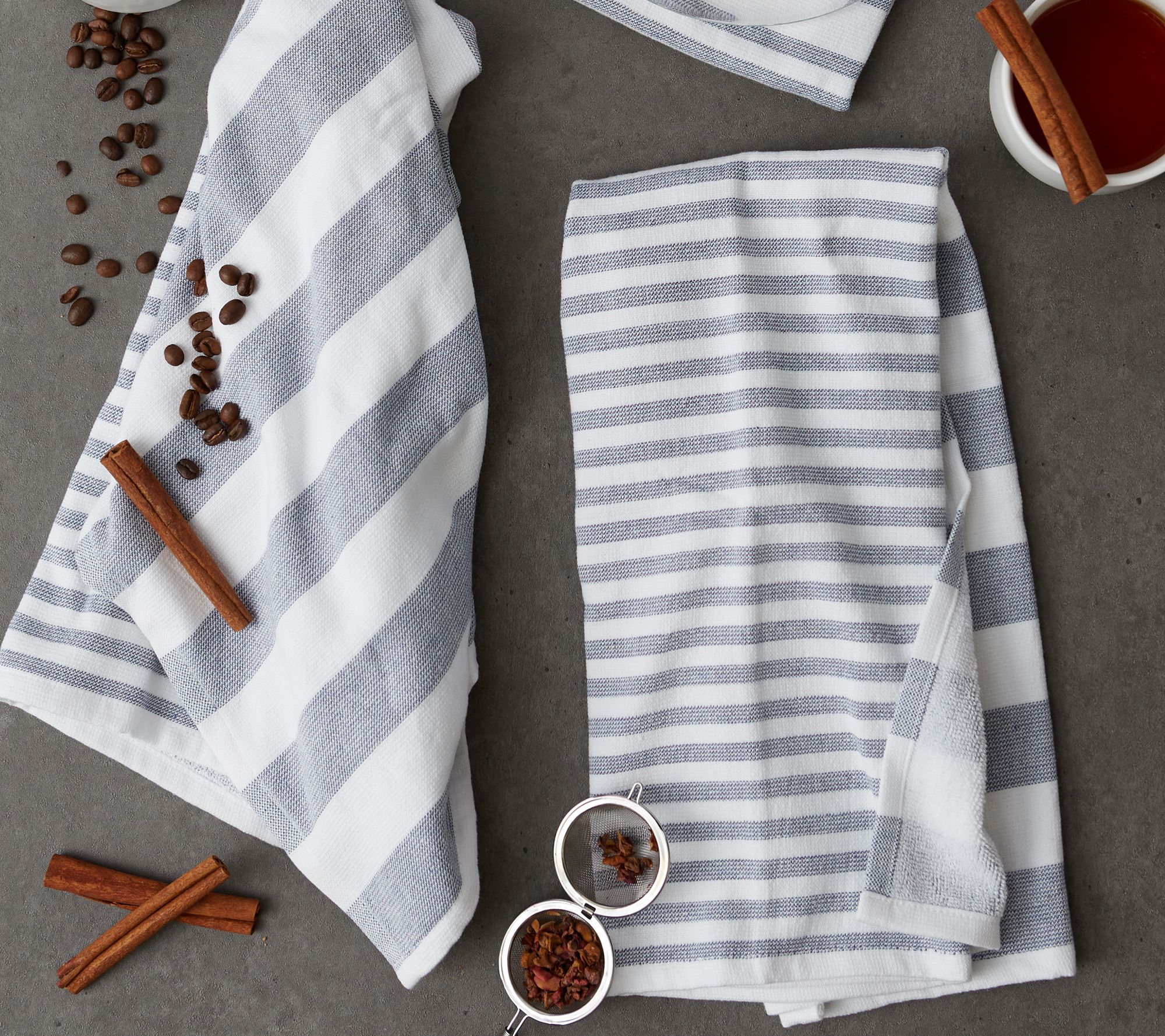 Toss the paper towels! This set of cotton kitchen towels are ideal for all your drying, wiping, and kitchen cleaning needs (and less trash for the landfill). From Design Imports.