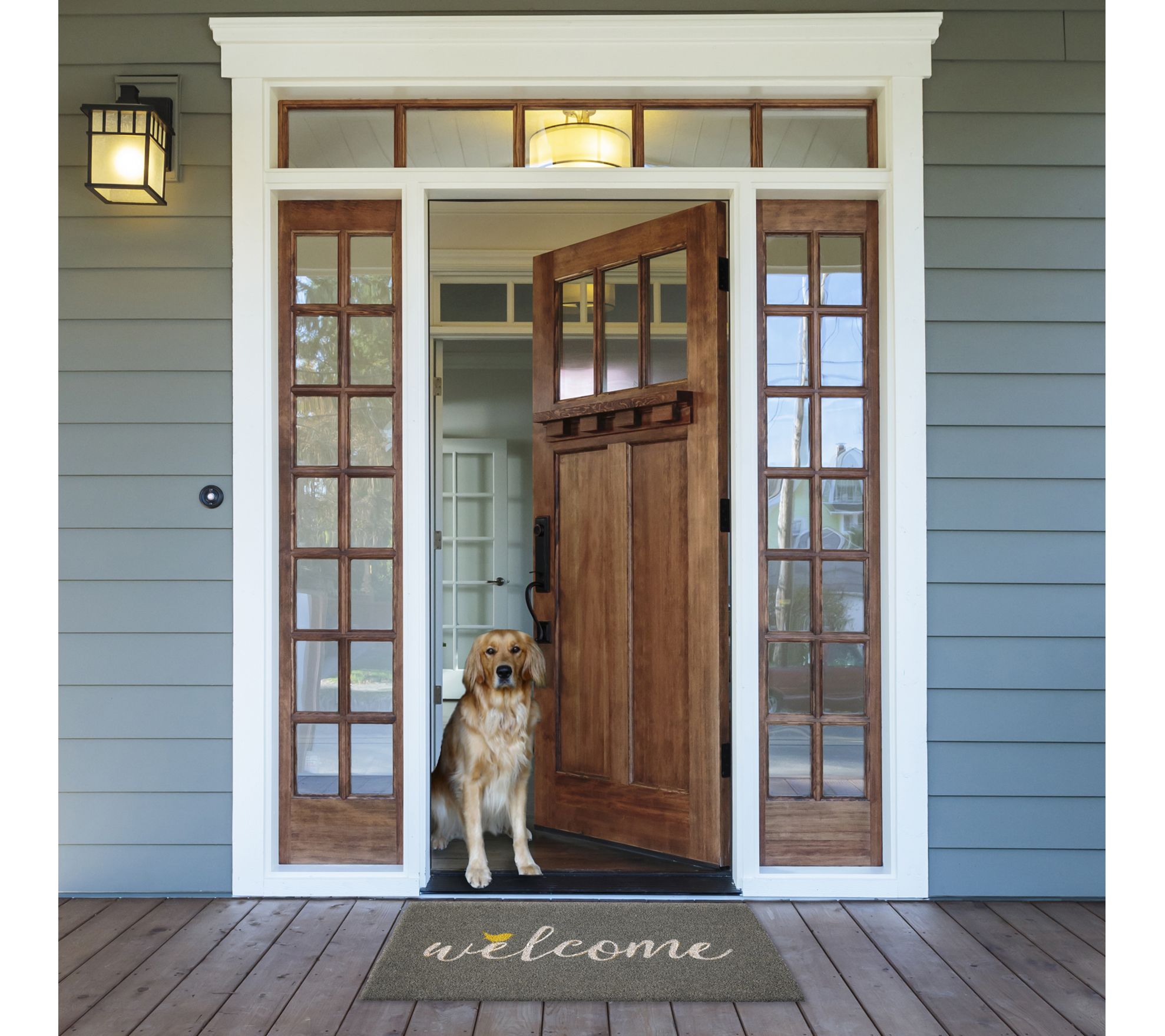 Simple and endearing, this "Welcome" doormat brings a fresh look to your front-door decor. From Design Imports.