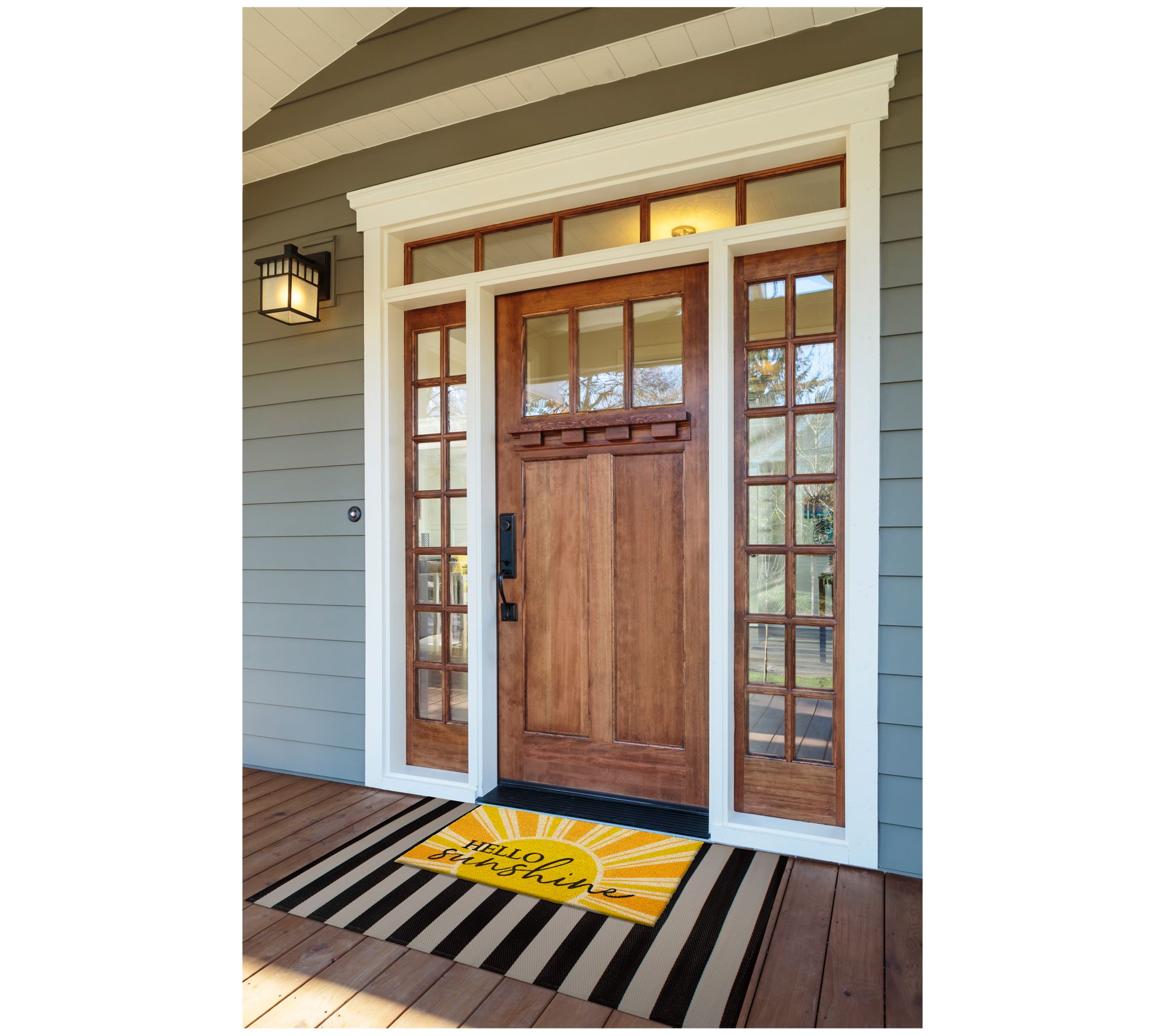 Greet the morning and each new day with this colorful and friendly doormat. With the phrase "Hello Sunshine" and made from coir fiber, it is just the way to make sure you step into your home with clean feet. From Design Imports.