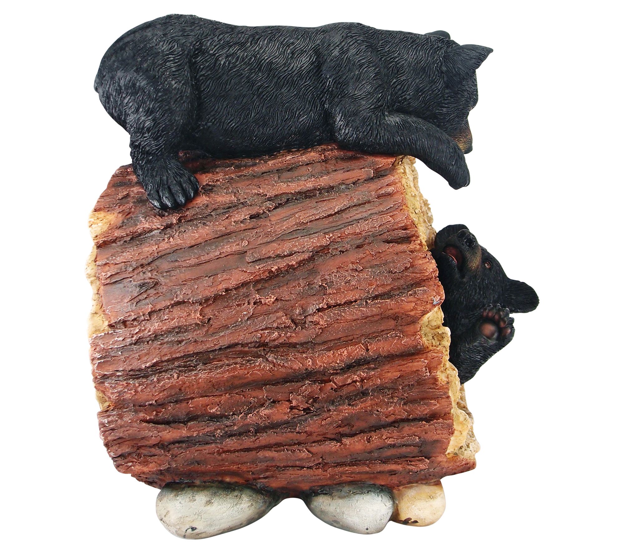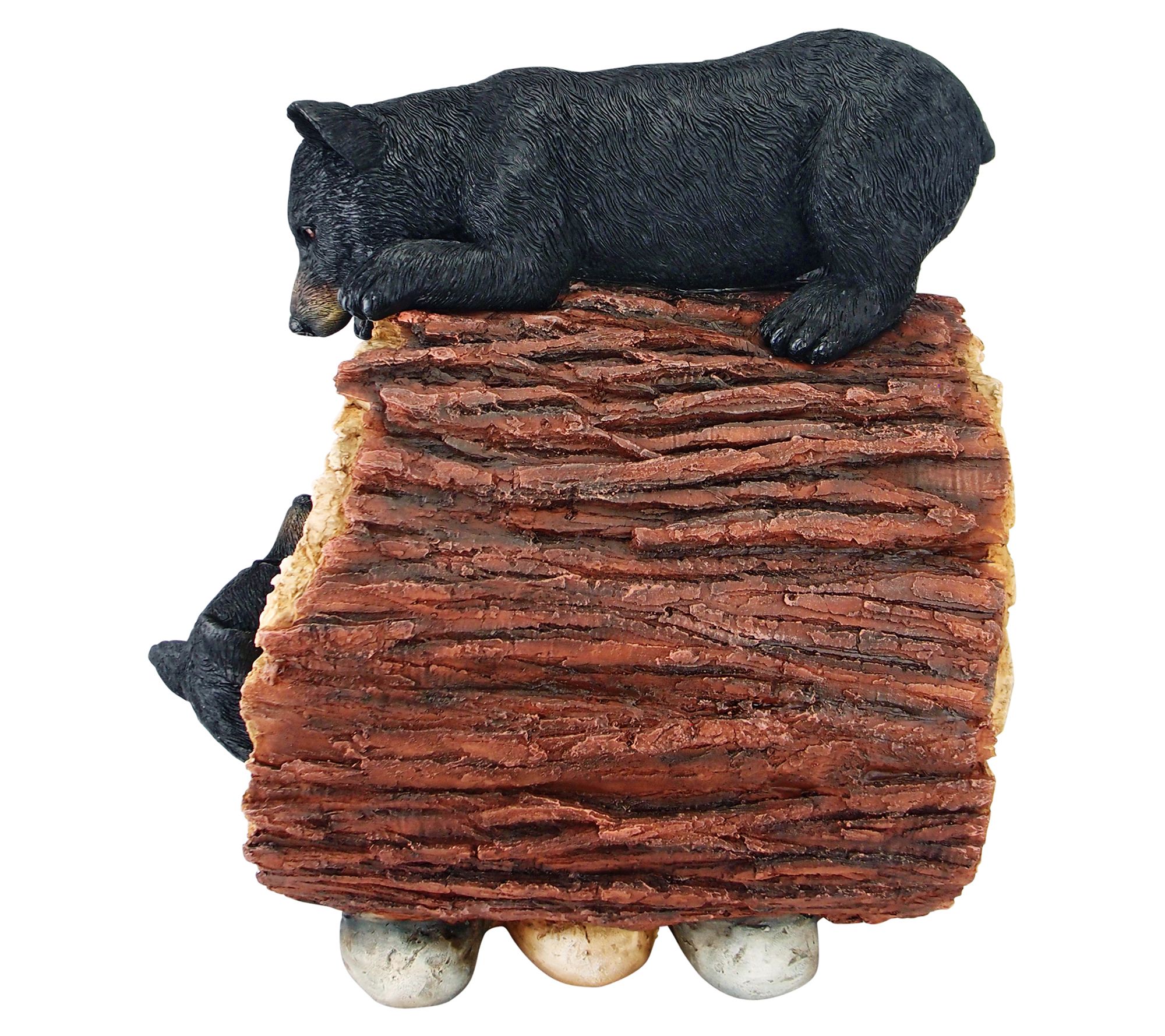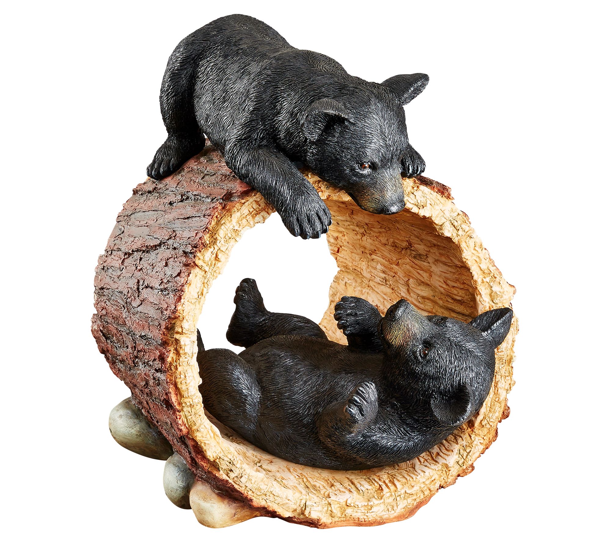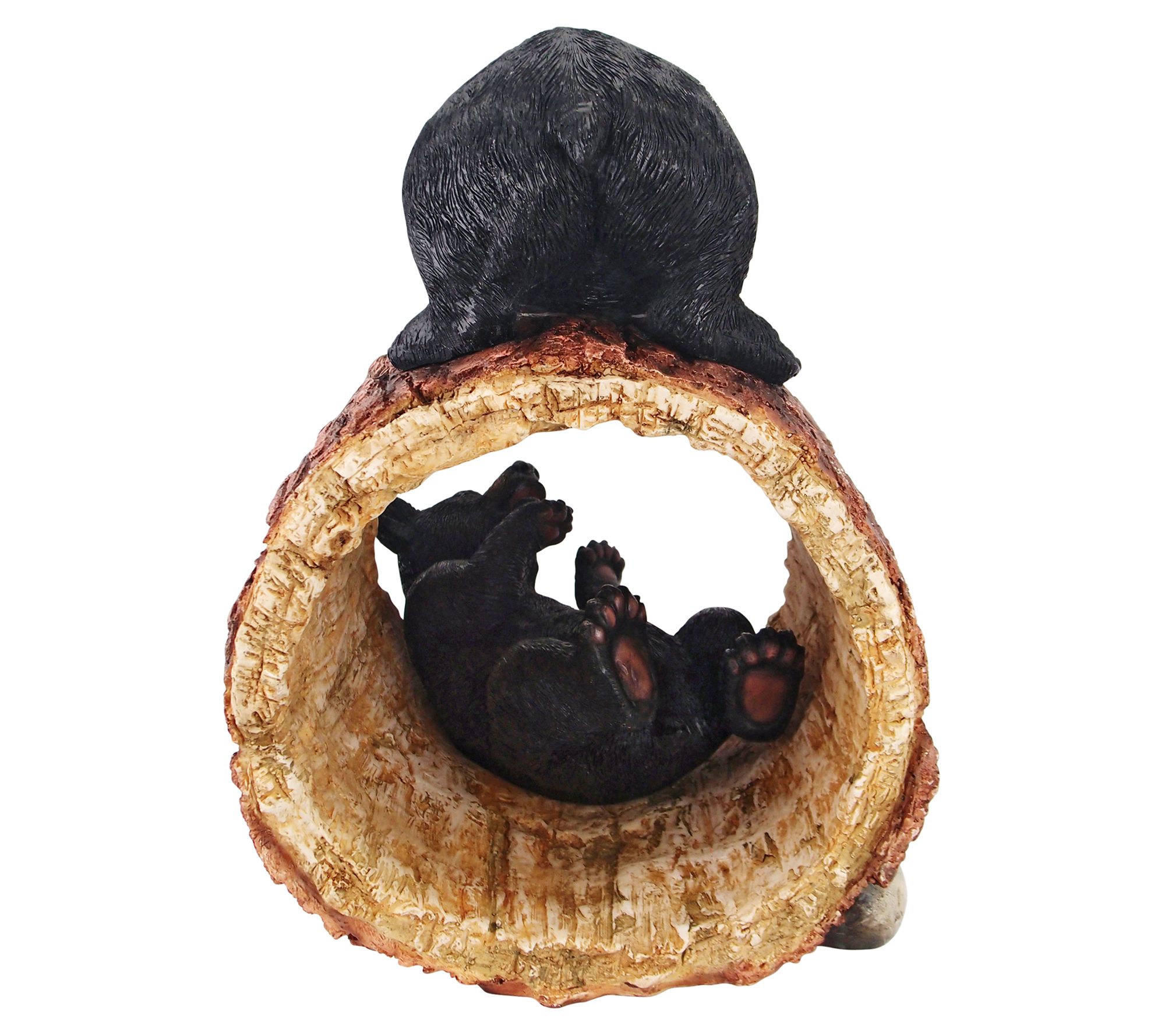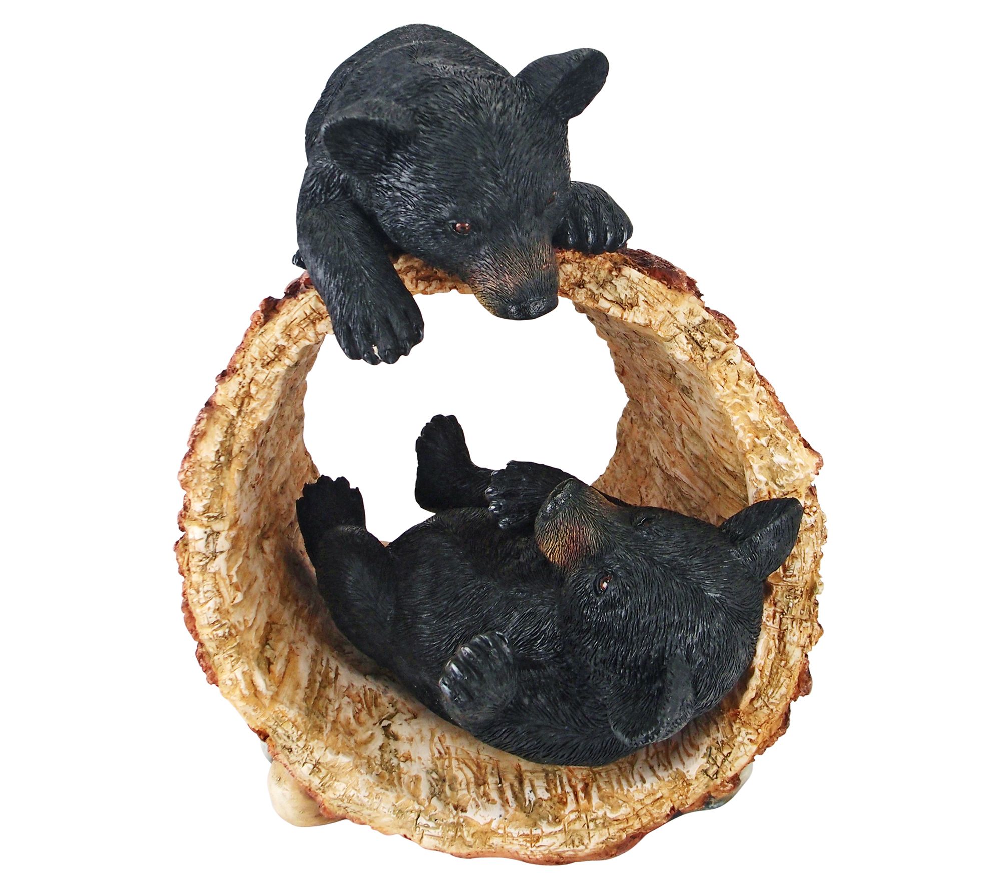 Two feisty black bear cubs roughhouse around a hollow forest log in this realistic wildlife animal statue crafted from designer resin and individually painted, showing off intricate details like fluffy fur and oversized paws. This work of art adds charm to your home or garden decor, and makes a wonderful gift for the bear enthusiast or outdoor lover in your life. From Design Toscano.