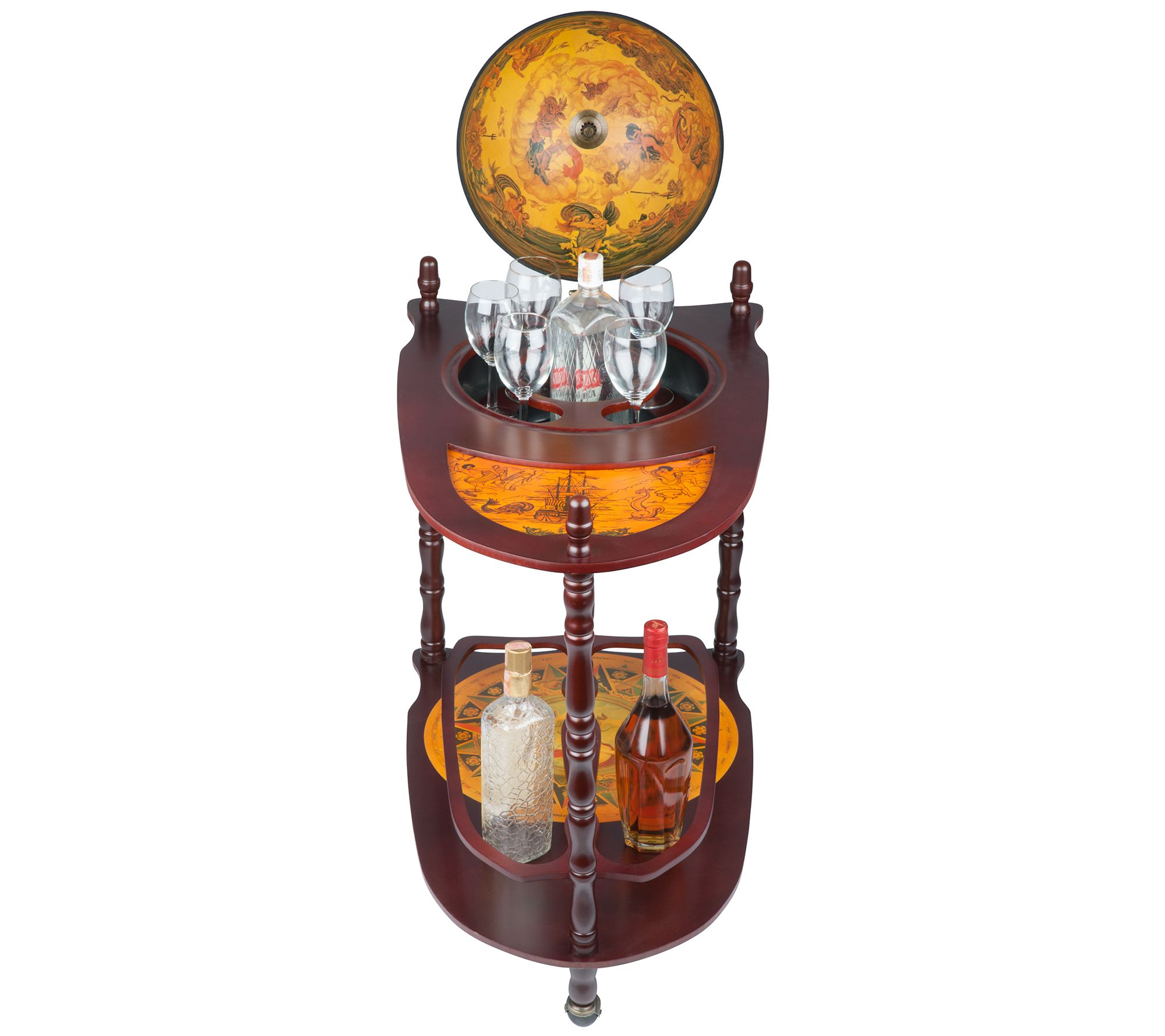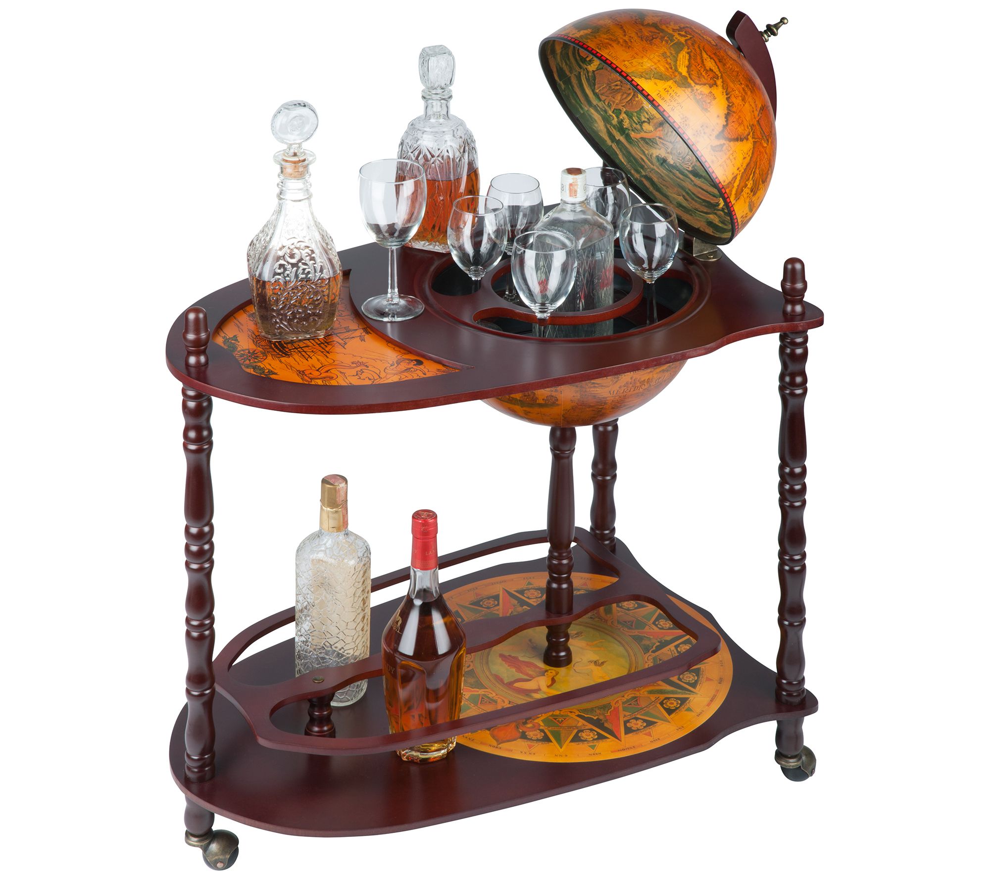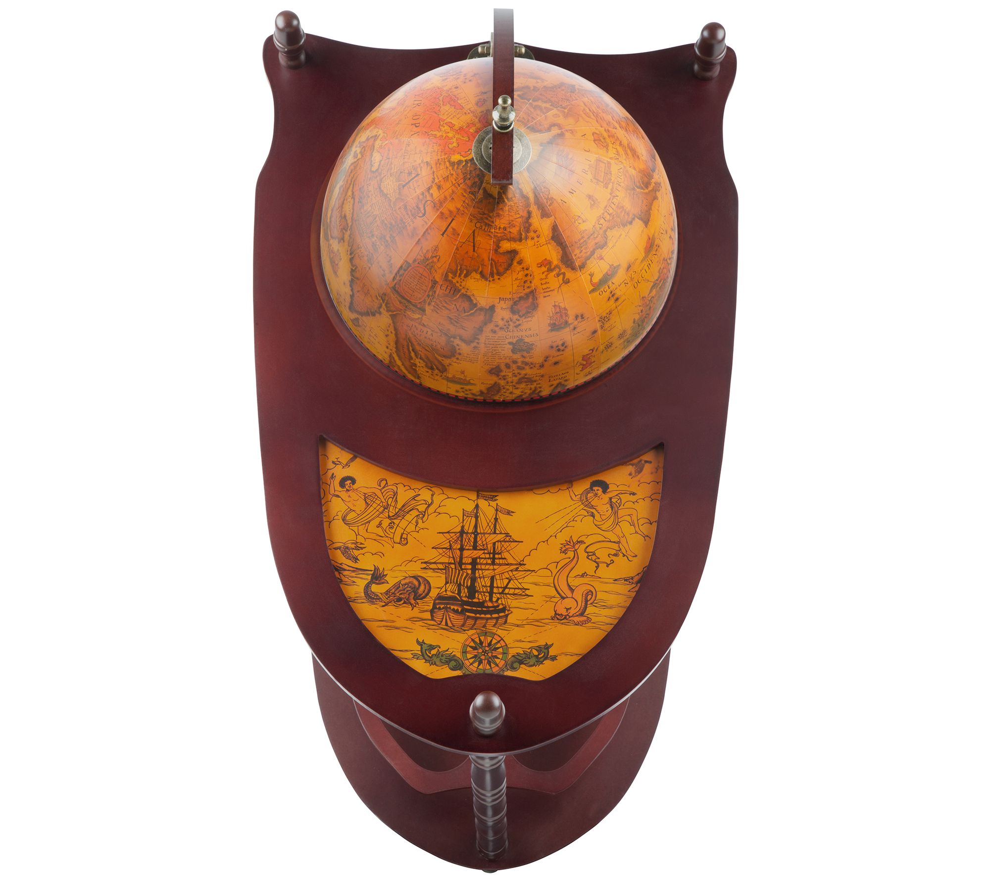 Serve guests with Old World style from a globe bar cabinet that opens to keep favorite beverages and stemware at your fingertips! Embellished inside and out with replica vintage maps of the earth and skies. Ample room for your treasured bottles and glasses in its double-level storage area. From Design Toscano.