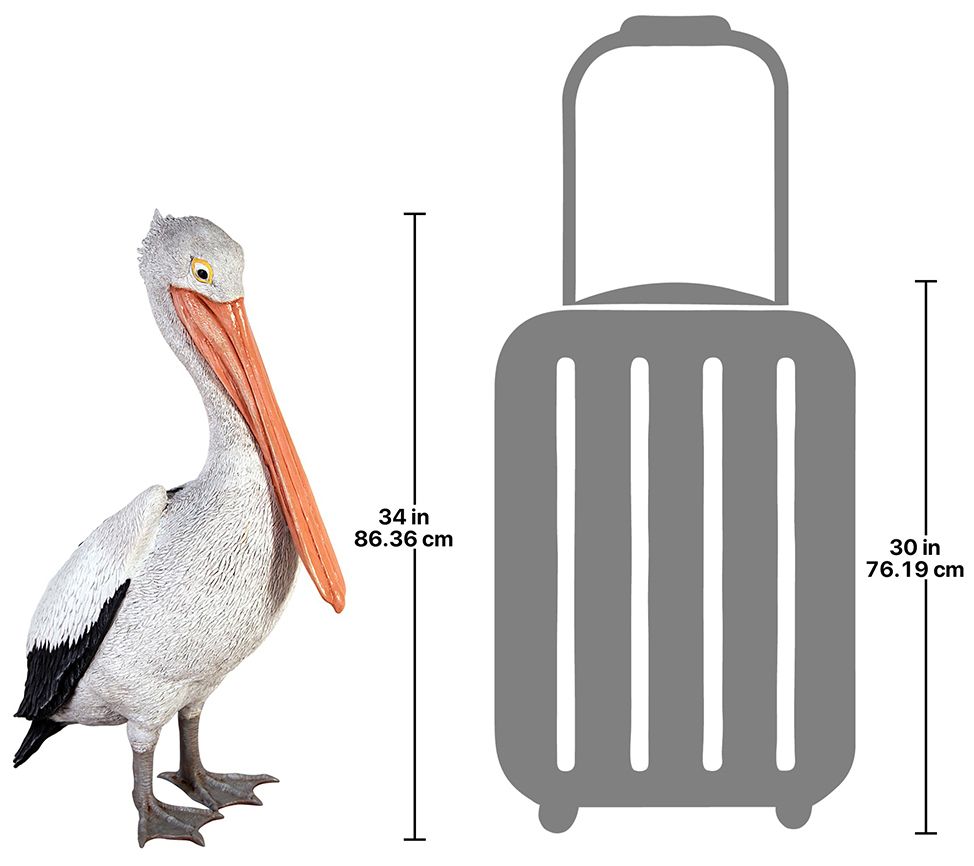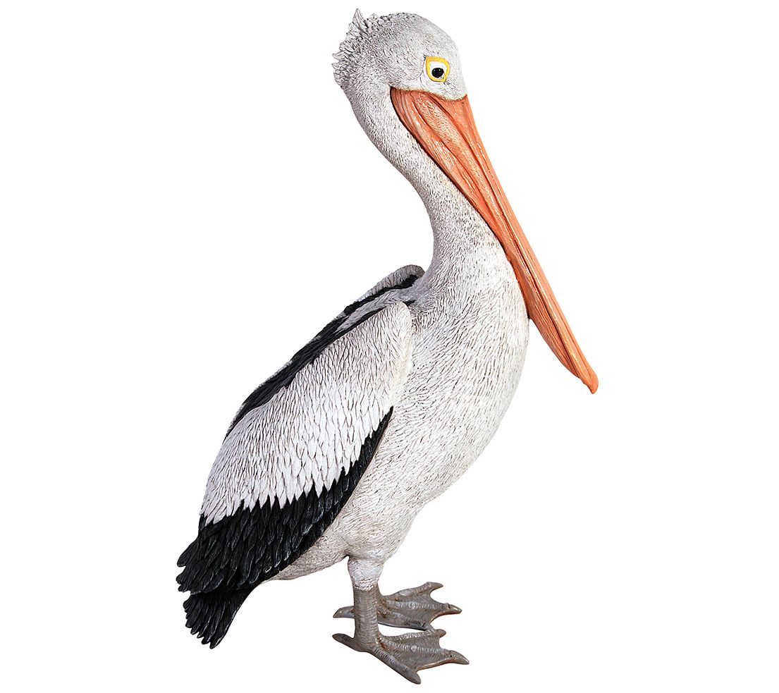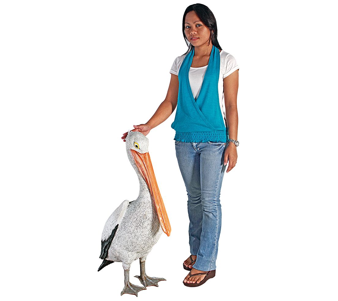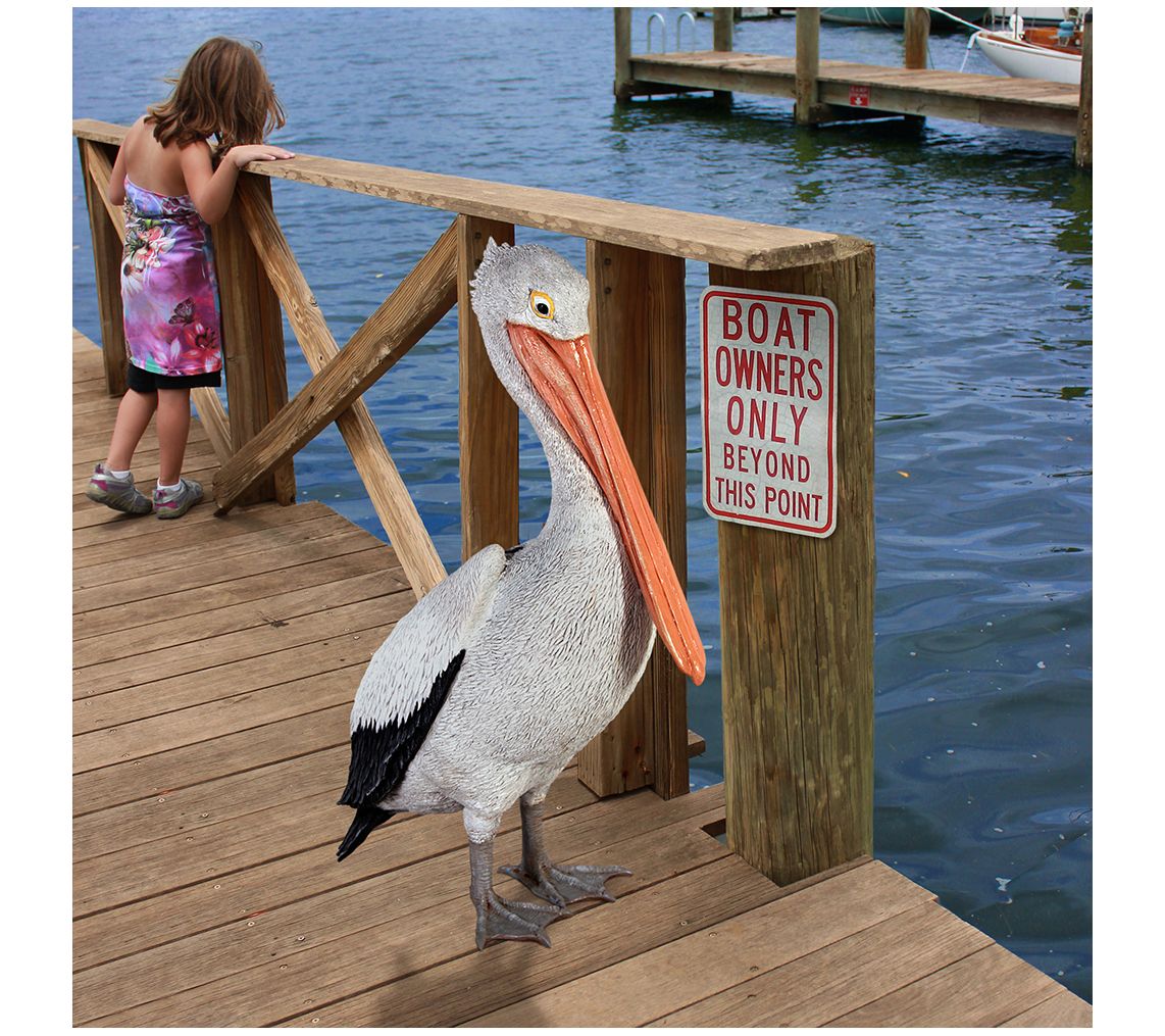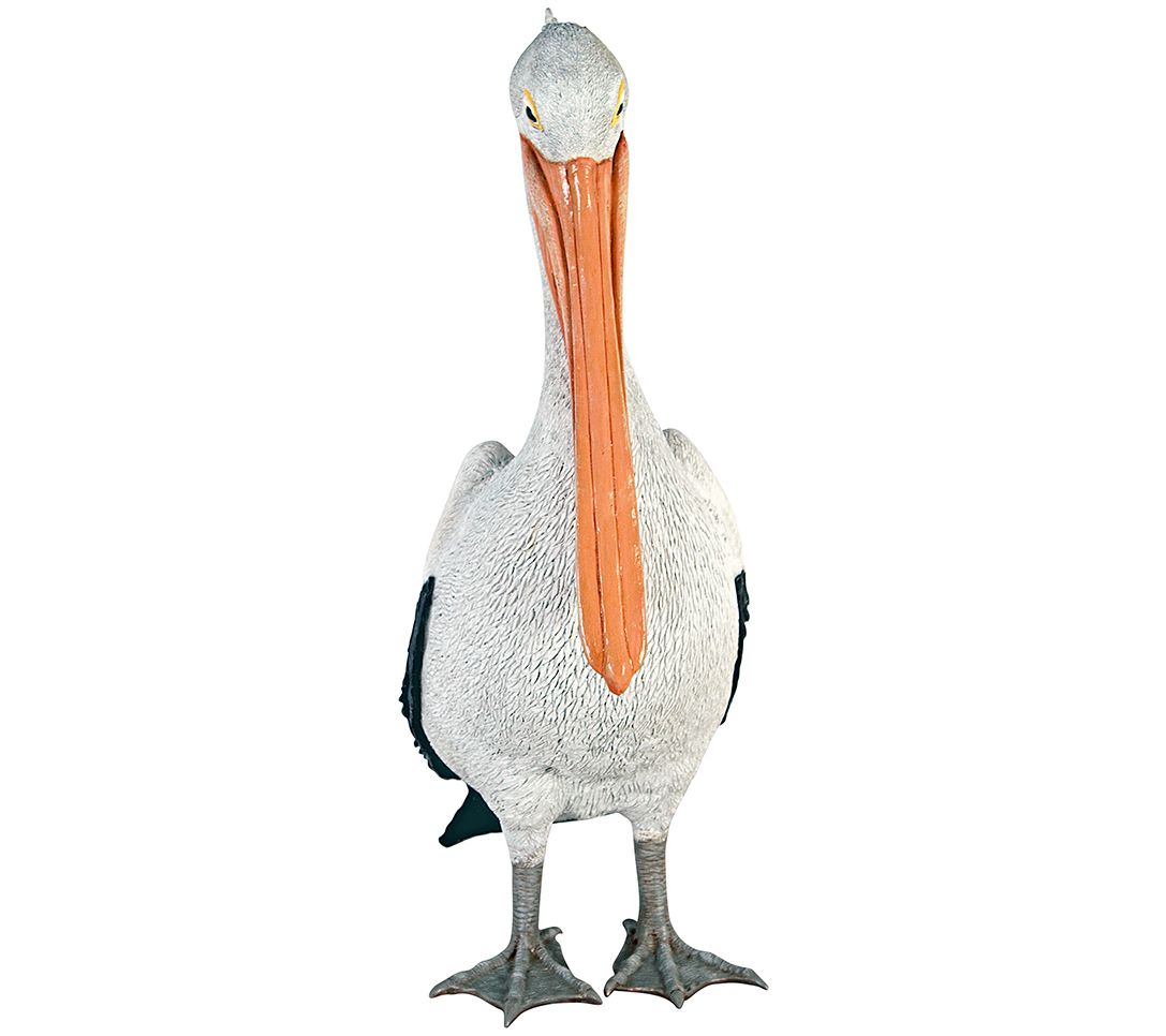Fresh from a seaside perch, this fun white pelican statue adds a touch of oceanside charm to your space, perfect near a pool or pond. From Design Toscano.