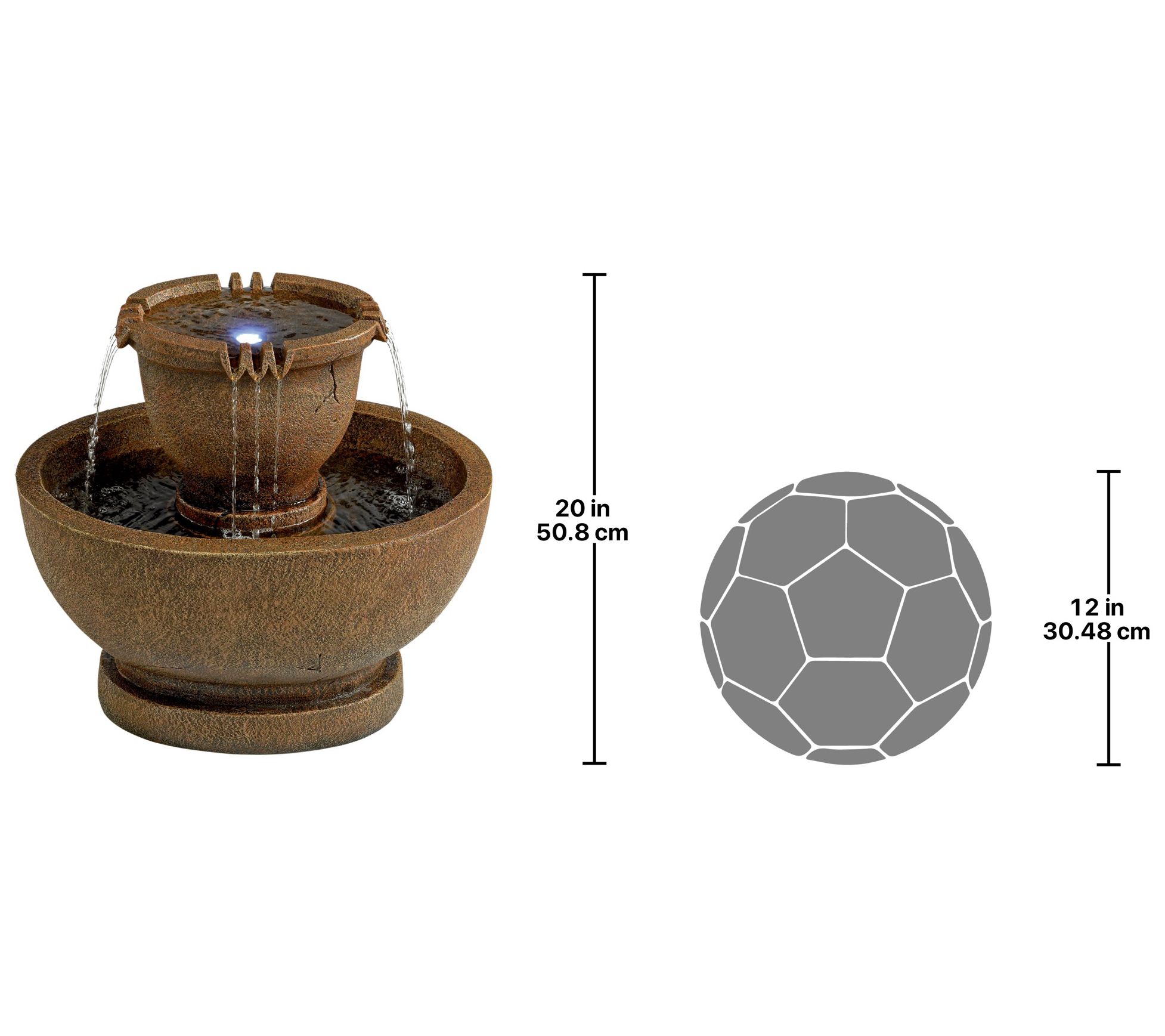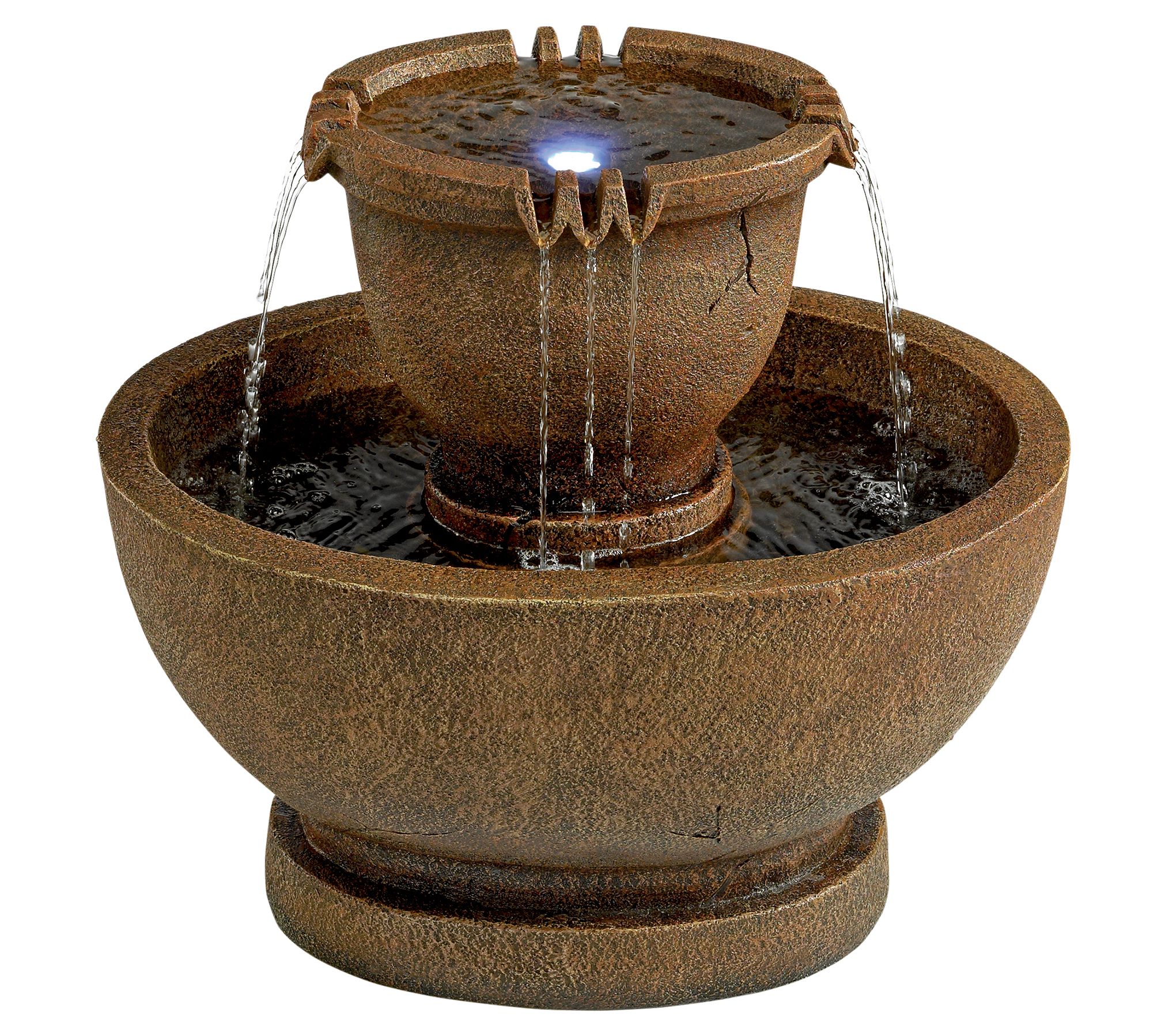 • Includes tiered fountain with pump, LED light kit, and care instructions