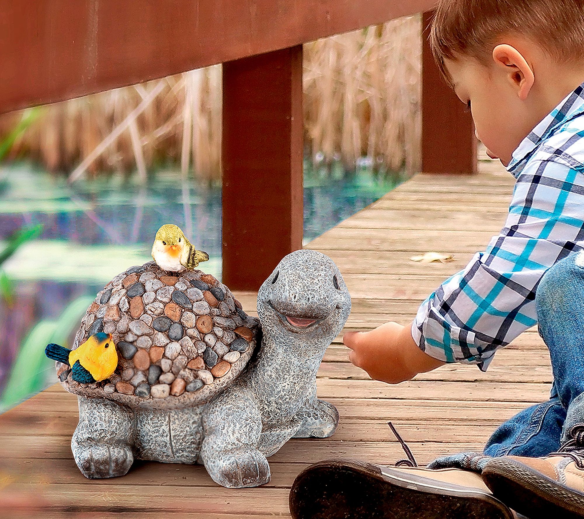 Pebbles the turtle, along with his springtime friends, is happy to embrace a slower pace and take in all that a new season has to offer. Perfect near a pond, pool, patio, or garden, this sweet turtle sculpture makes the ideal outdoor companion. From Design Toscano.