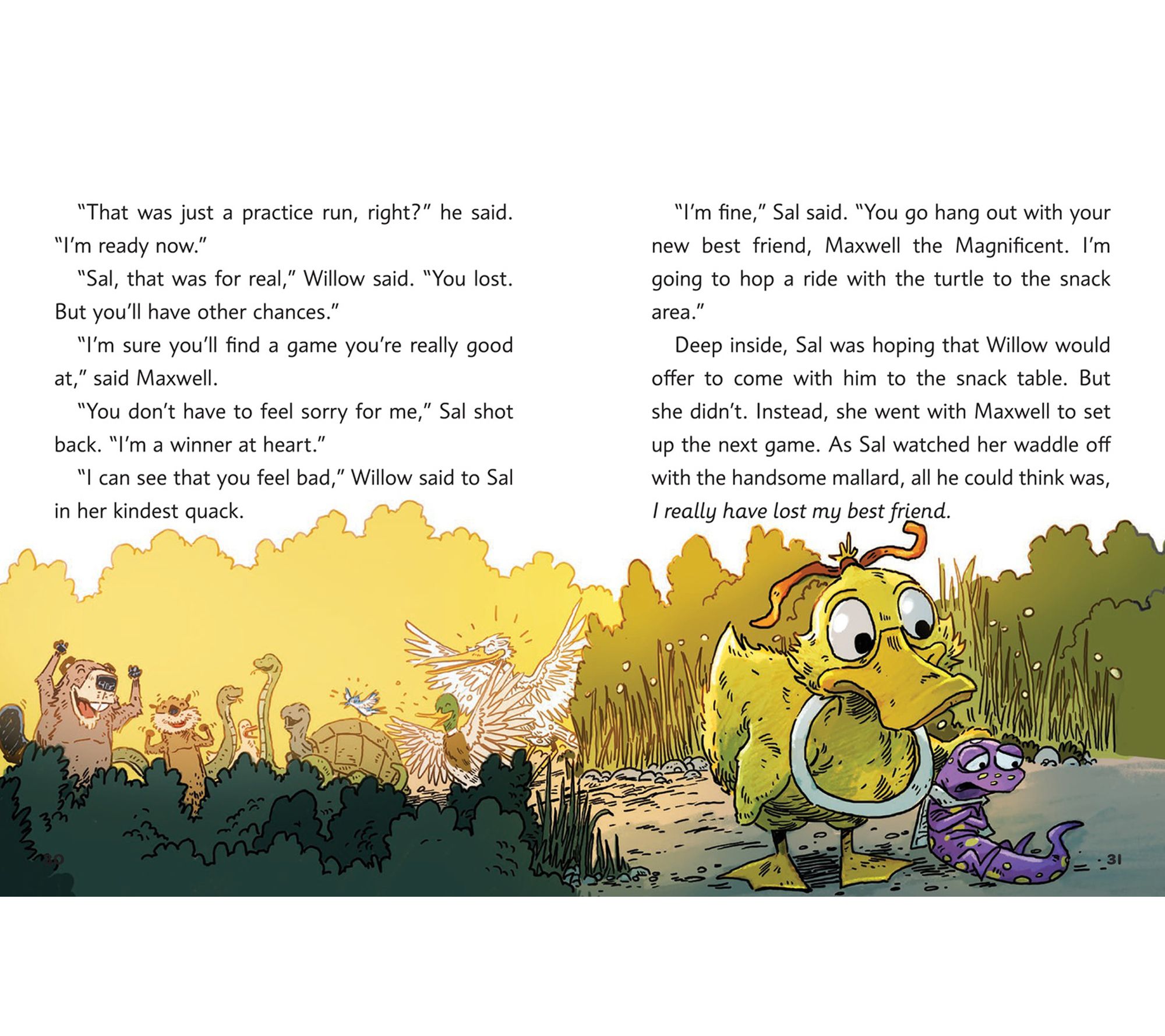 When the Pond Squad arrives at Emerald Pond for a thrilling day of games and friendship, their excitement soon turns into a puzzling adventure as Maxwell, the cool mallard, suddenly vanishes. With quirky animal characters, mystery, and plenty of laughs, this full-color chapter book draws young readers into a lively world where teamwork saves the day.
