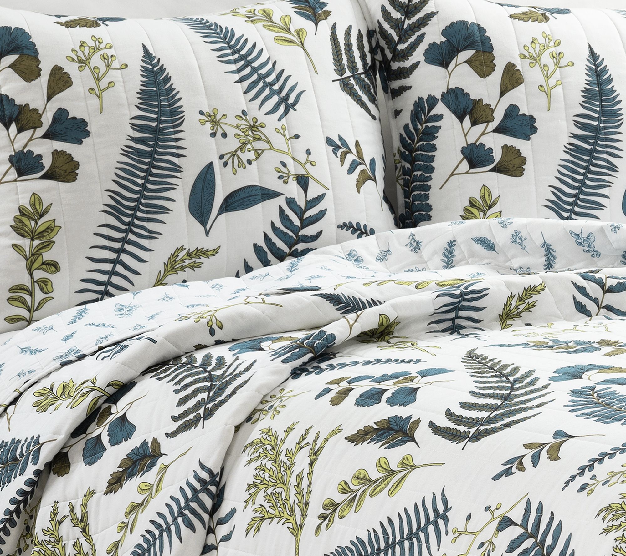 Beautiful botanicals and a reversible design make the Devonia quilt set a versatile and stylish addition to any bedroom. From Lush Decor.