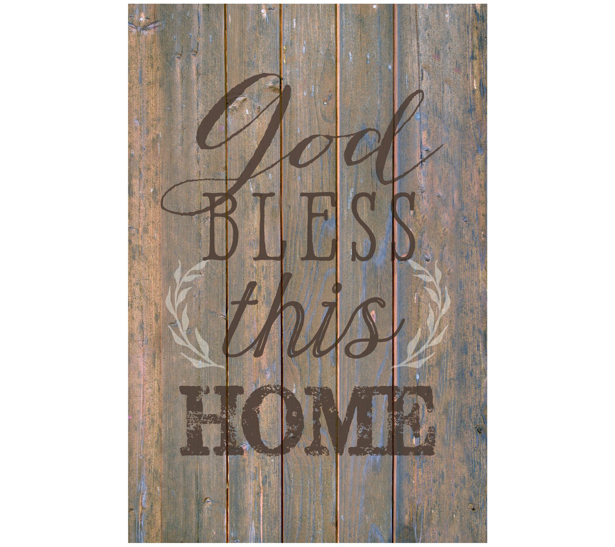 "God Bless This Home." The perfect gift for a new homeowner or a worthy addition to your own home decor, this inspirational, reclaimed wood-look wood plaque features an easel back and is boxed for gift-giving. From the Dexsa New Horizons Collection.