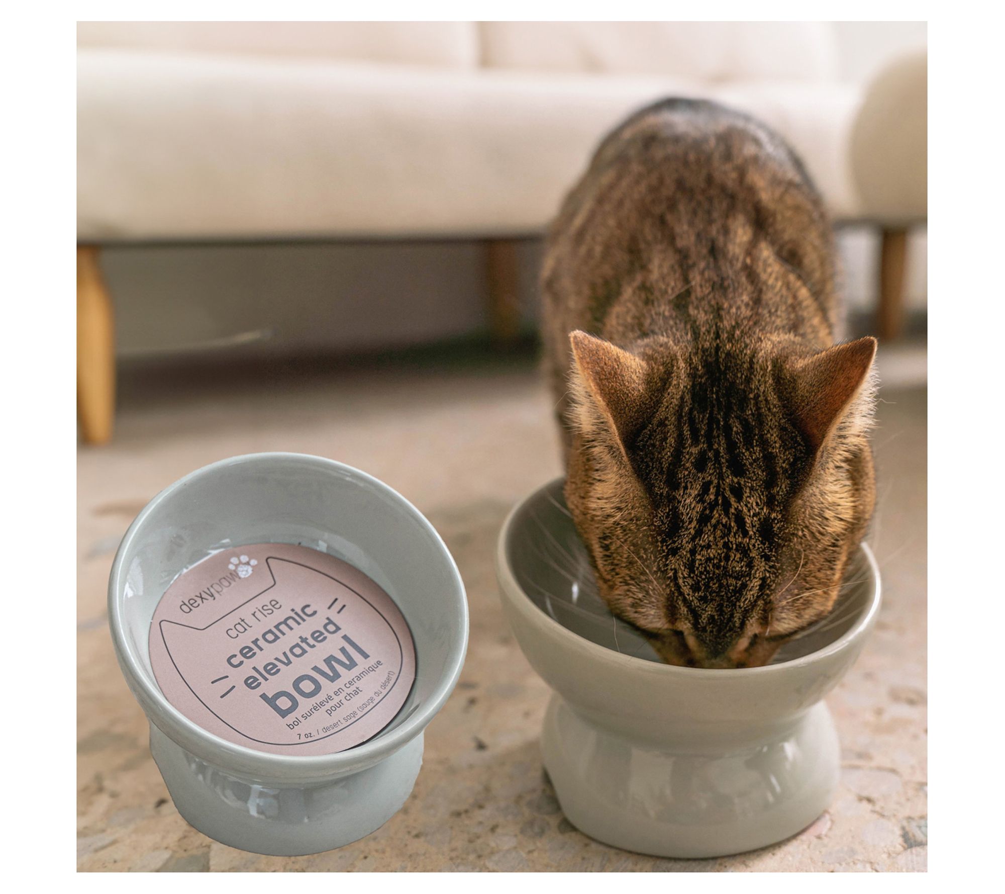 Make mealtime more enjoyable for your feline friend with the Dexypaws elevated ceramic cat bowl. Its elevated design helps reduce strain on your cat's neck and spine, promoting a comfortable dining experience. From Dexypaws.