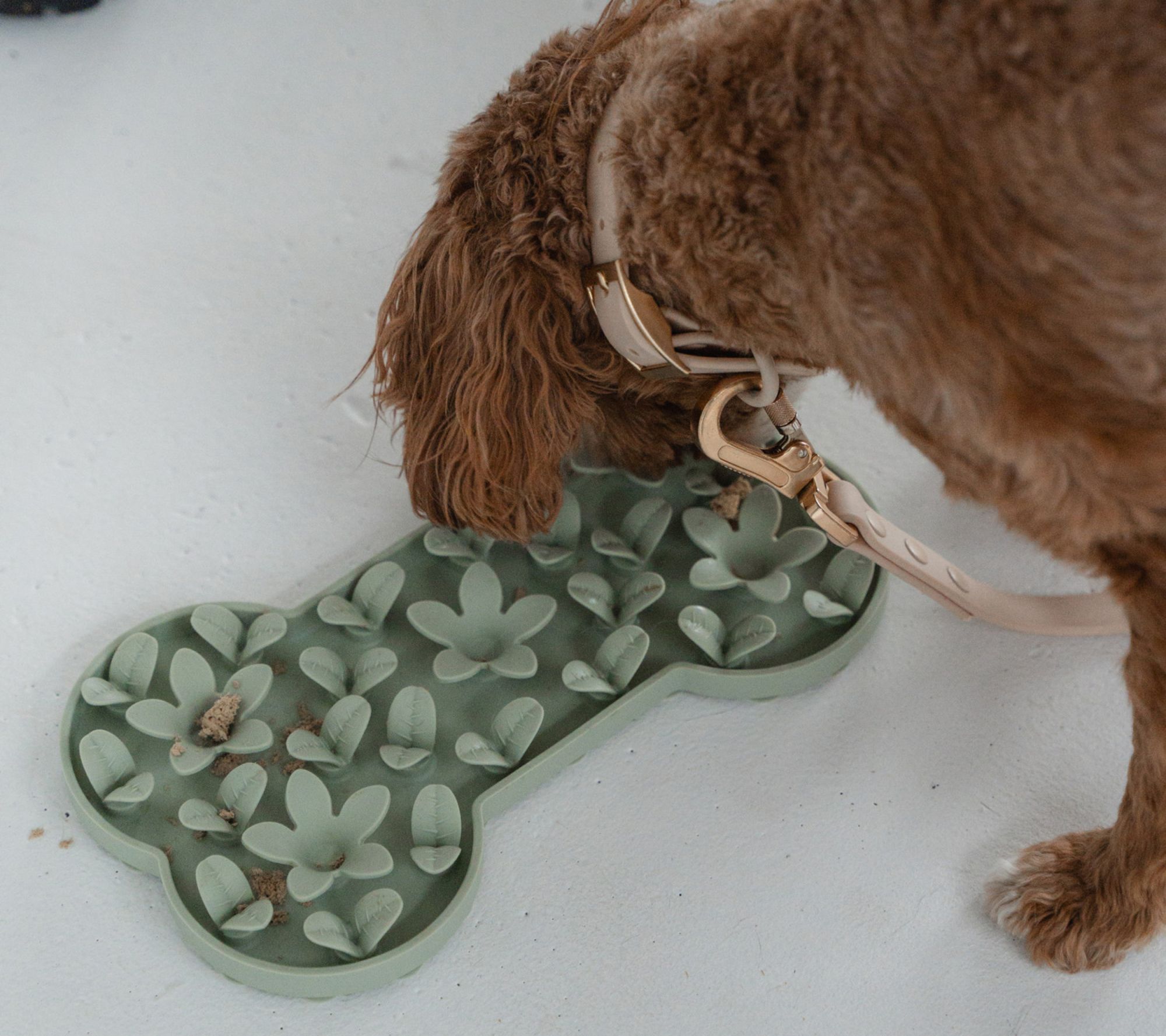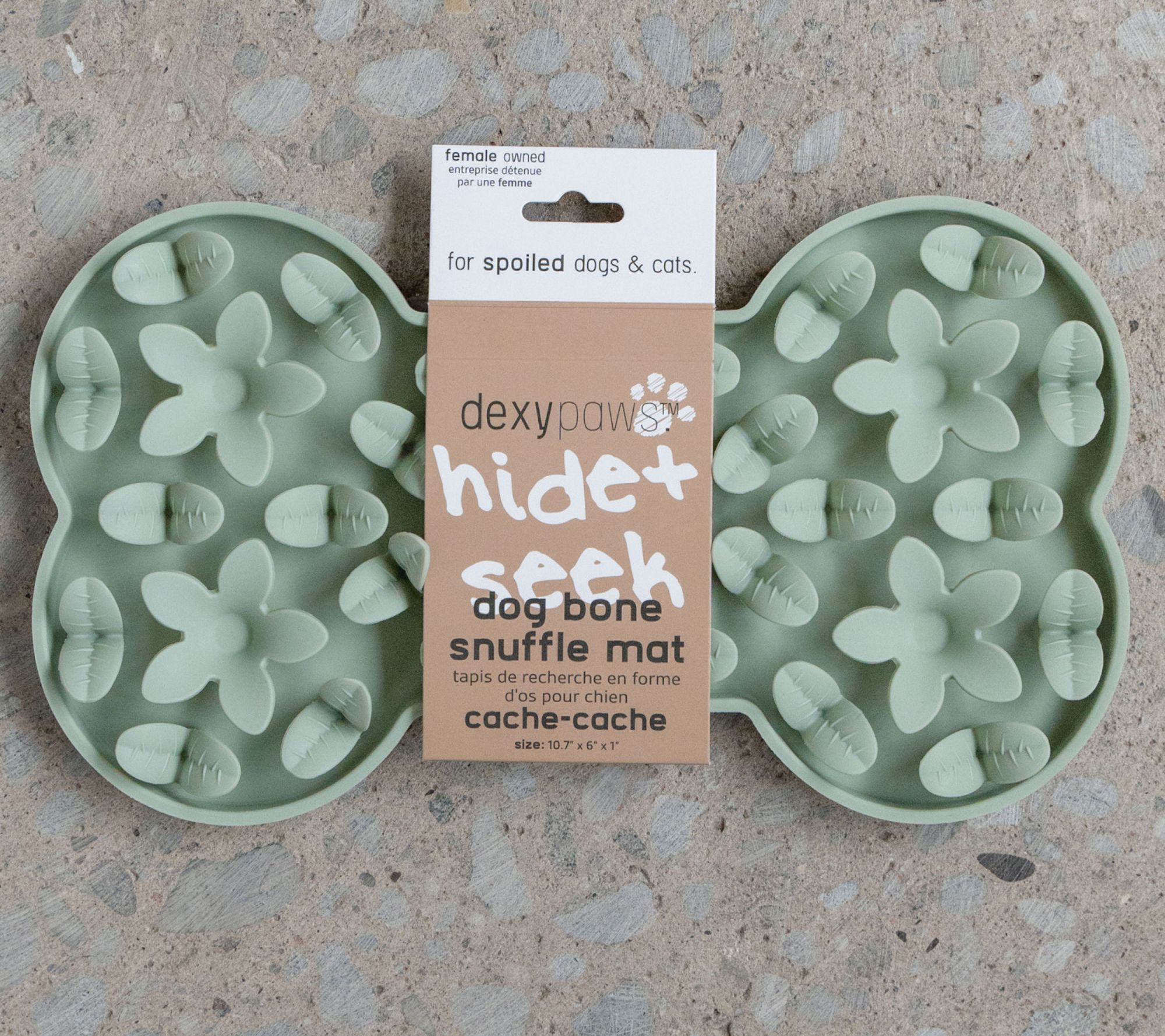 Transform mealtime into a fun and engaging activity with the Dexypaws Enrichment Mat. Spread your dog's favorite wet or raw food onto this textured silicone mat to help slow down their eating and stimulate their mind. Perfect for dogs or cats, it promotes better digestion and reduces stress during feeding. From Dexypaws.