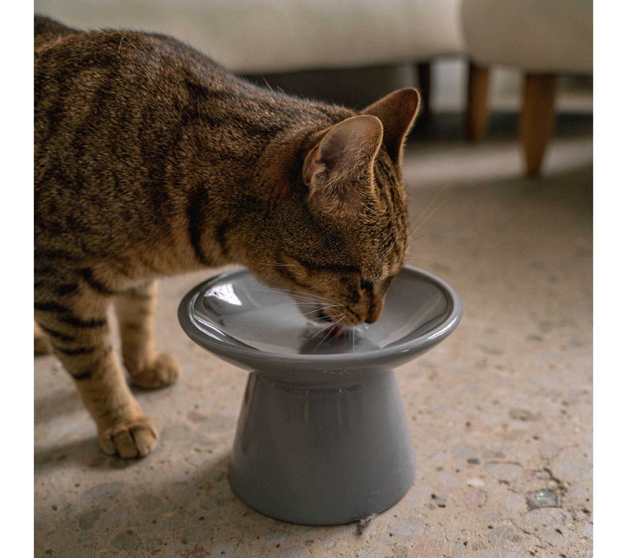 • Flat top surface allows whiskers to remain unobstructed during meals