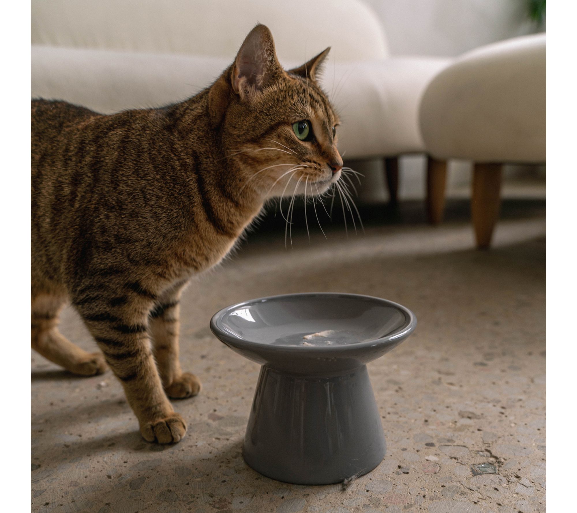Mealtime becomes a moment of comfort for your feline as they enjoy their food from this flat top ceramic bowl, thoughtfully designed to keep whiskers free from irritation. The smooth surface and gentle shape help prevent whisker fatigue, making every bite a pleasure for sensitive cats. From Dexypaws.