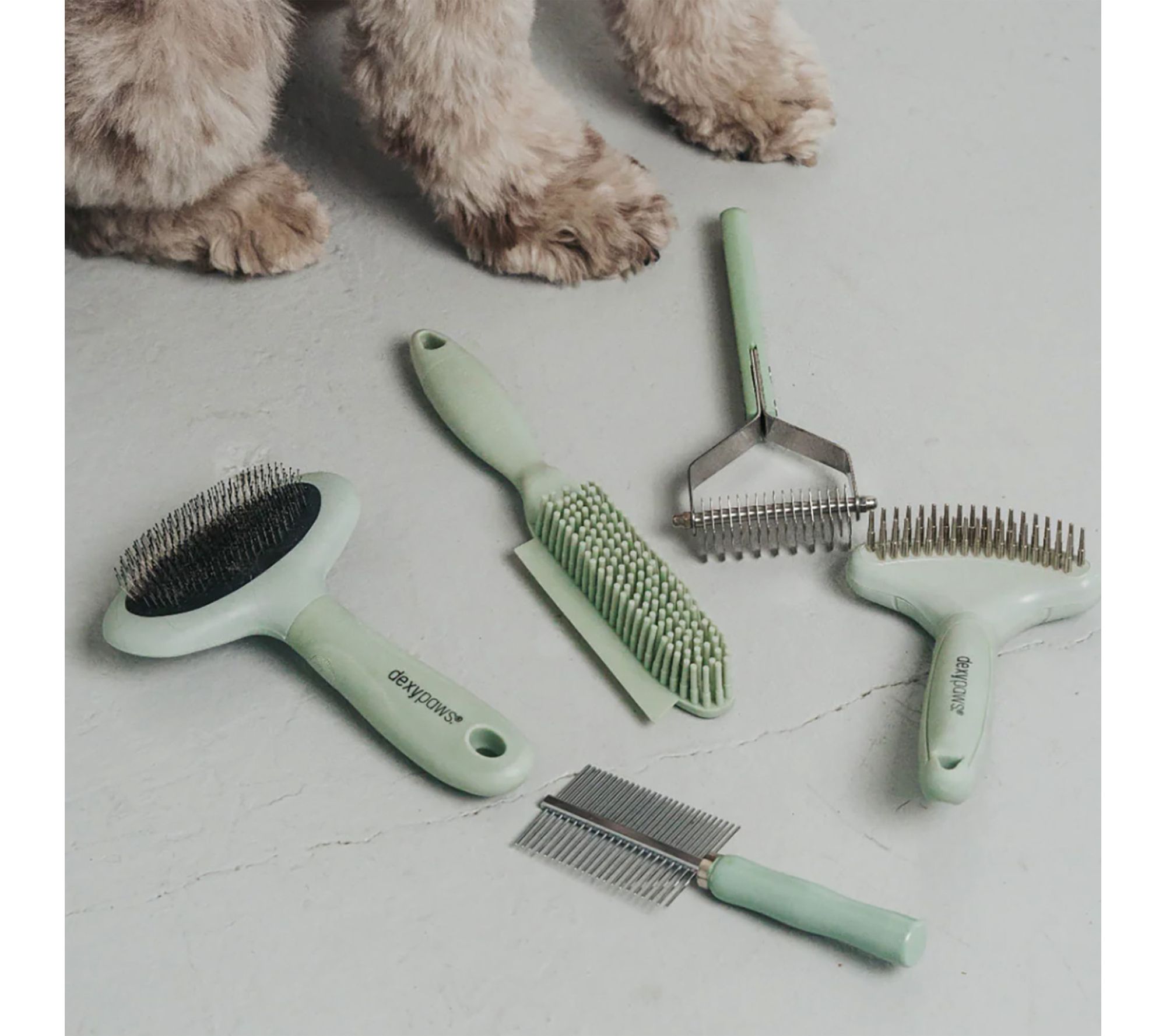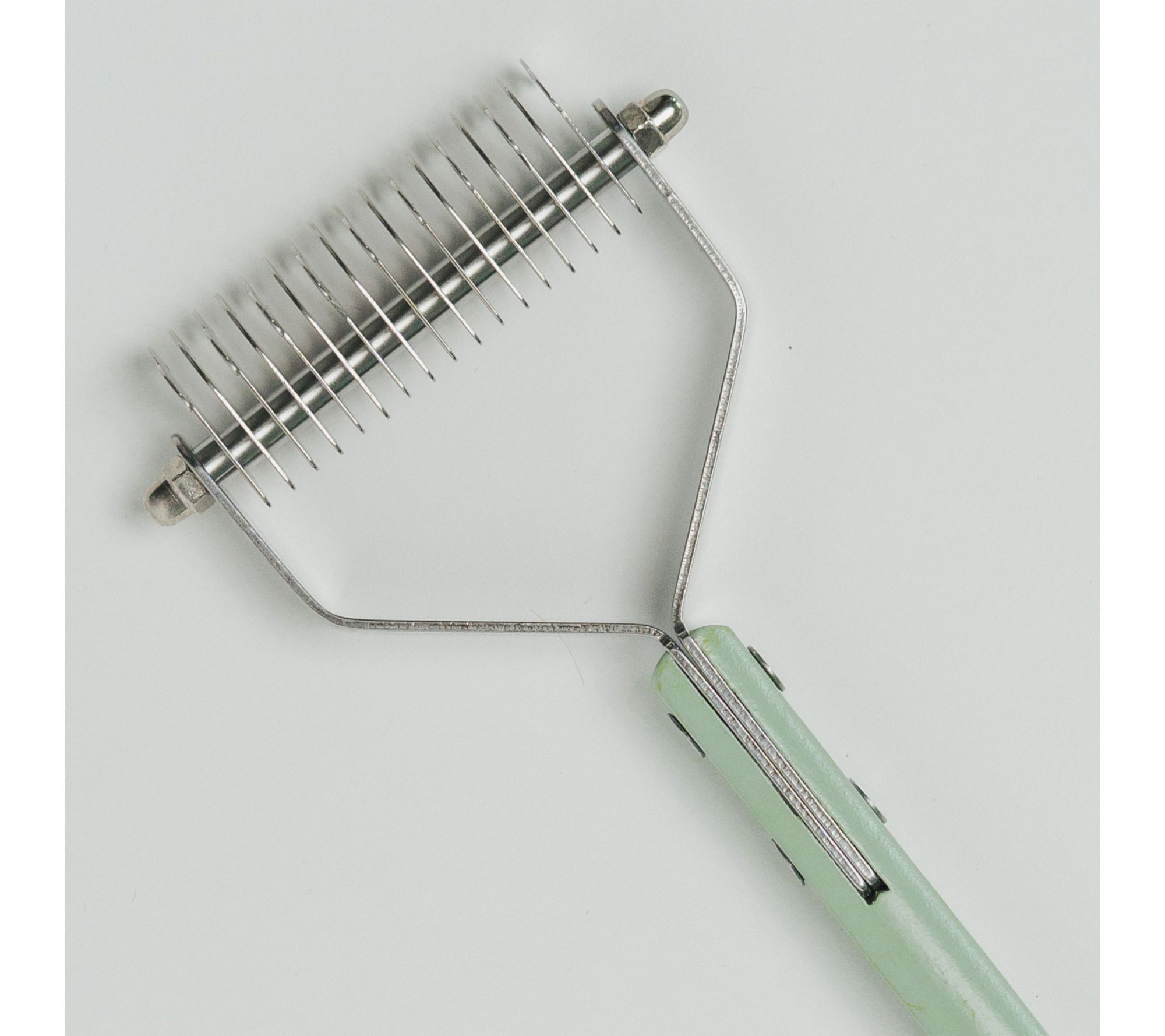 Keep furry friends looking and feeling their best with this double-sided deshedding undercoat brush for dogs. Featuring 14 stainless steel teeth and a rounded design that gently penetrates deep into medium to long fur, this tool helps remove loose hair and reduce mats without pulling or irritating sensitive skin. The contoured wooden handle makes every grooming session effortless and comfortable. From Dexypaws.