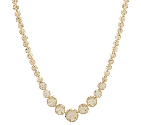 Diamond Cut & Crystal Quartz Graduated Necklace 14K Gold