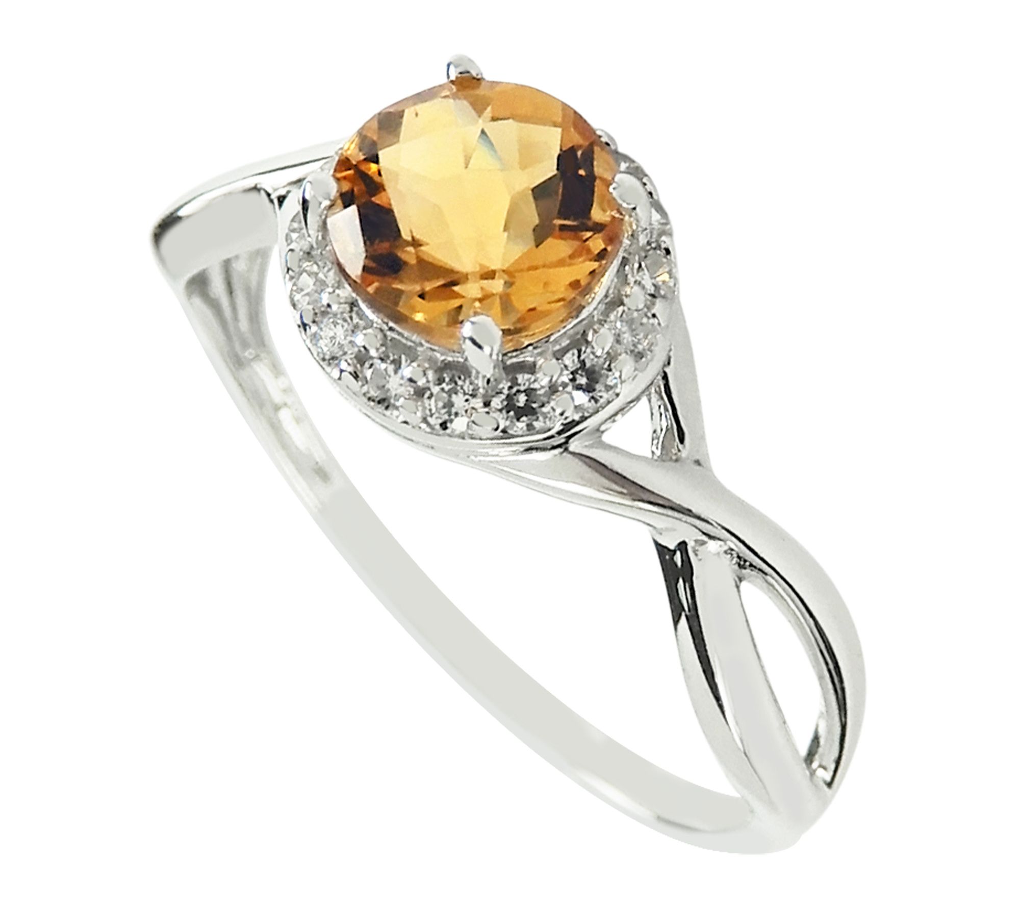 Add a touch of sunny warmth to your ensemble with this radiant halo ring. A round-cut citrine gleams at the center, encircled by sparkling Diamonique simulated diamonds and set in luminous sterling silver -- ideal for special occasions or everyday brilliance.