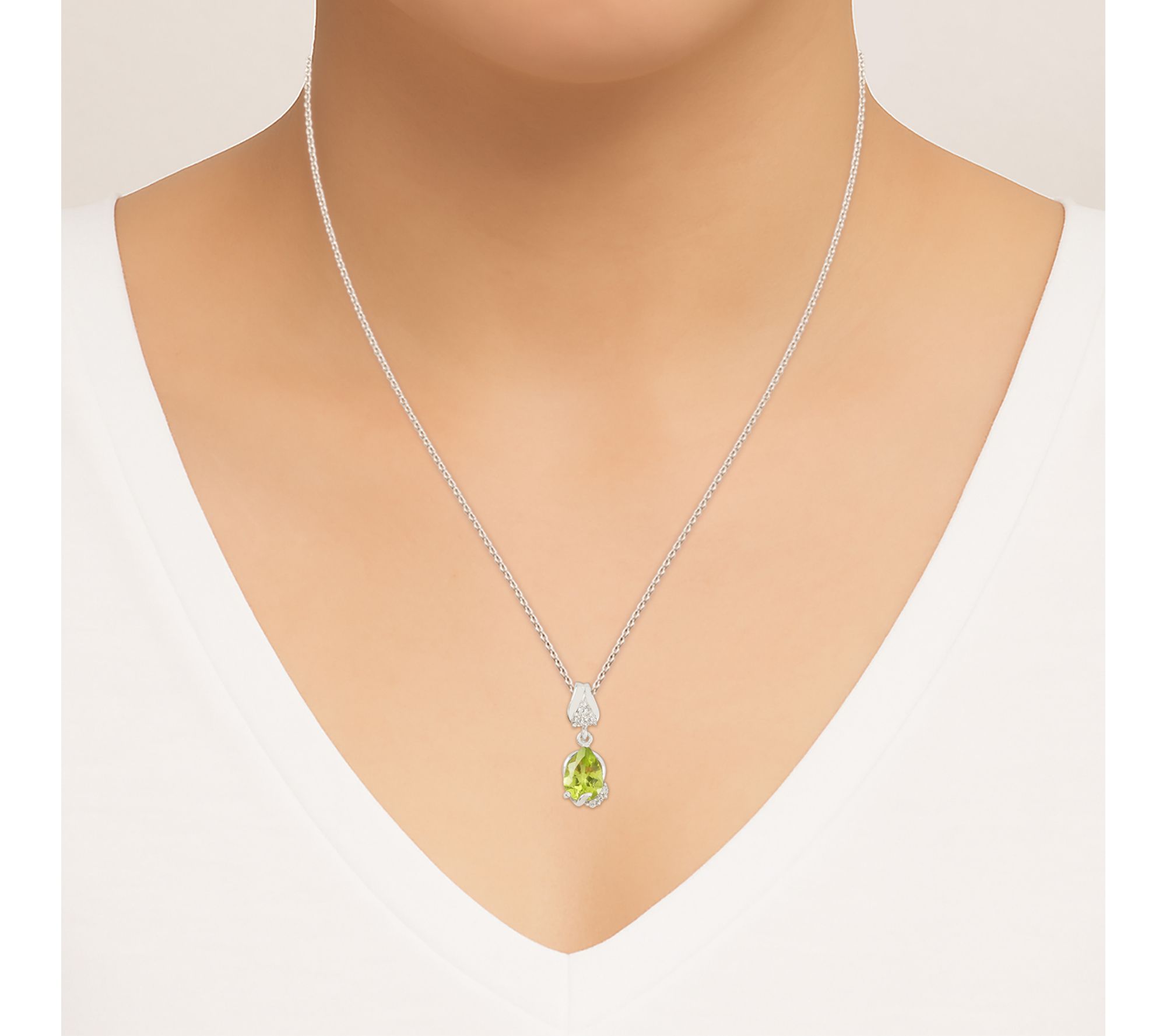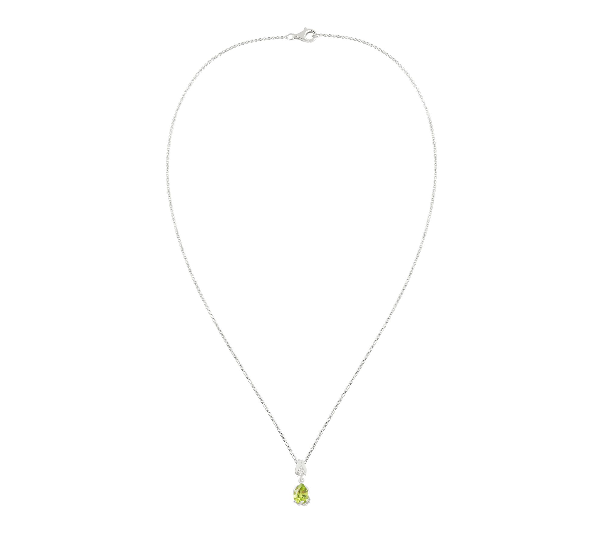 Sparkling with the lively green of peridot and radiant Diamonique simulated diamonds, this sterling silver necklace brings fresh elegance to any outing, from brunch with friends to a night on the town. The polished finish ensures every movement catches the light, with figural detailing that adds a charming touch to your neckline. Shine confidently with this jewelry accent.