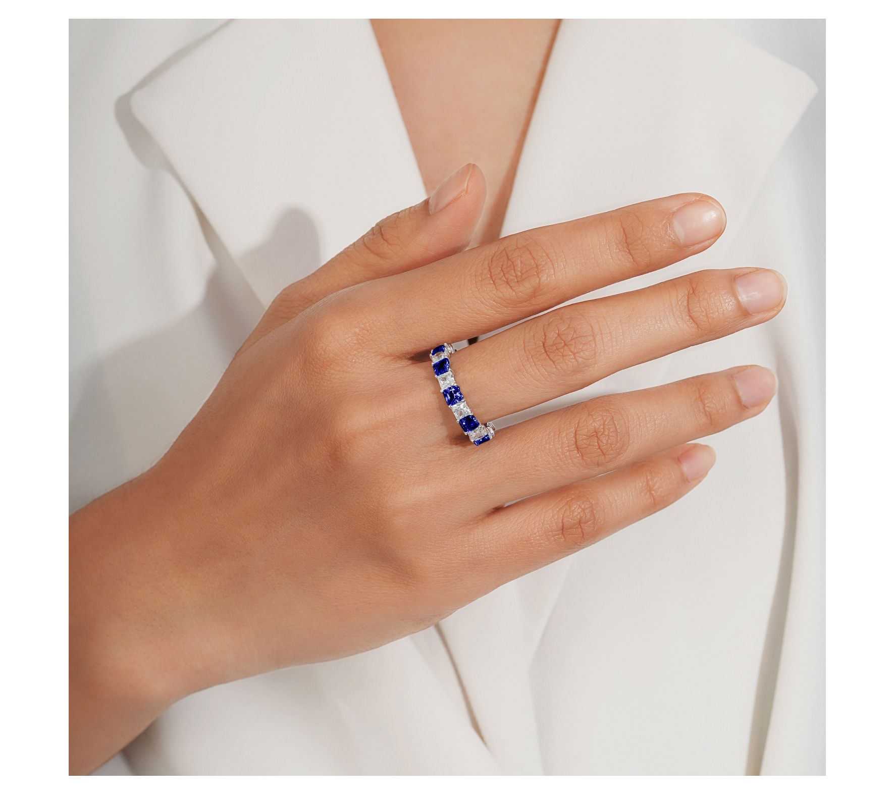 Sparkle for an eternity with this brilliant band ring. Dazzling princess-cut cubic zirconia Diamonique(R) simulated diamonds and simulated sapphires are prong-set throughout. Wear it alone or stacked with any of your other favorite rings.