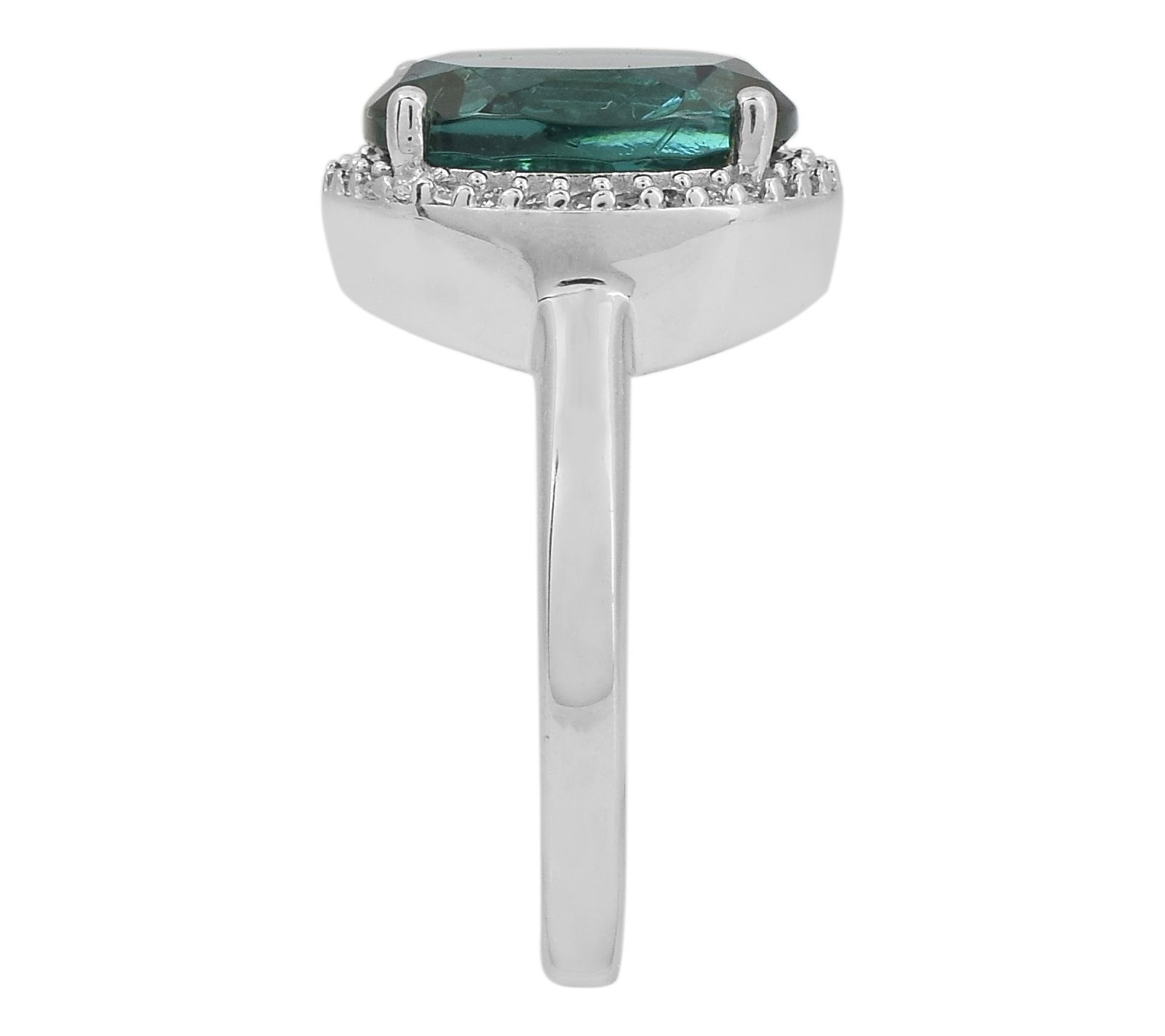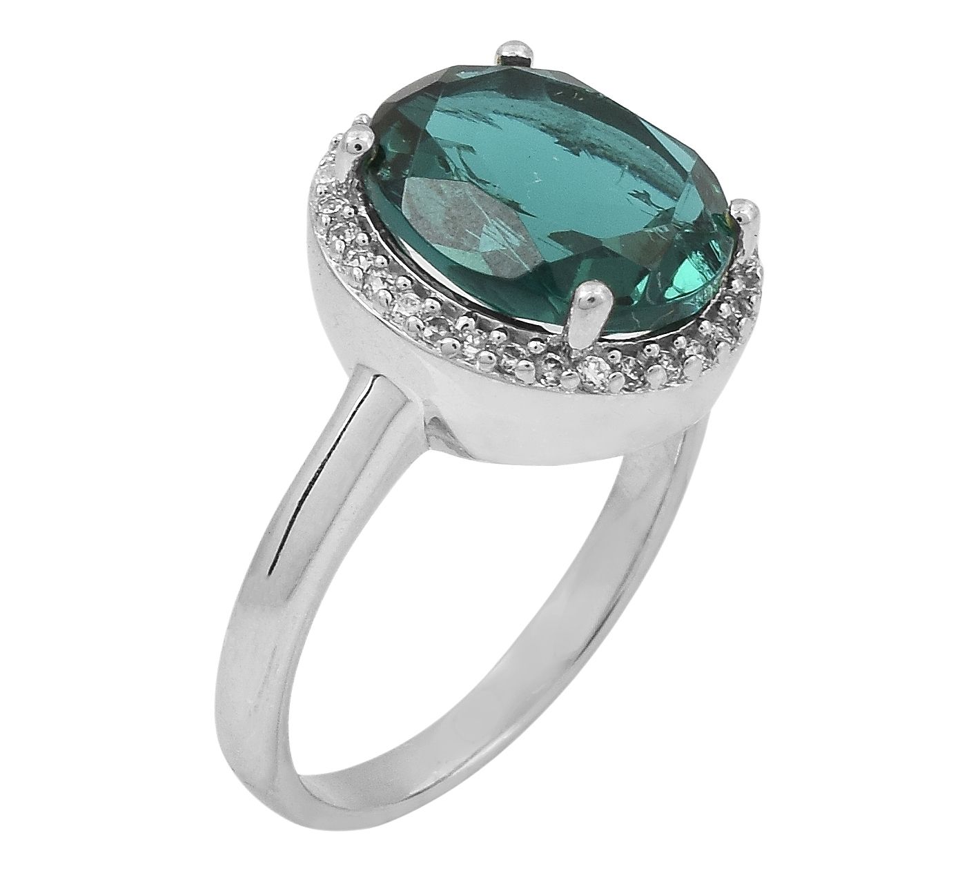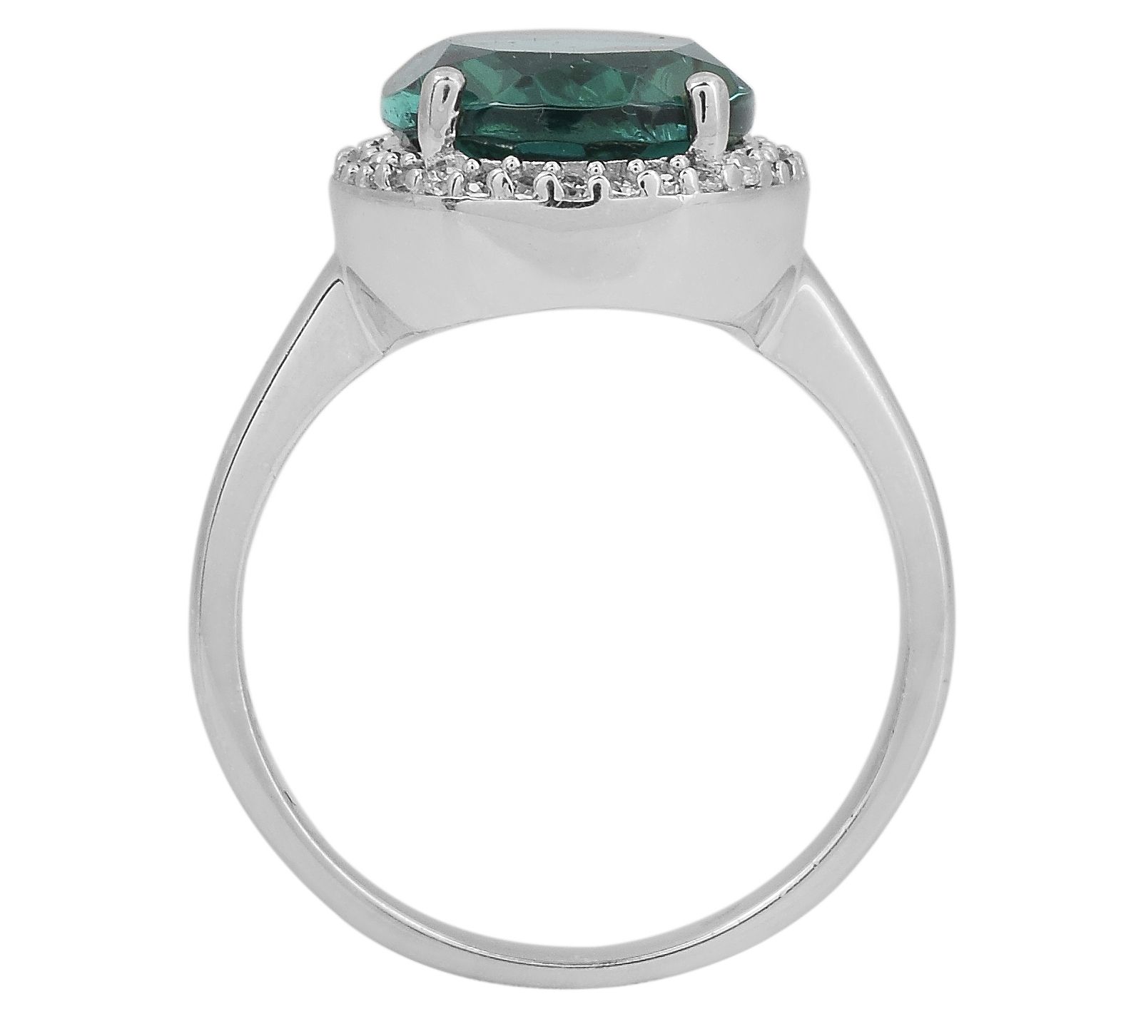 Add a pop of bold color and distinctive dazzle to your finger with this stunning halo ring. The brilliant sparkle of Diamonique simulated diamonds complements the vibrant blue-green simulated tourmaline, creating a dazzling combination that's sure to impress. Perfect for any occasion, this ring adds a touch of elegance to your everyday style.