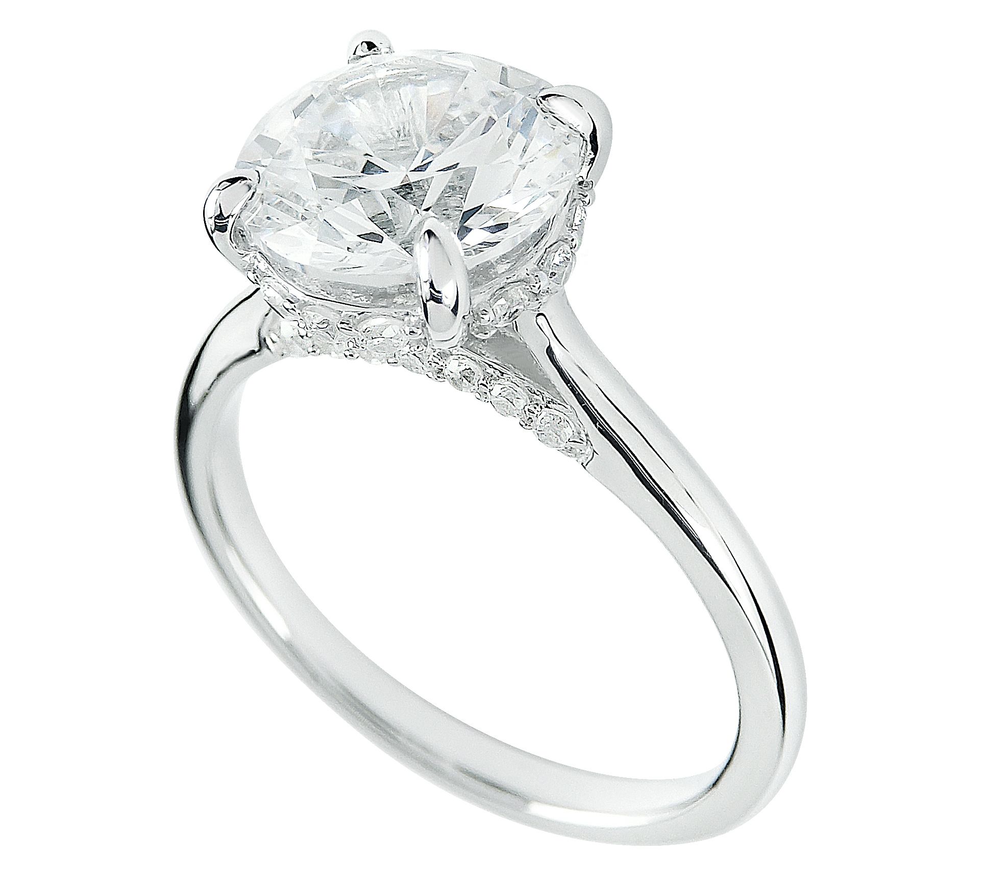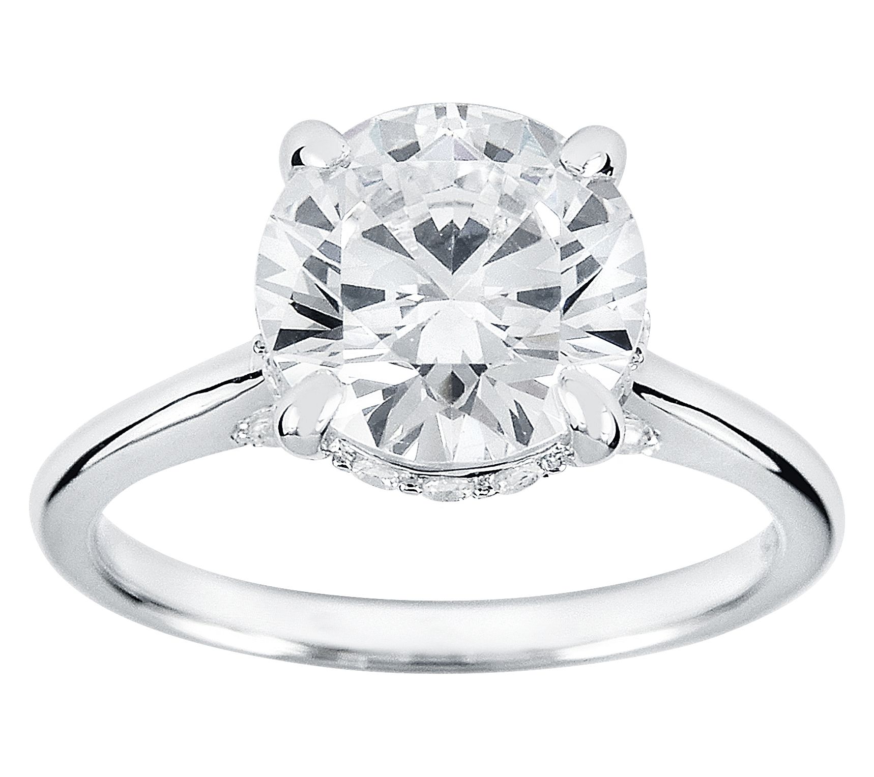 • Prong set, round-cut Diamonique simulated diamond solitaire; polished finish
