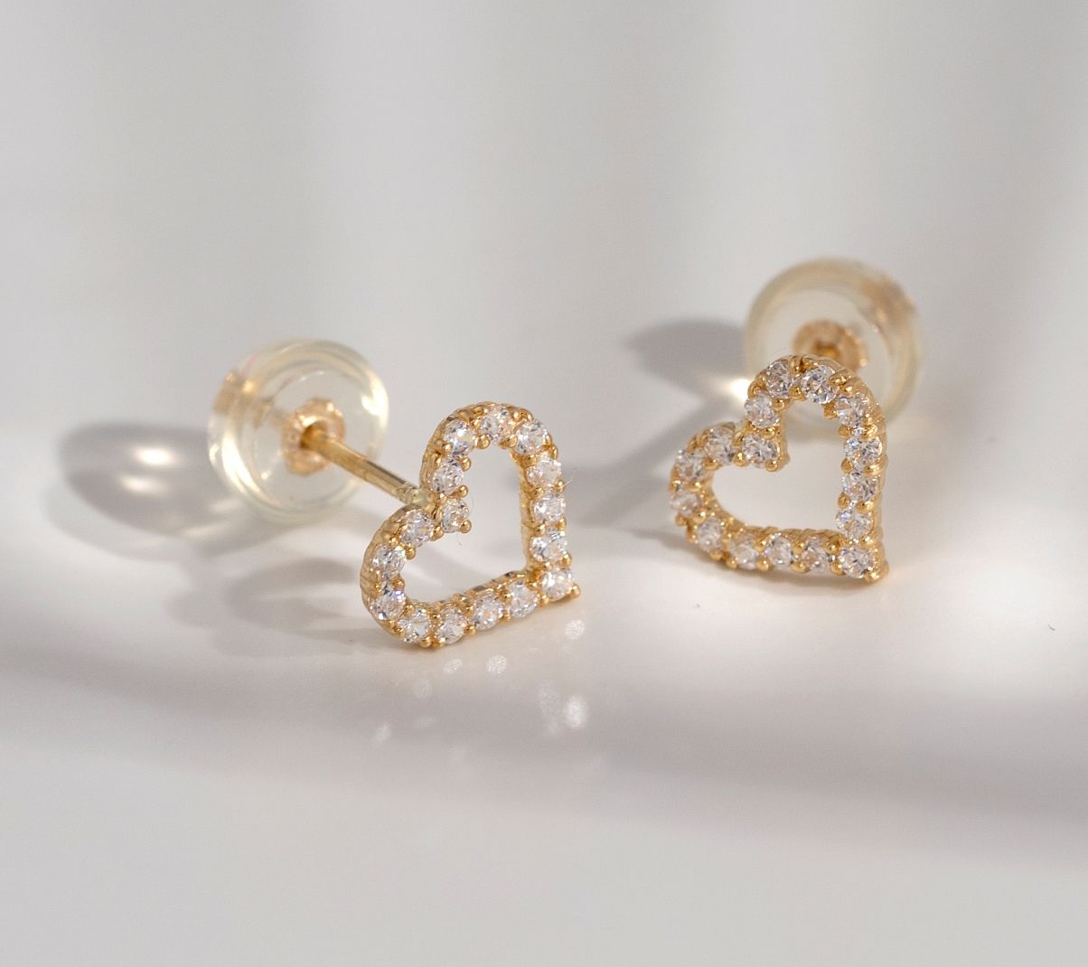 Diamonique 0.50 cttw Open Heart Stud Earrings,14K Gold