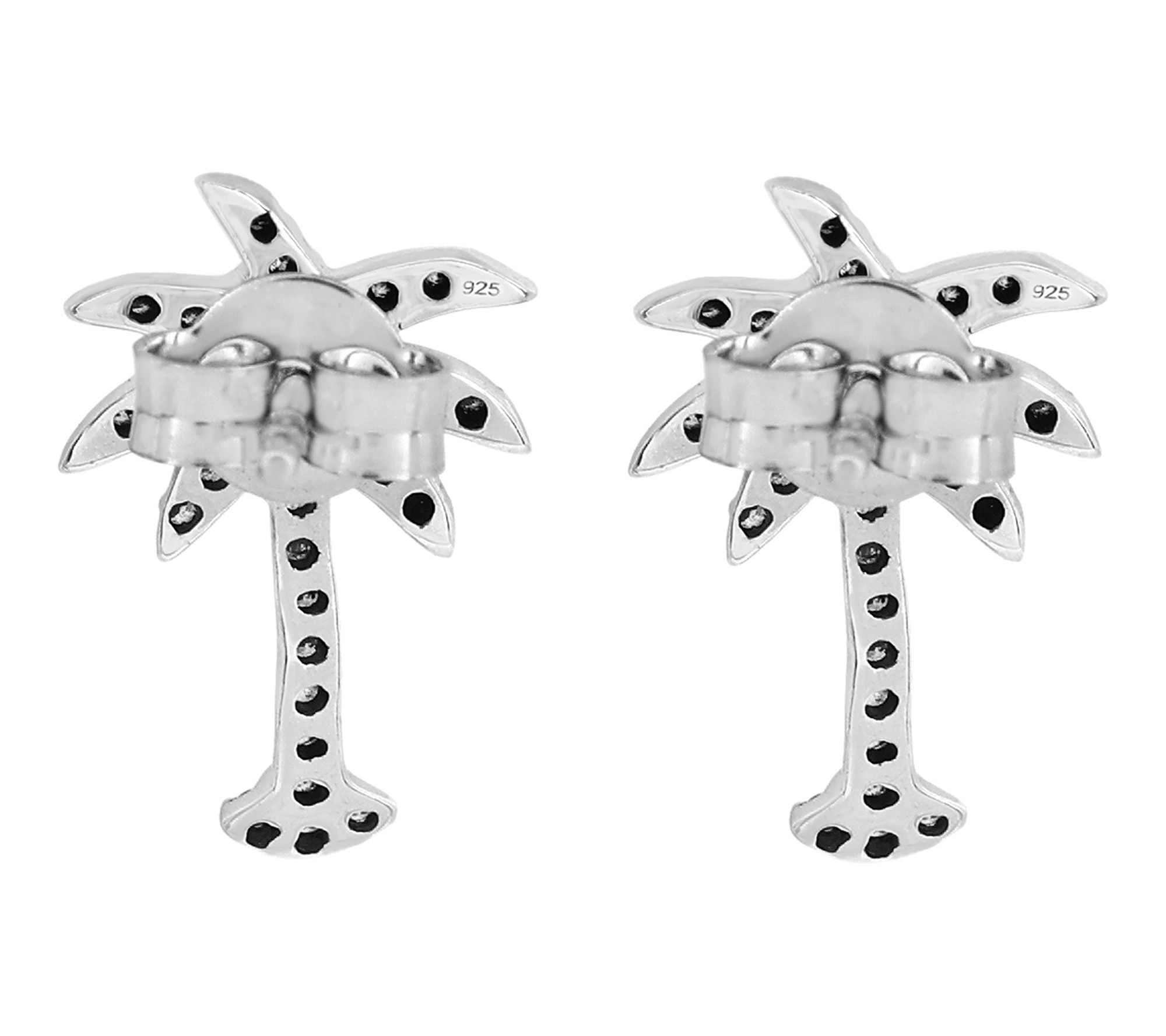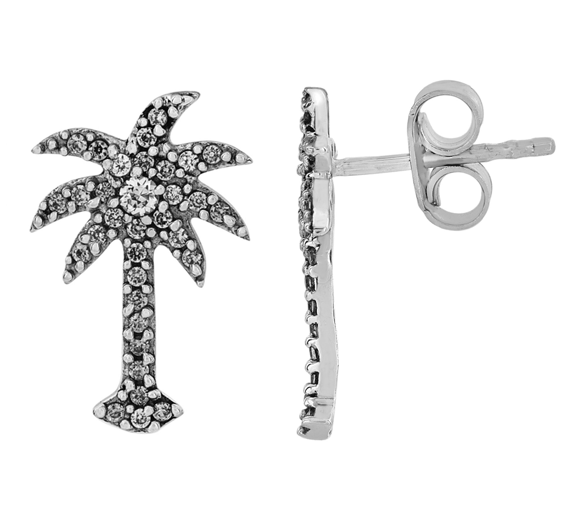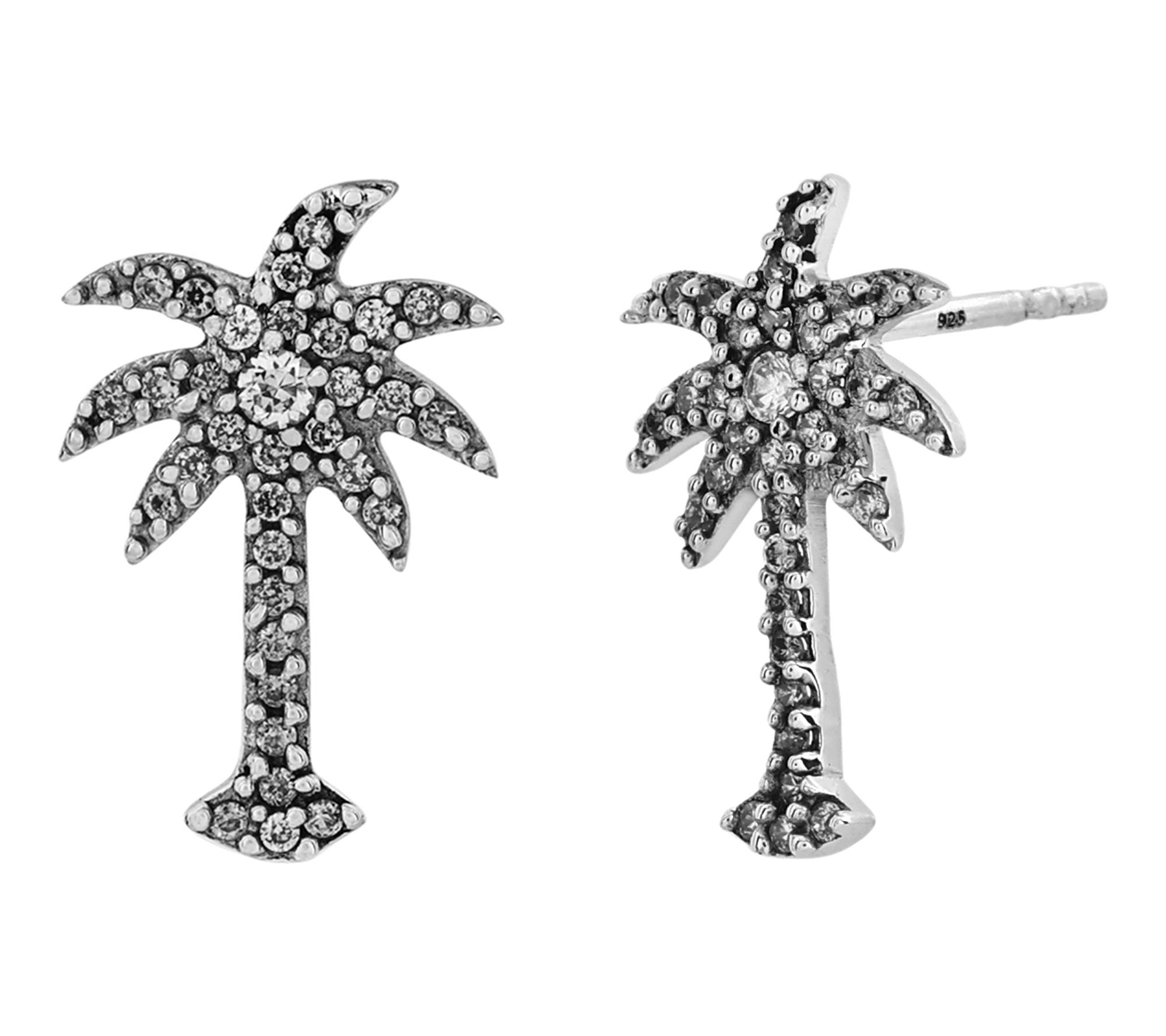Add a shimmering touch of paradise to your look with these palm tree stud earrings, crafted in gleaming sterling silver and finished with platinum plating. Each earring glistens with round-cut Diamonique simulated diamonds, offering eye-catching sparkle whether you're dreaming of tropical getaways or dressing up for a summer soiree.