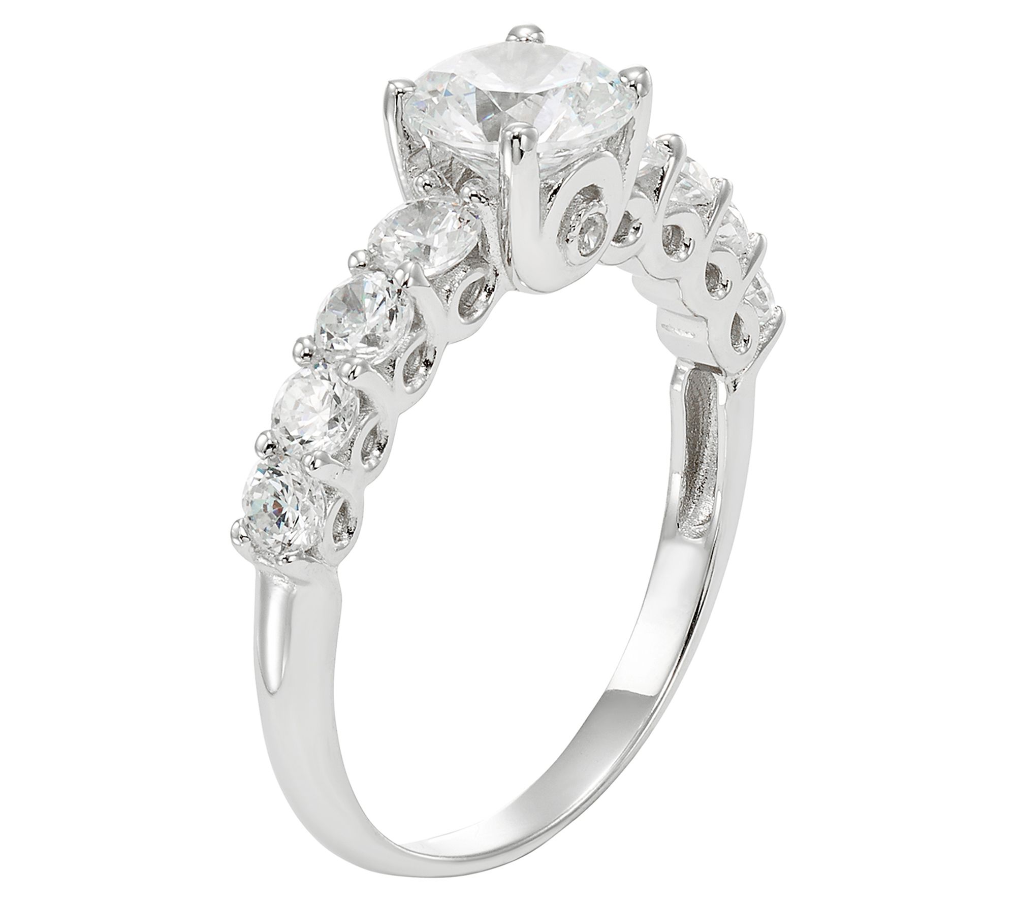 - Prong-set, round Diamonique simulated diamond at center; prong-set, round Diamonique simulated diamonds on shank