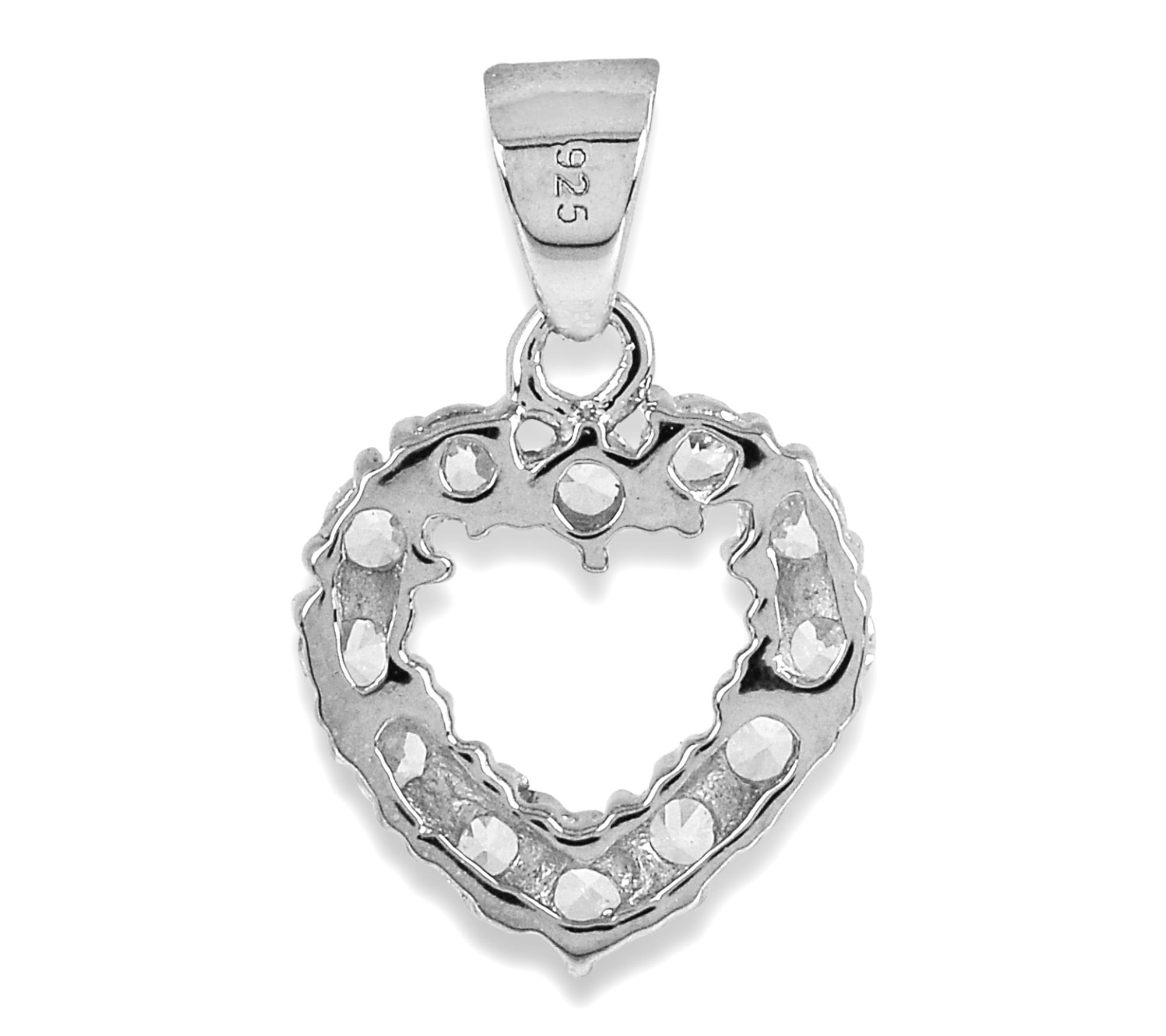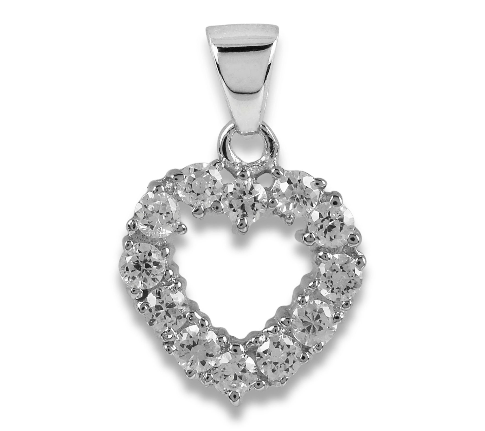• Heart-shaped pendant; round, prong-set Diamonique simulated diamonds; slide style
