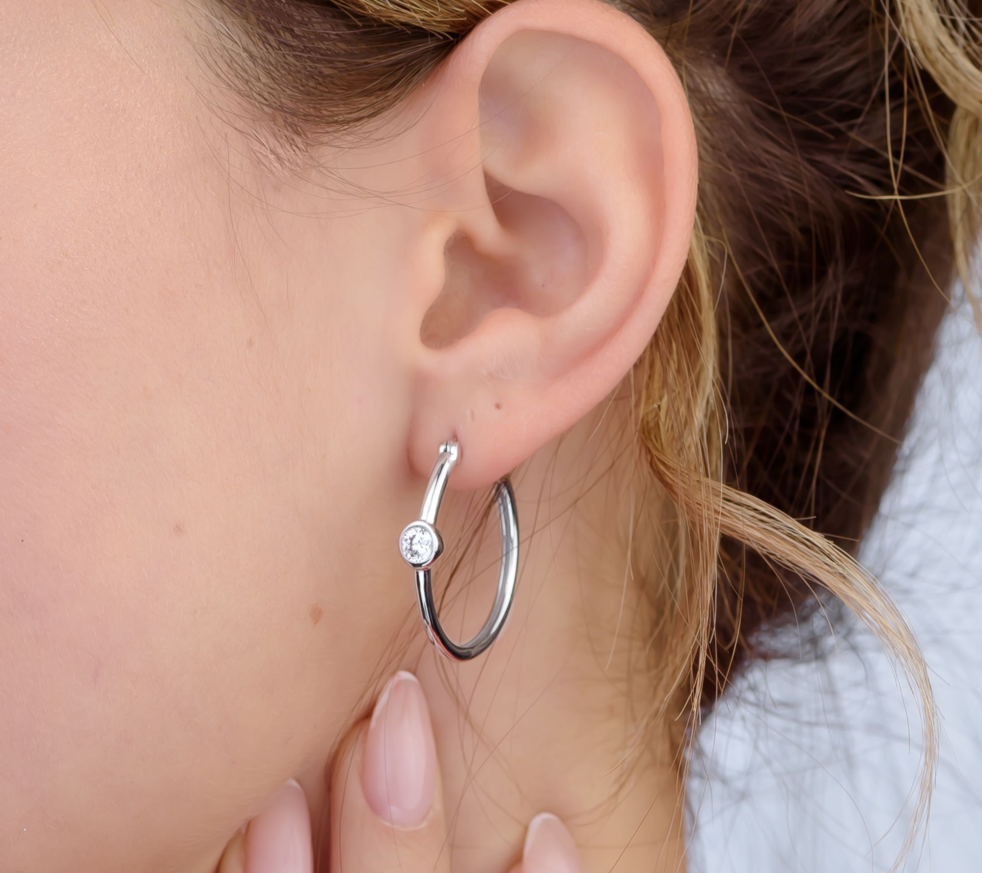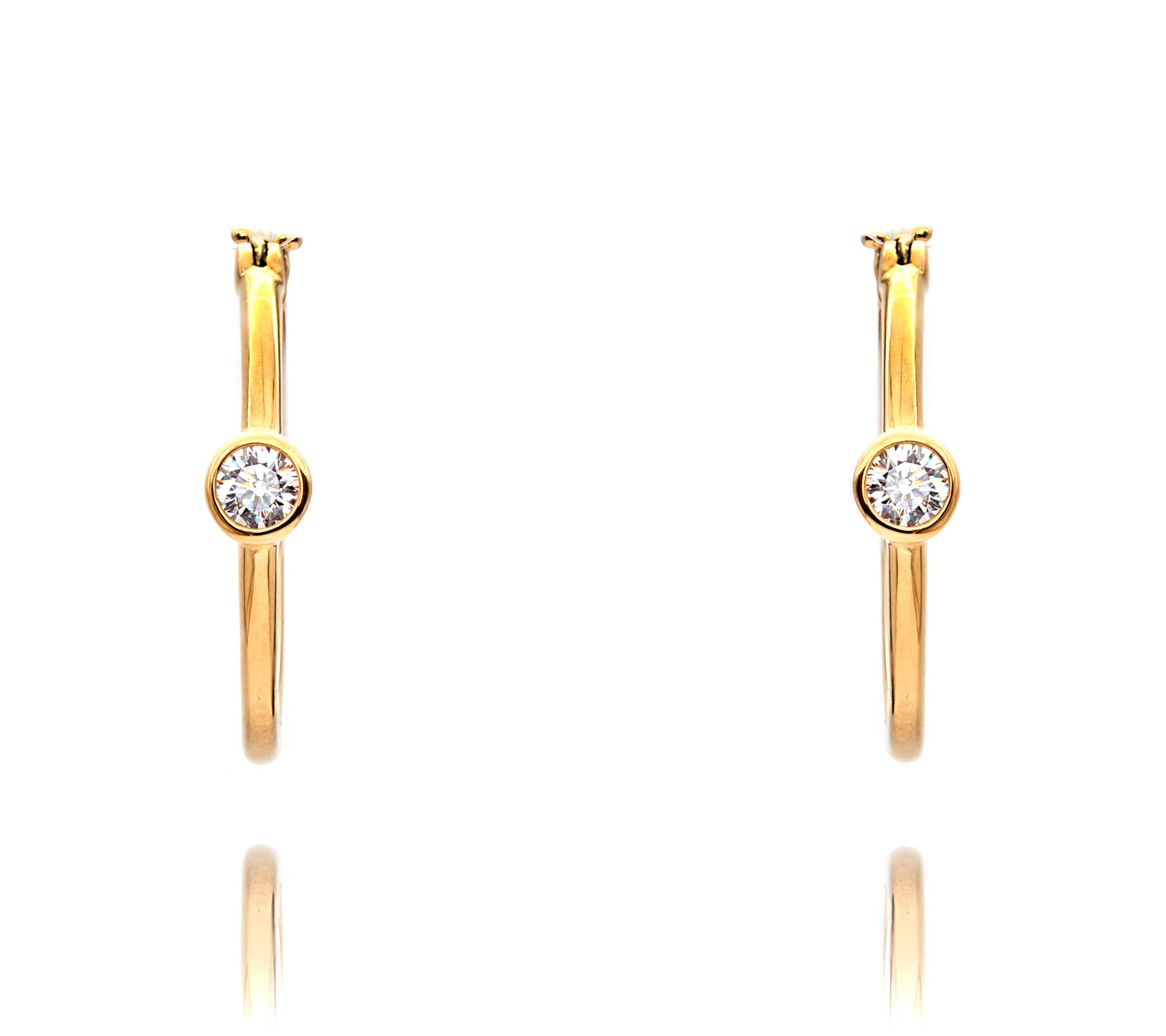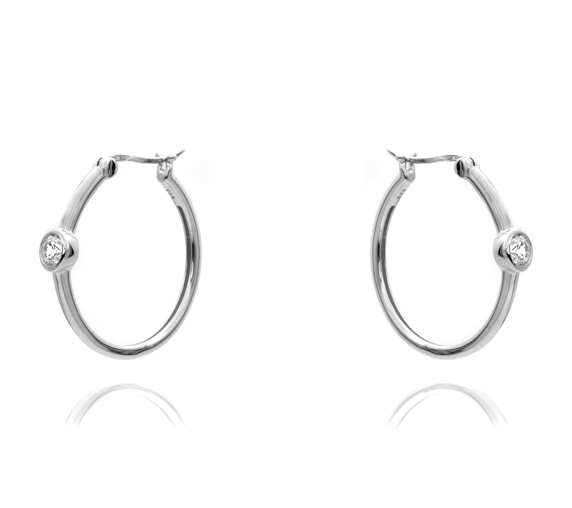 • Round hoop earrings; round bezel-set Diamonique simulated diamonds