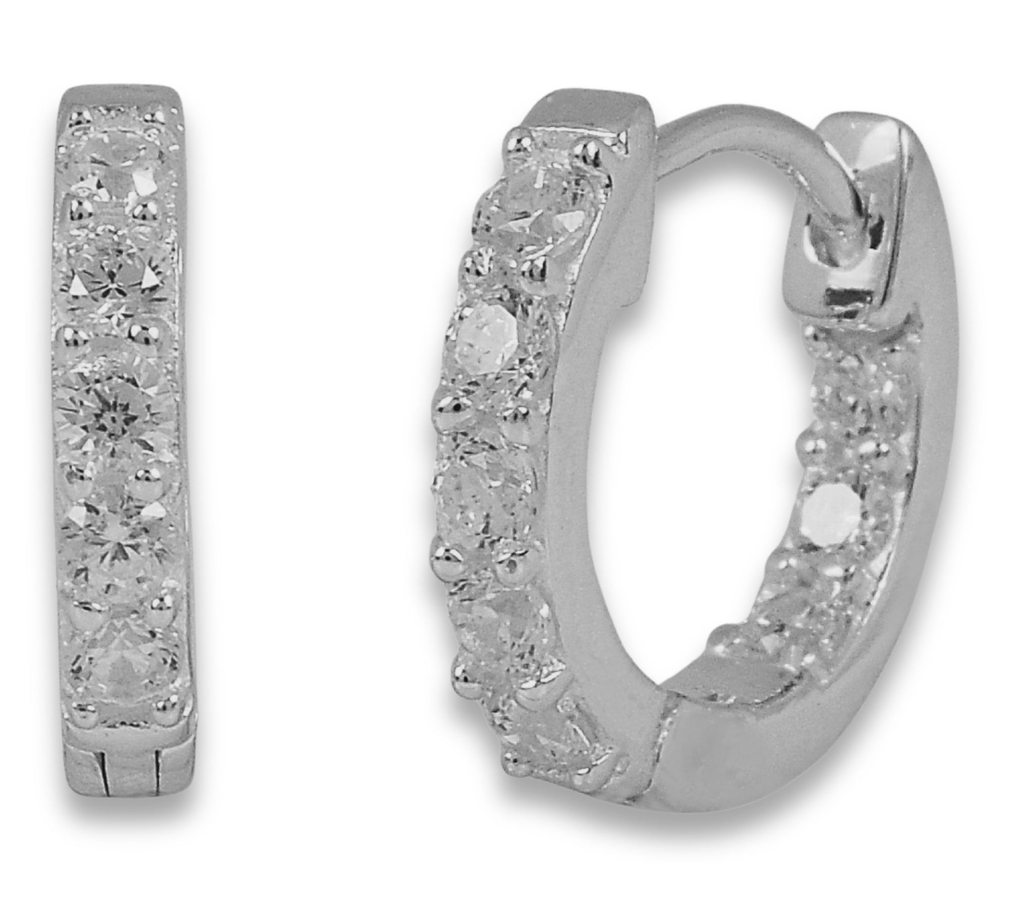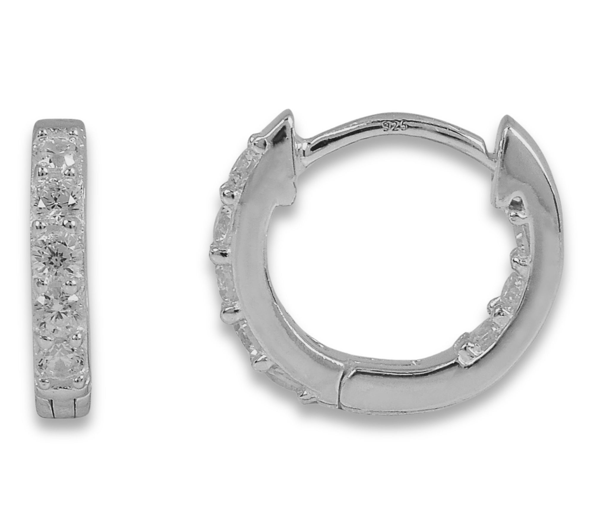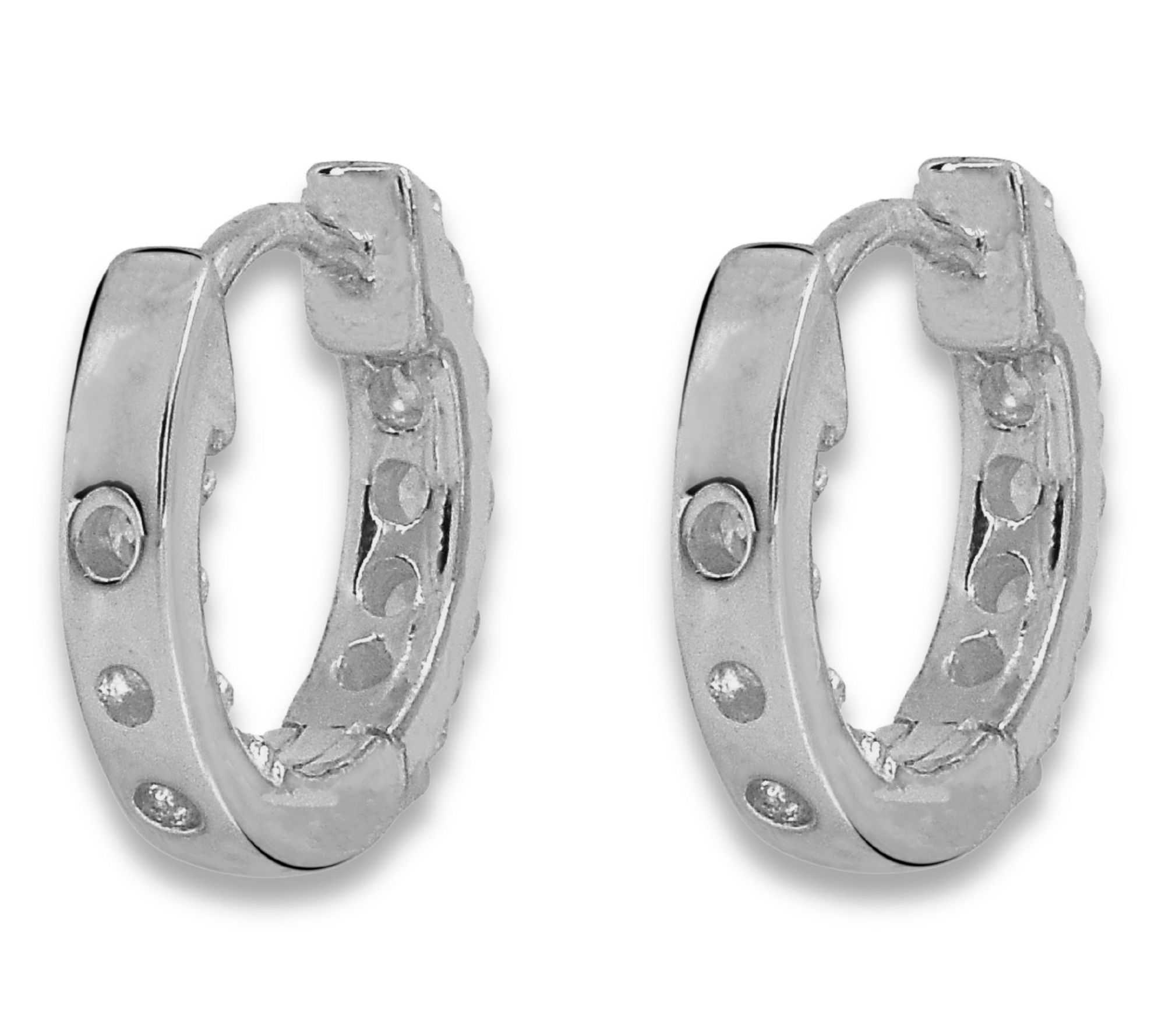 Add a little everyday luxury with these hoop earrings -- sparkle and shine radiate from each round Diamonique simulated diamond, prong-set in high-polished sterling silver for an elegant, versatile look. Slip them on and let the timeless style elevate your workday ensemble or add a dazzling finish to evening plans.
