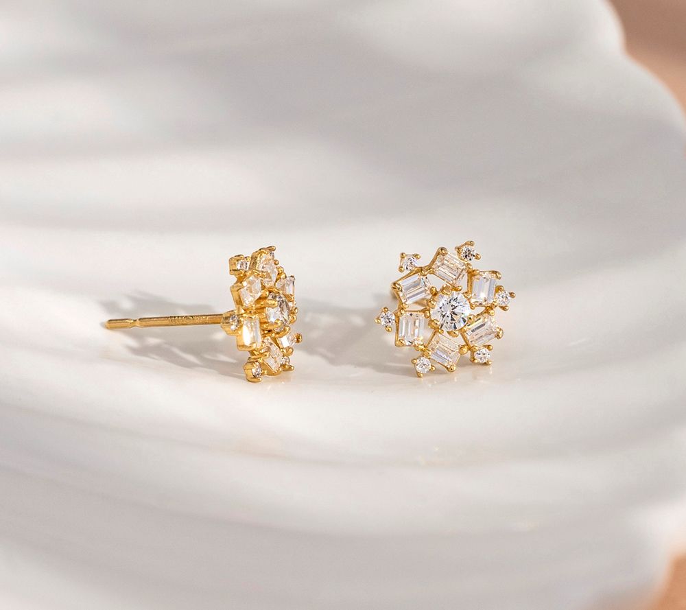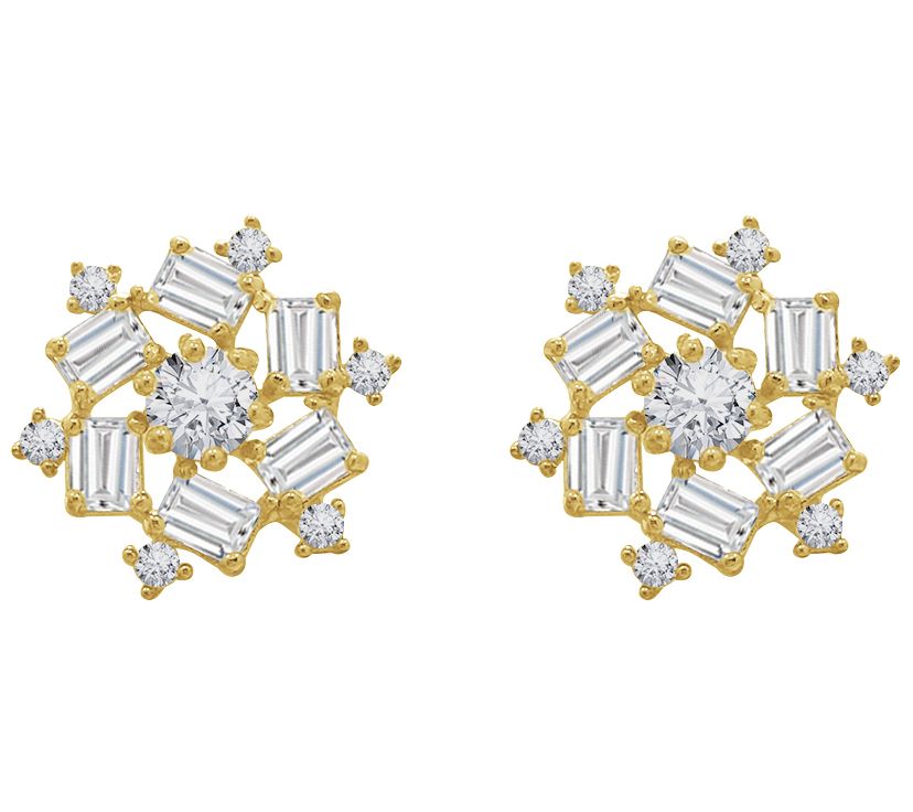 Diamonique 0.95 cttw Baguette Cluster Stud Earrings, 14K Gold