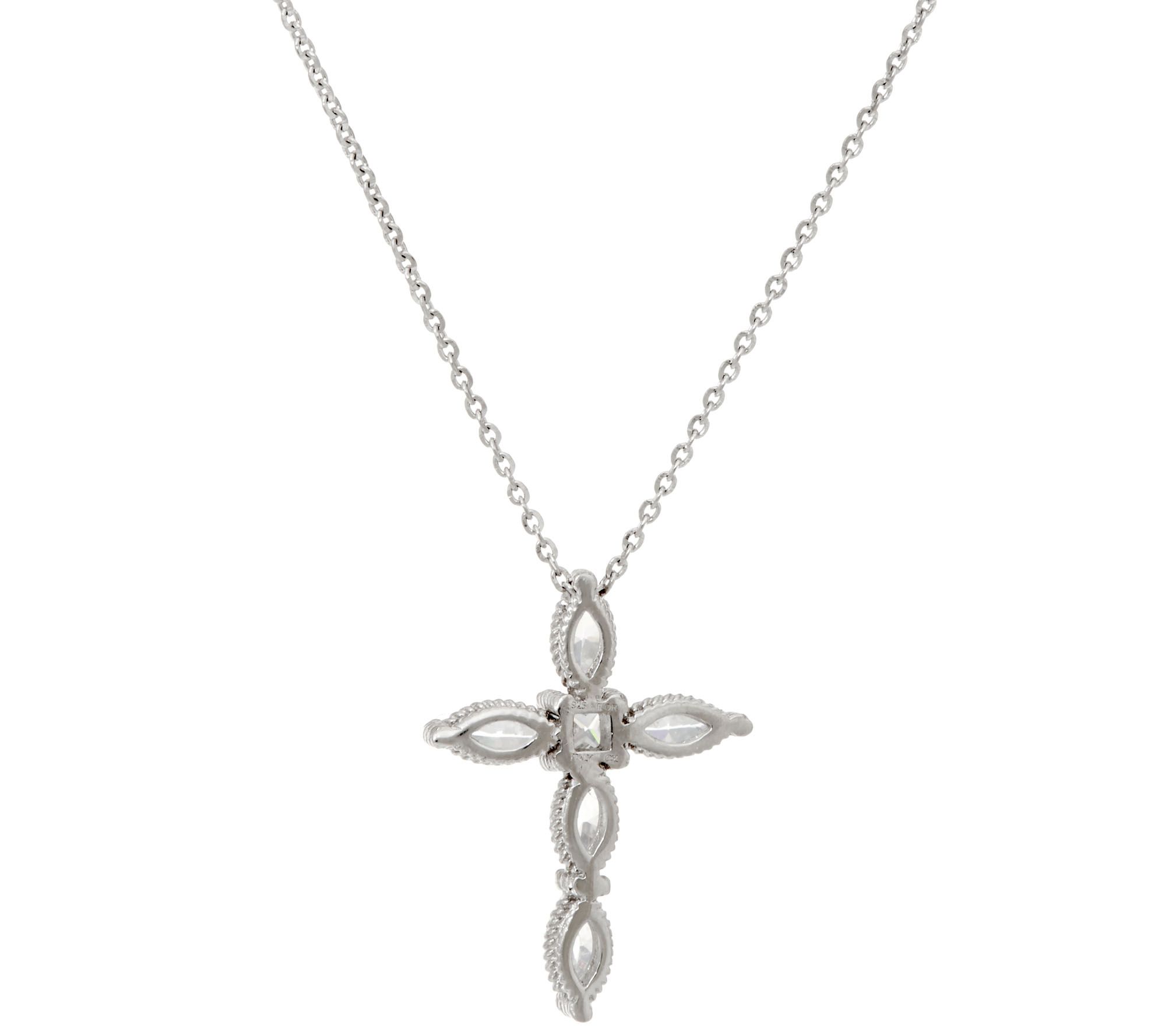 • Cross with prong-set, marquise-shaped Diamonique simulated diamonds and princess-cut Diamonique simulated diamond at center